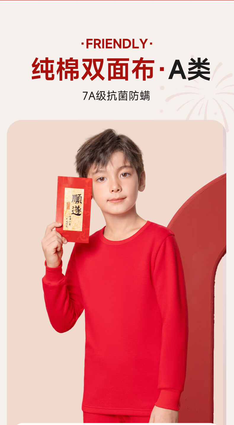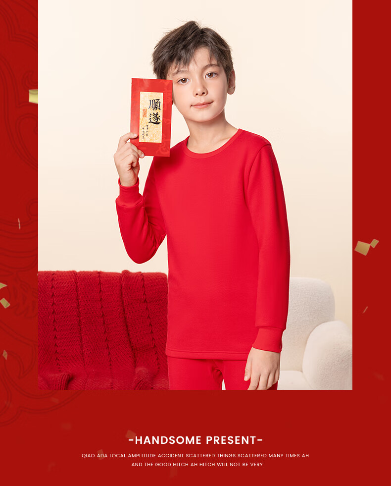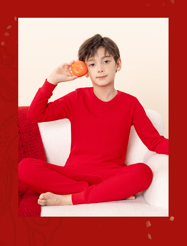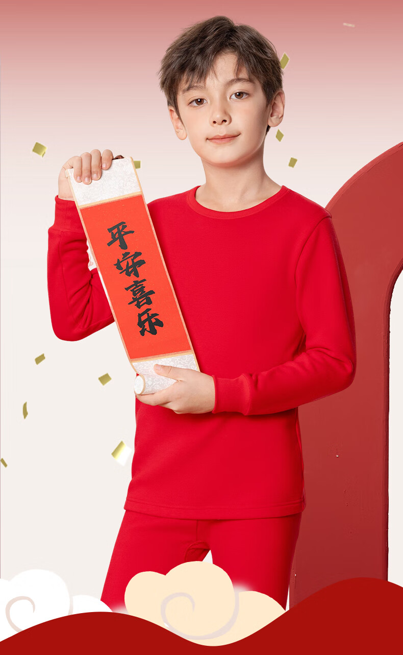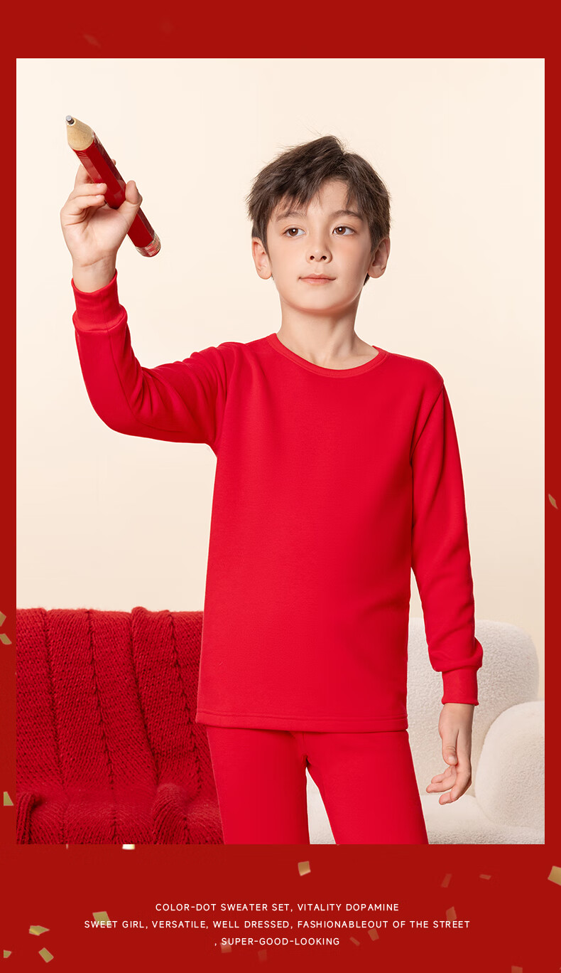 马克华菲儿童秋衣秋裤套装男童保暖内衣秋冬季睡衣纯棉本命年新年衣服红色 红 M剪纸小马 110