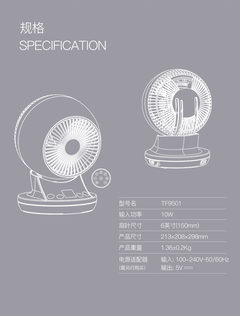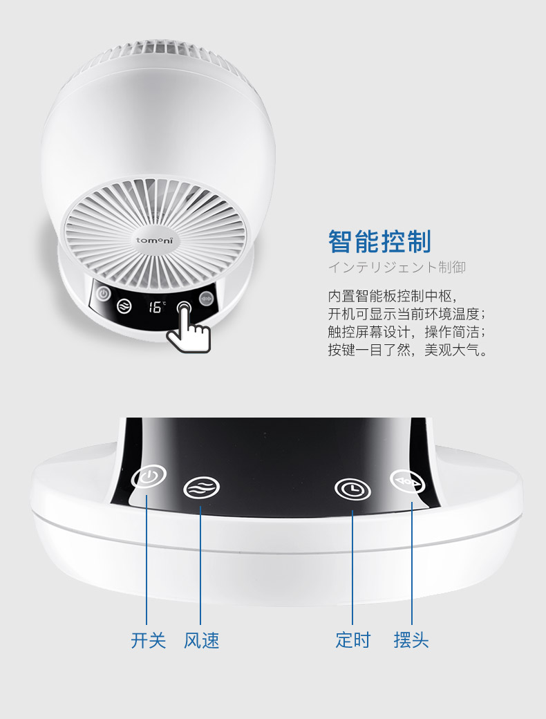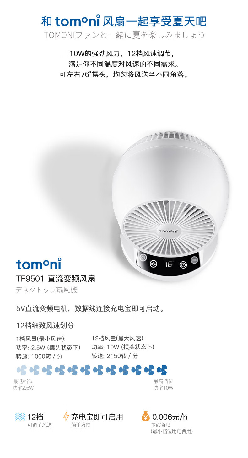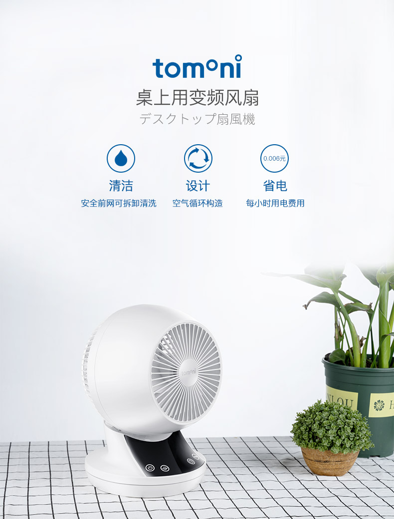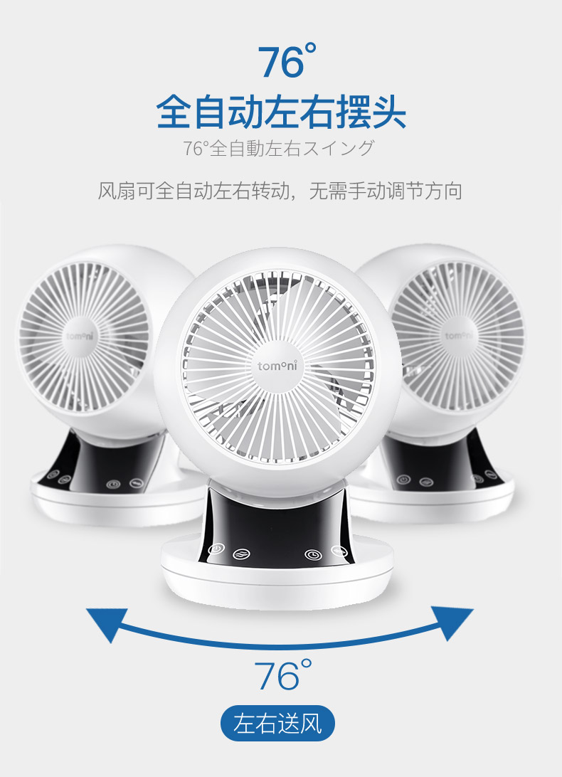 TOMONI日本桌面电风扇台式小风扇 白色简洁 低噪音USB电源供电 自动摇头可遥控风扇循环扇办公室宿舍风扇 日本Tomoni桌面循环扇