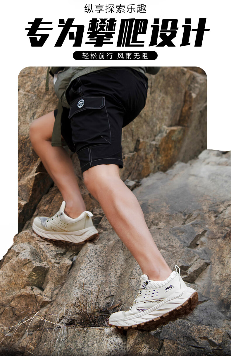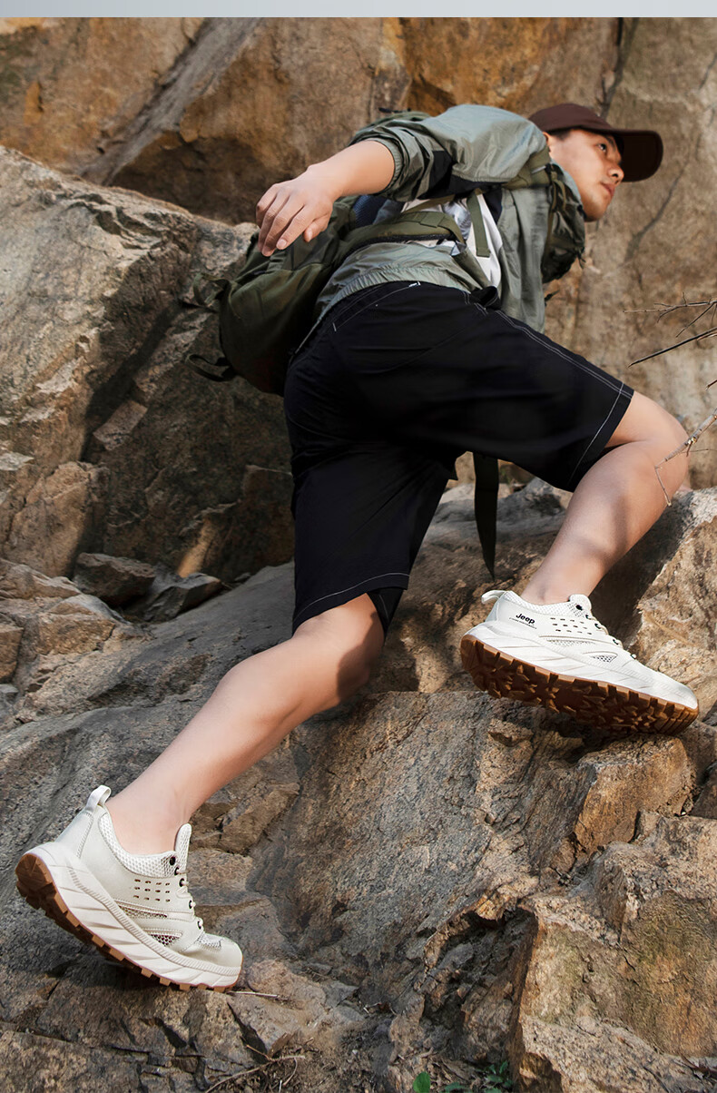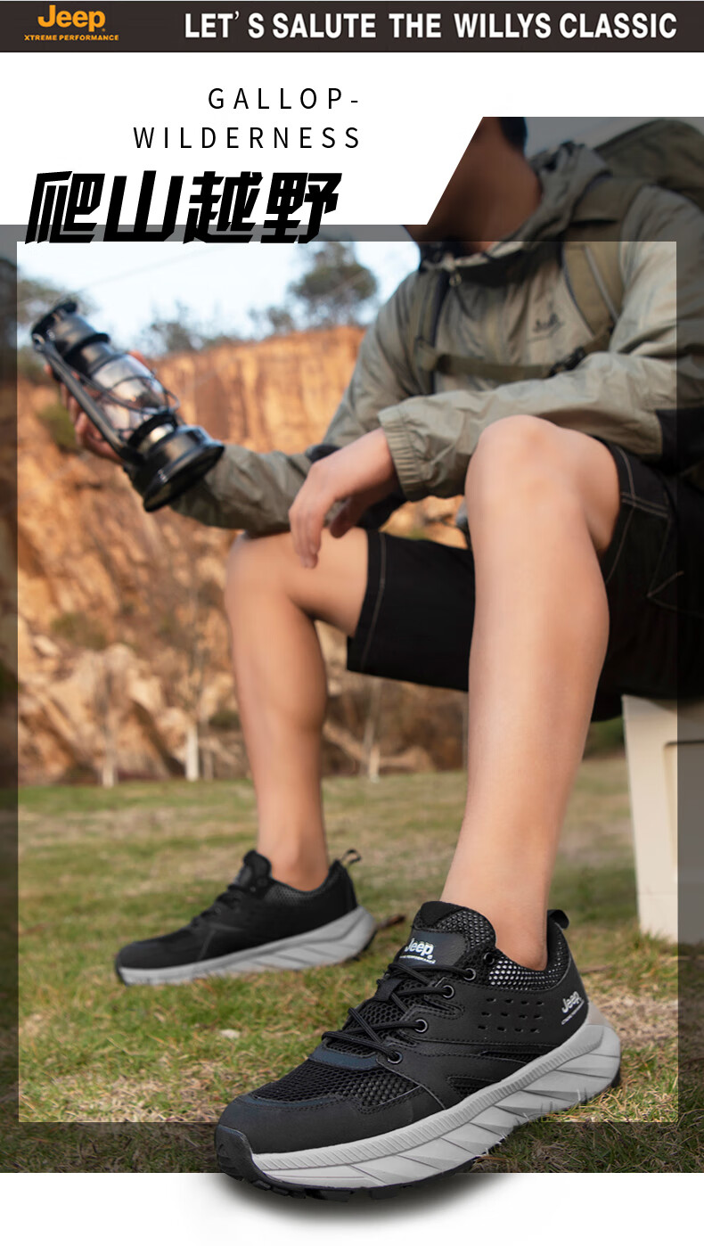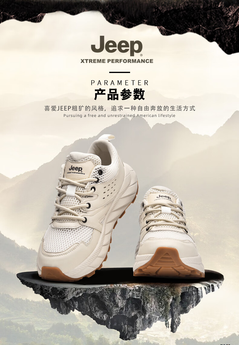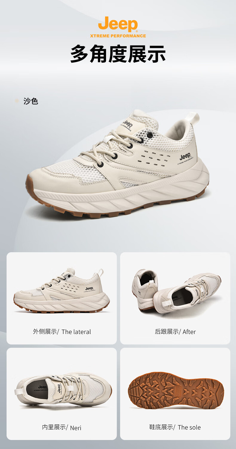Jeep吉普运动鞋男鞋夏季透气网面休闲鞋户外防滑软底耐磨徒步登山鞋男 沙色 41 【标准皮鞋尺码】