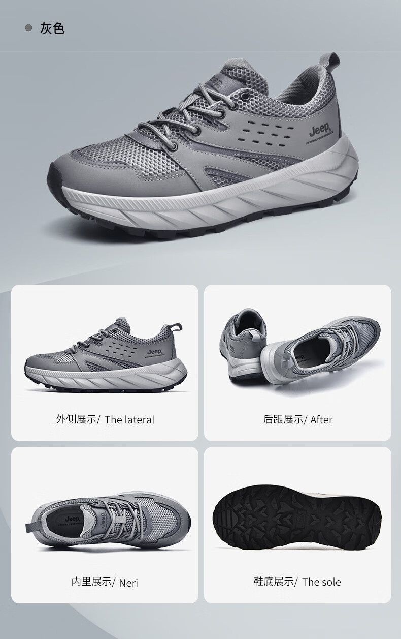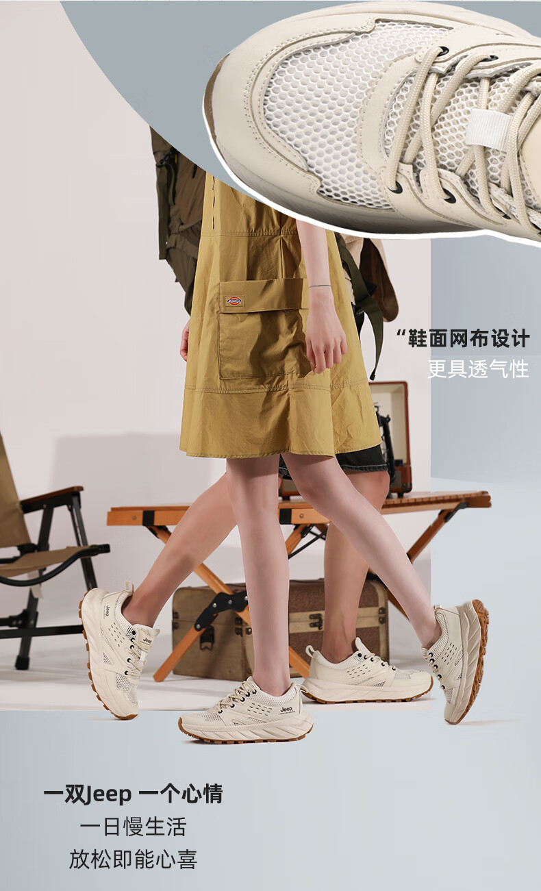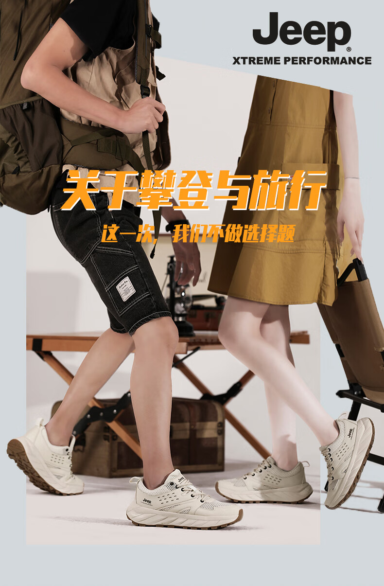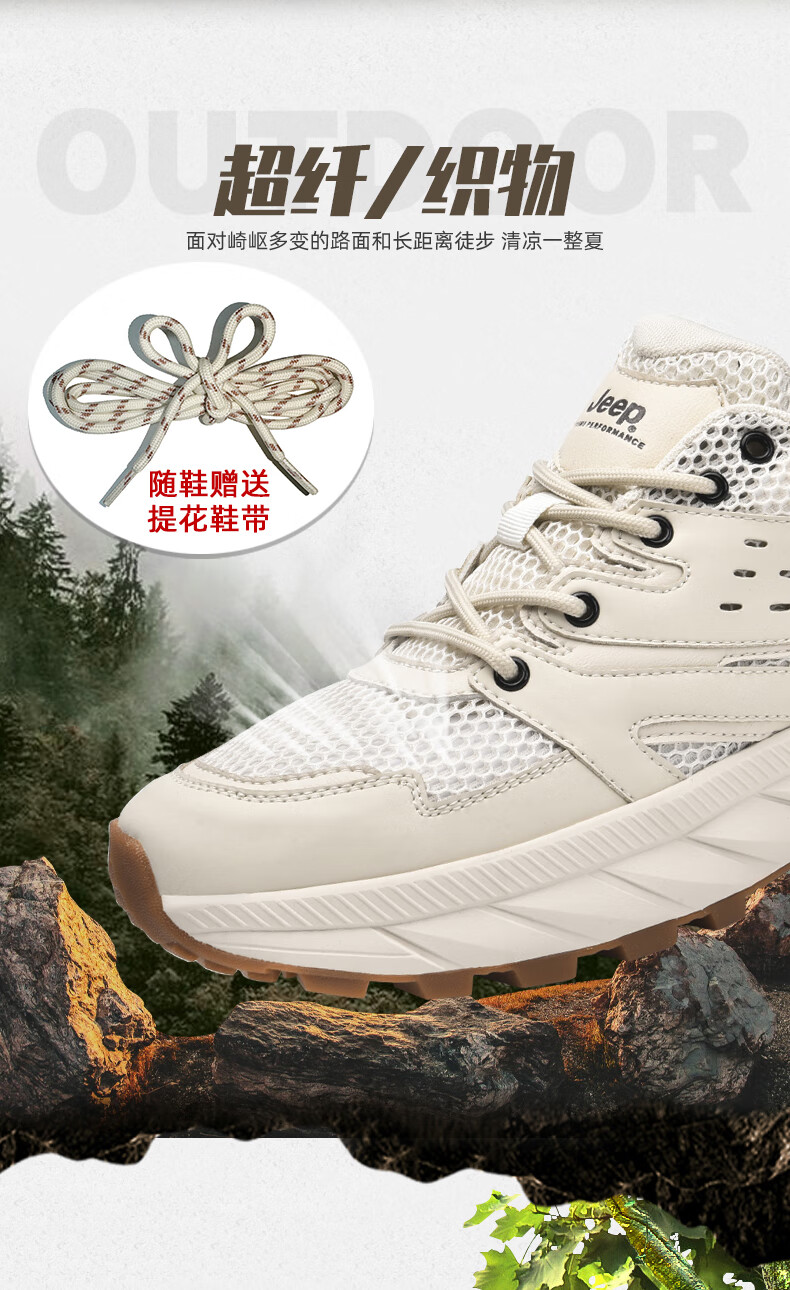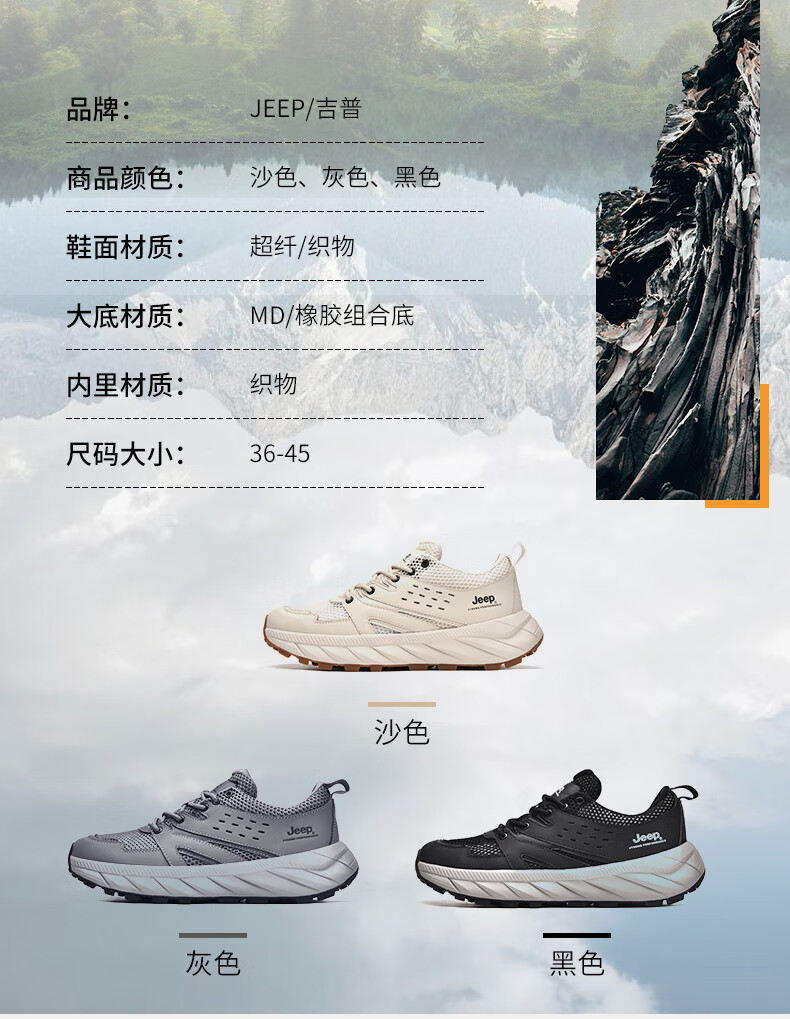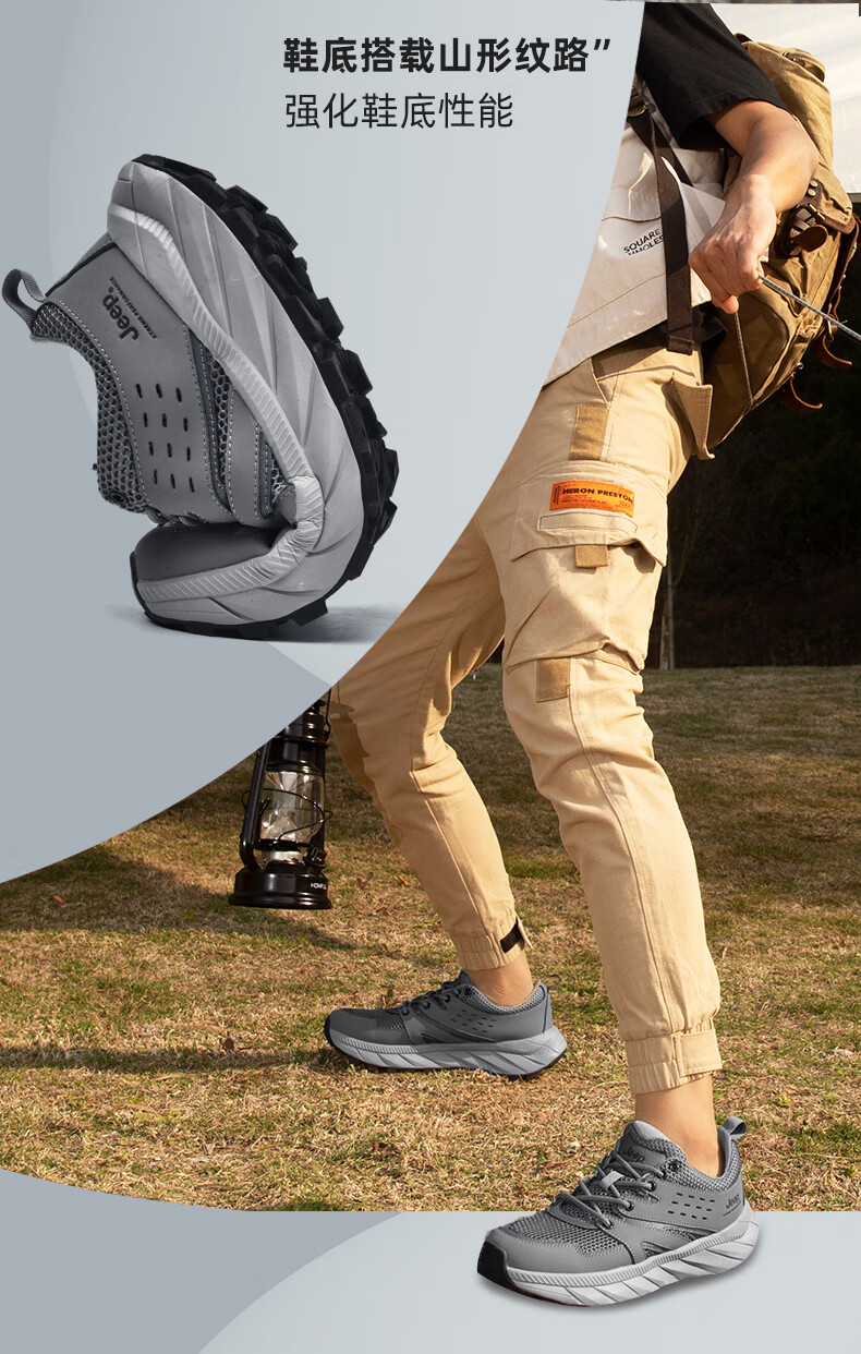 Jeep吉普运动鞋男鞋夏季透气网面休闲鞋户外防滑软底耐磨徒步登山鞋男 沙色 41 【标准皮鞋尺码】