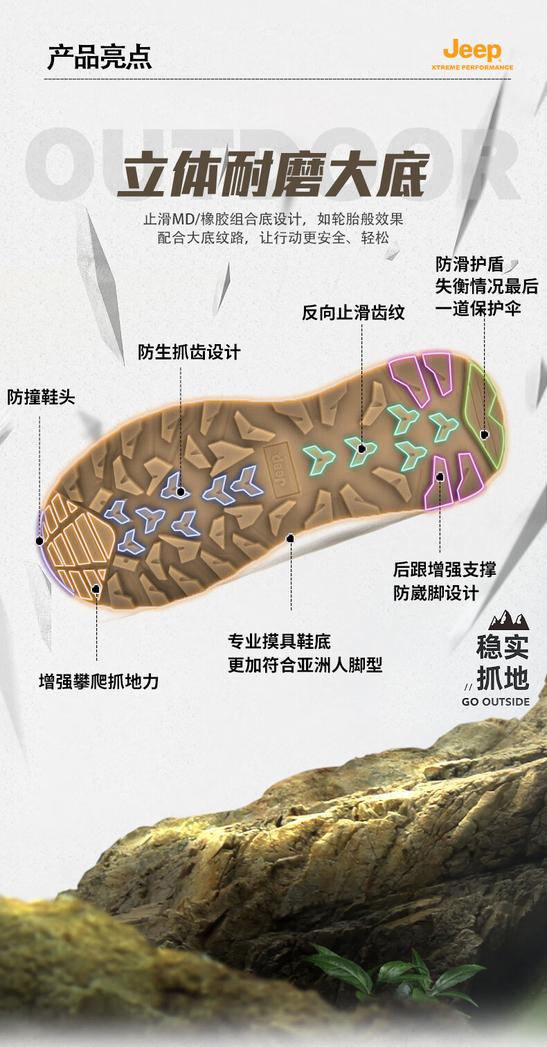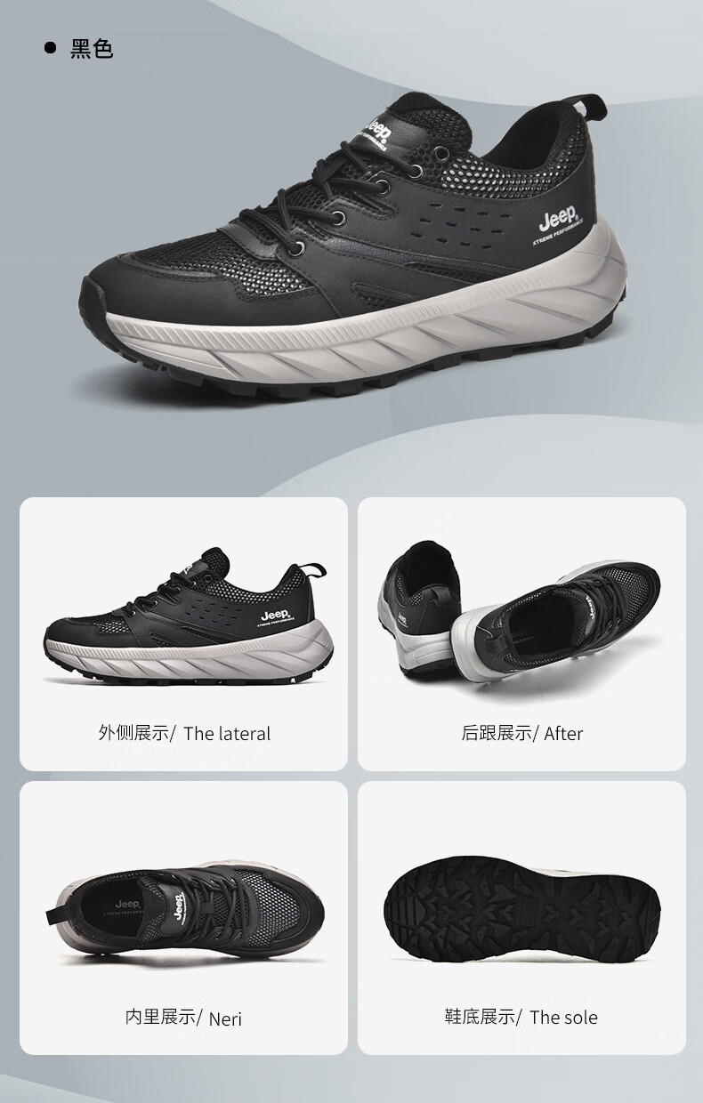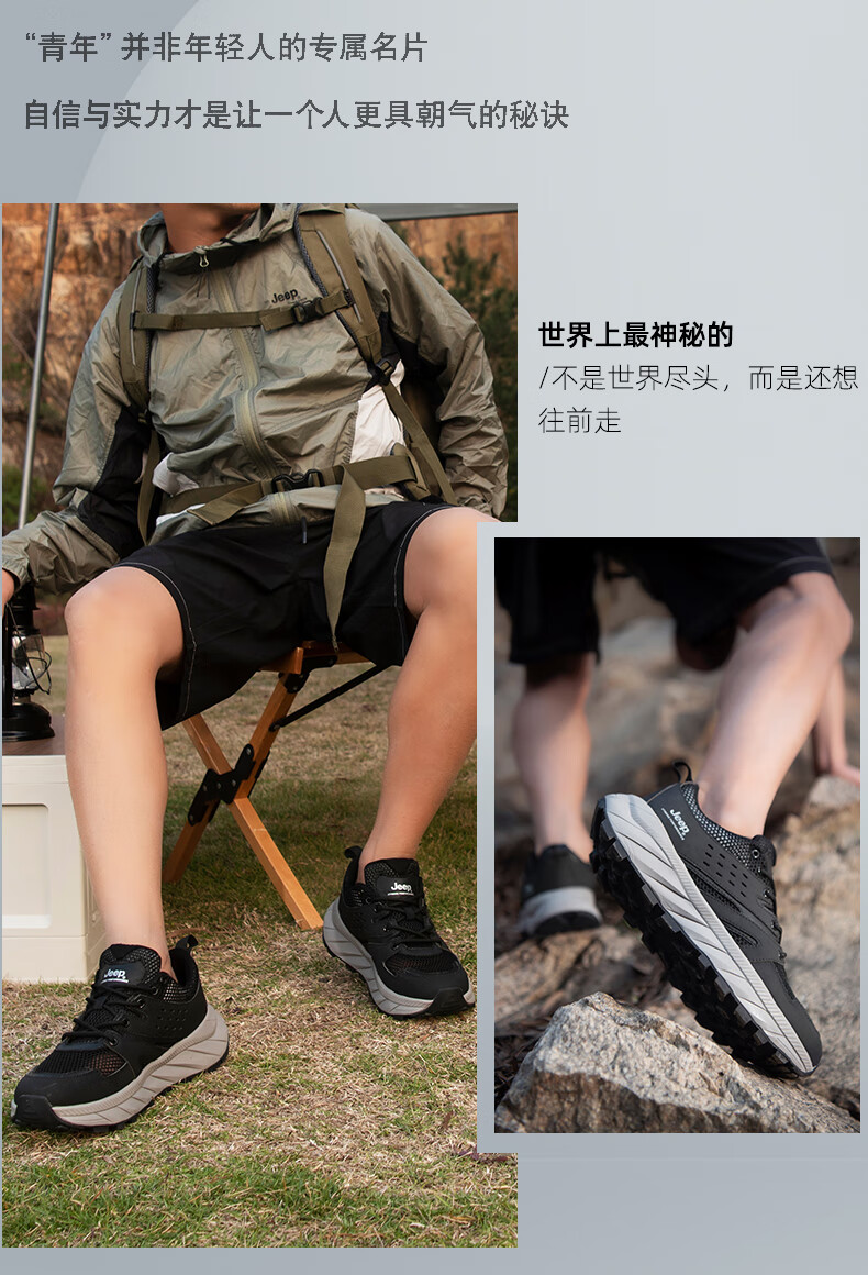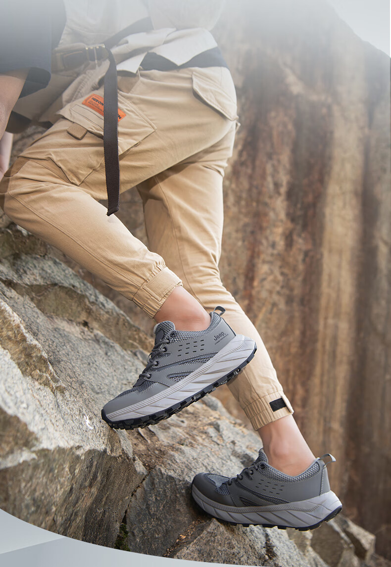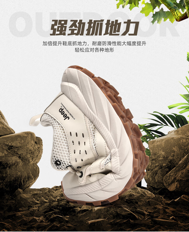 Jeep吉普运动鞋男鞋夏季透气网面休闲鞋户外防滑软底耐磨徒步登山鞋男 沙色 41 【标准皮鞋尺码】