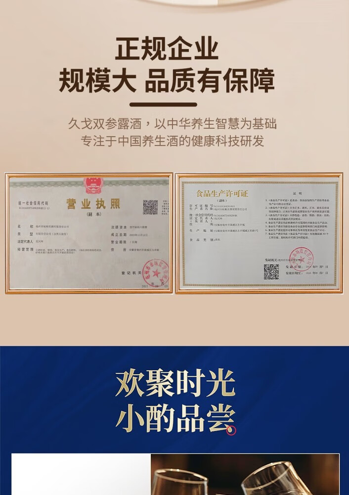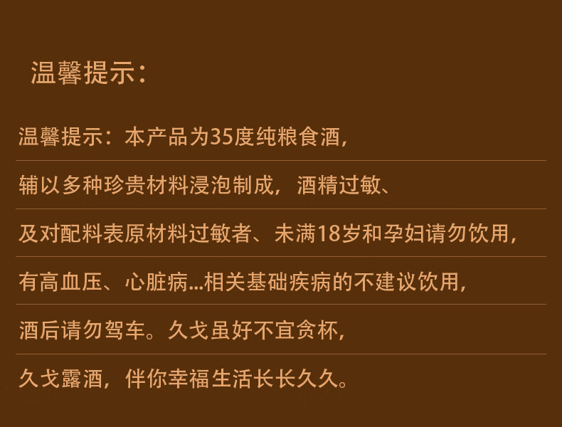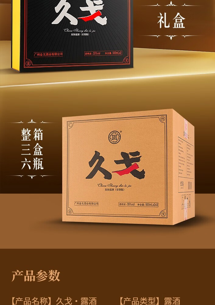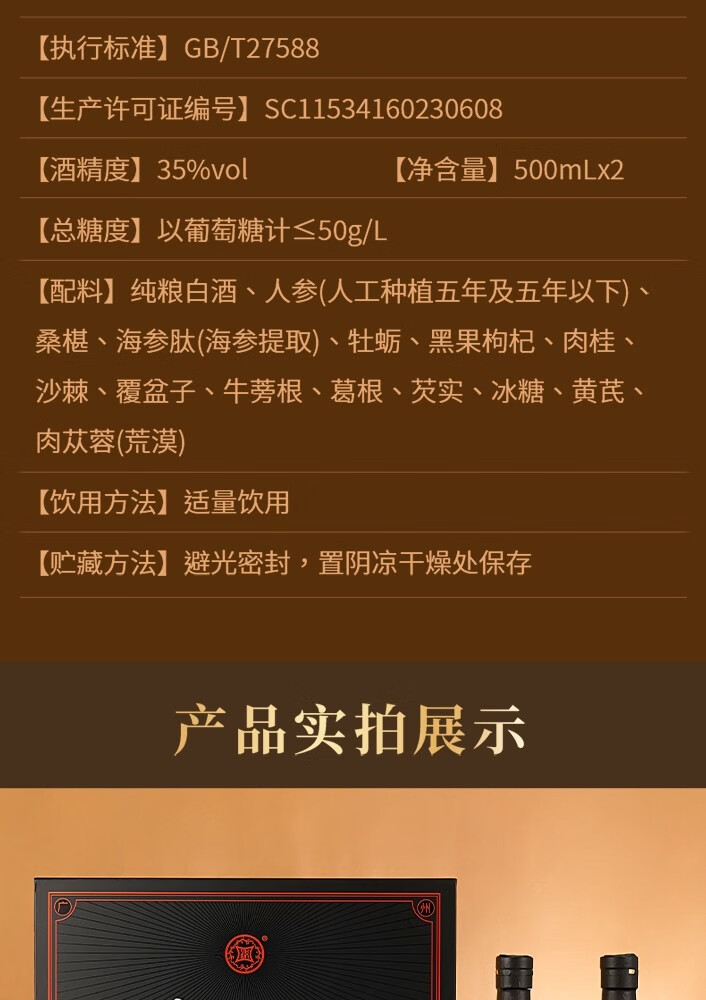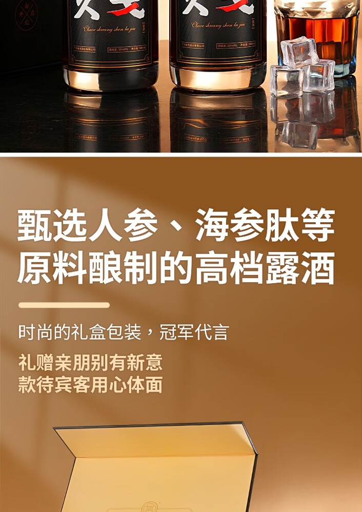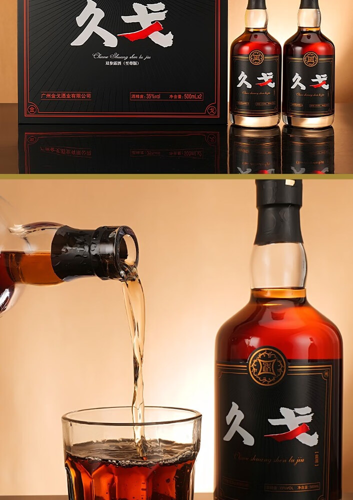久戈双参露酒纯粮35%冠军代言小黑瓶牡蛎人参海参肽补酒 35度 500mL 2瓶 【送125ml小酒1瓶】