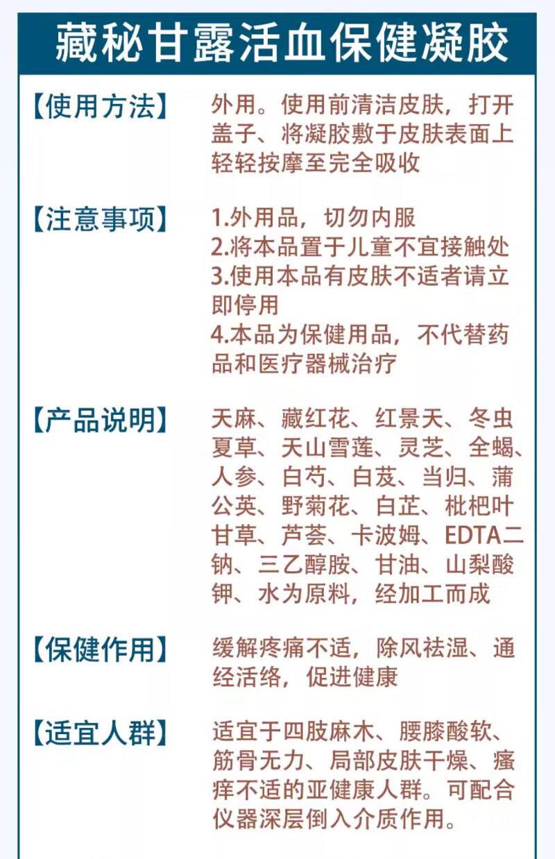 【现货速发】西藏玉灵藏秘甘露活血保健凝胶玉林藏方廿六御方 2支装【谨防低价假冒】