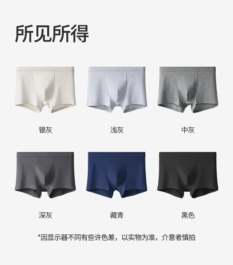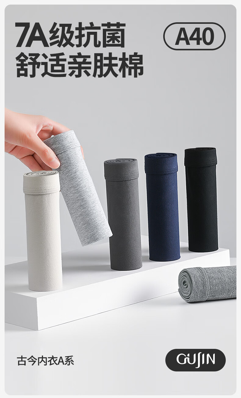 古今男士纯色棉质内裤男简约宽松四角裤3条装大码短裤 浅灰-中灰-深灰 3条 XL (175)