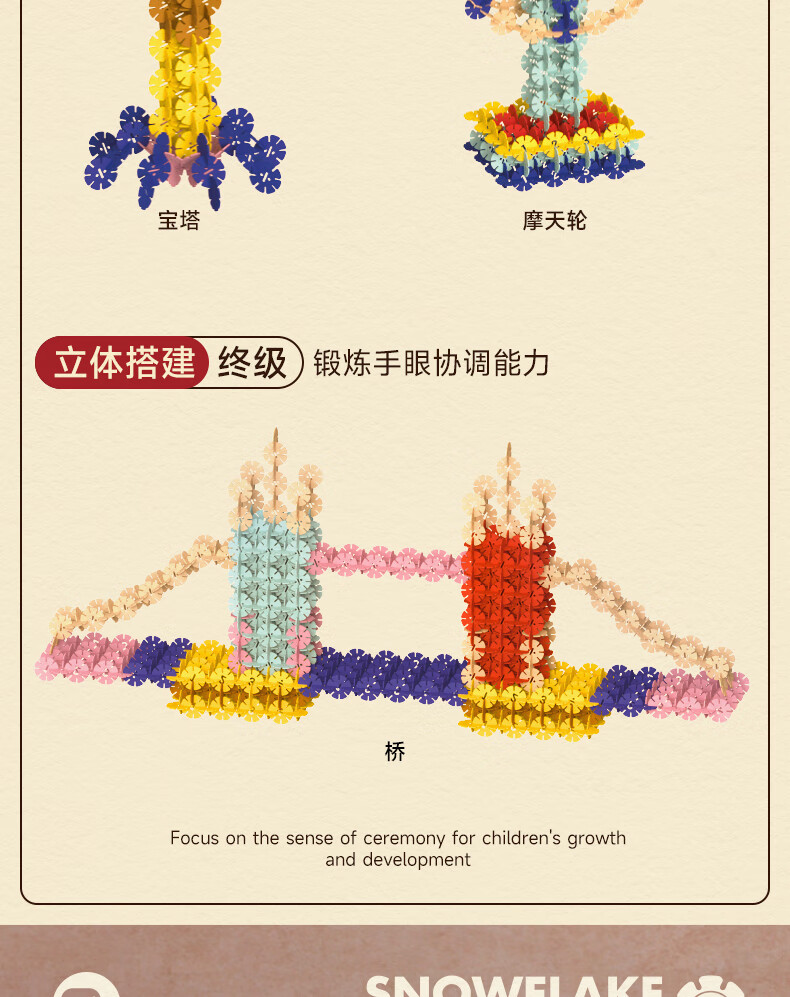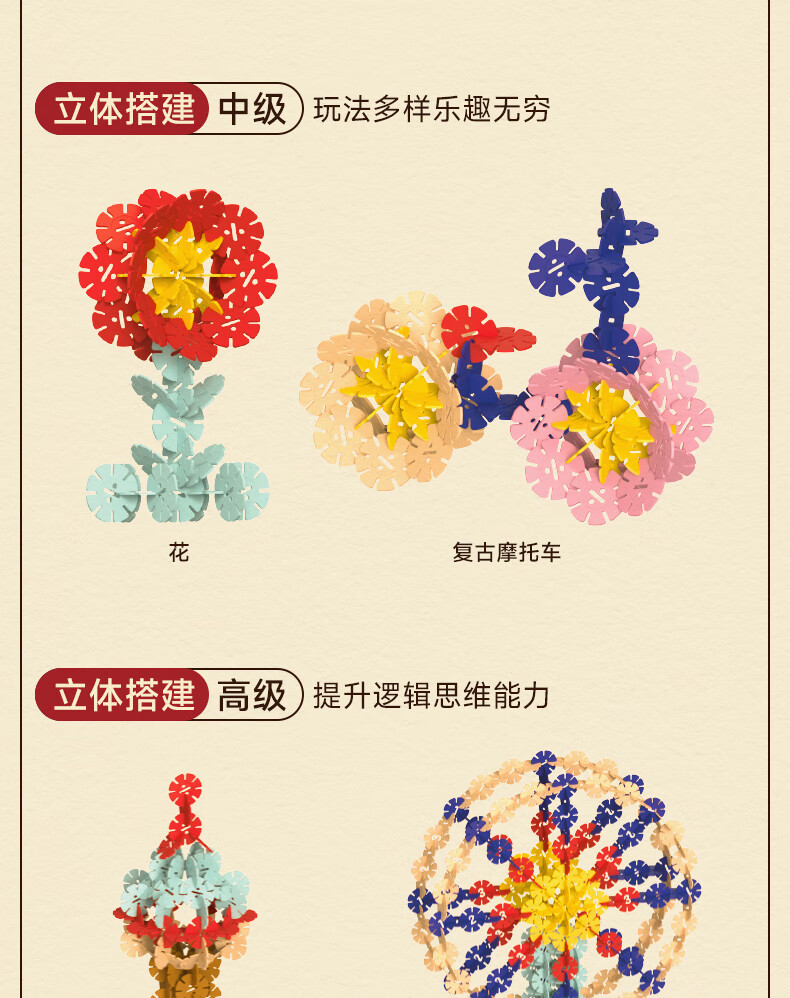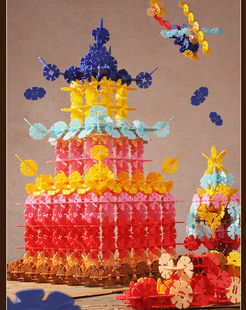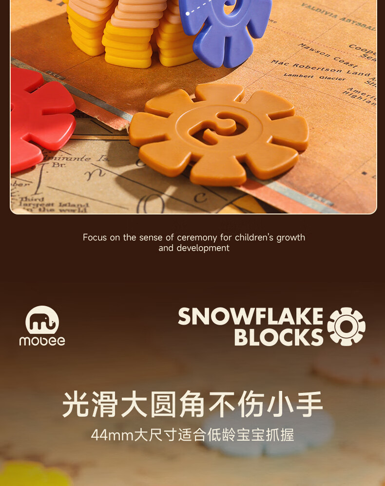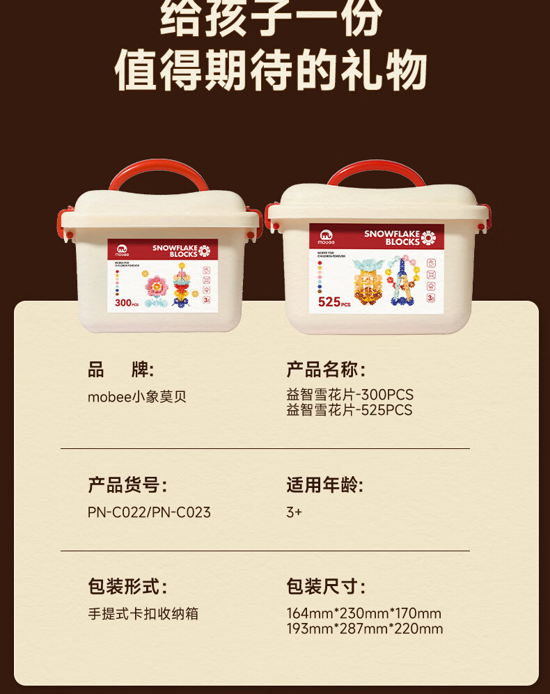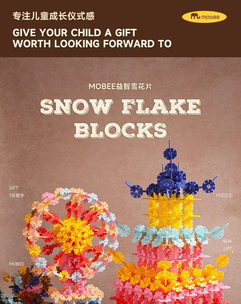 mobee雪花片儿童积木玩具立体拼图大号3-6diy益智手工装拼插新年节礼物 数字雪花片【525片】收纳箱装 色彩缤纷绚丽-光滑无刺-数字拼插