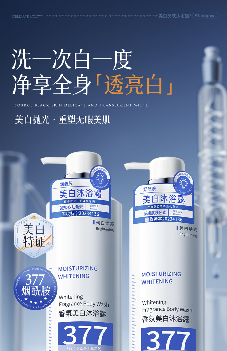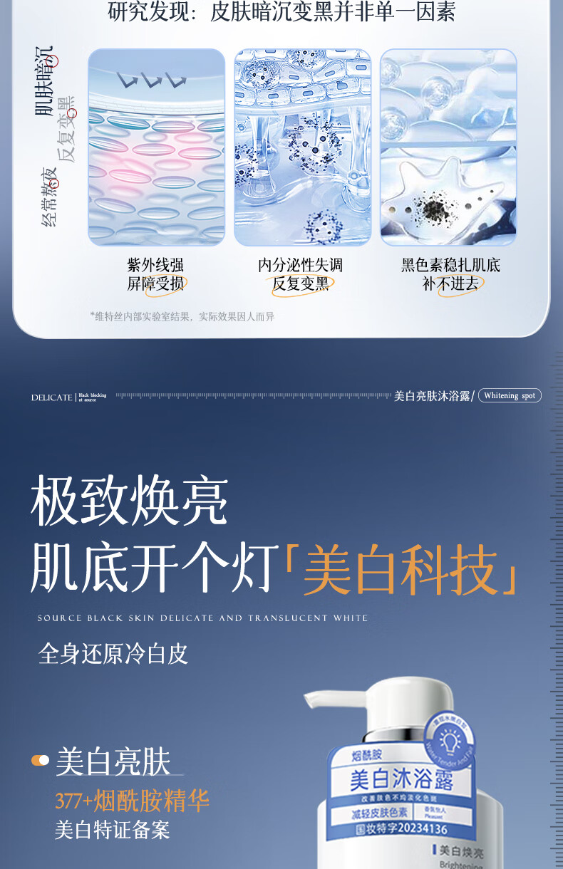 维特丝美白沐浴露男女士持久留香72小时香体氨基酸滋润保湿沐浴乳液 【王牌377成分】美白沐浴露500ml