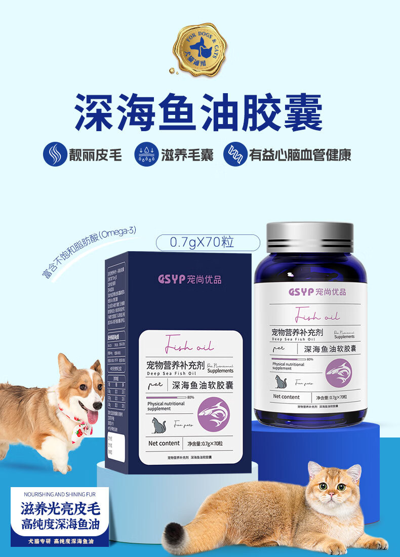 宠尚优品深海鱼油猫用狗用卵磷脂 蓝色 70粒