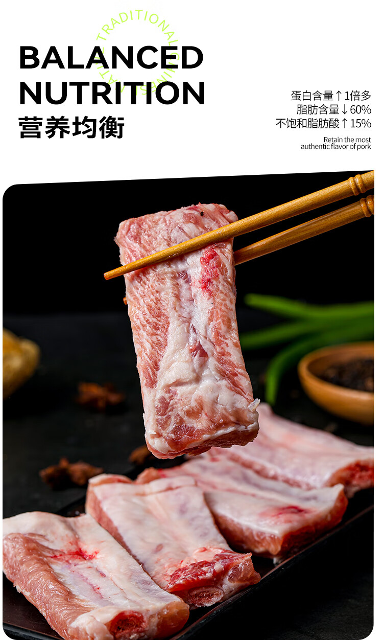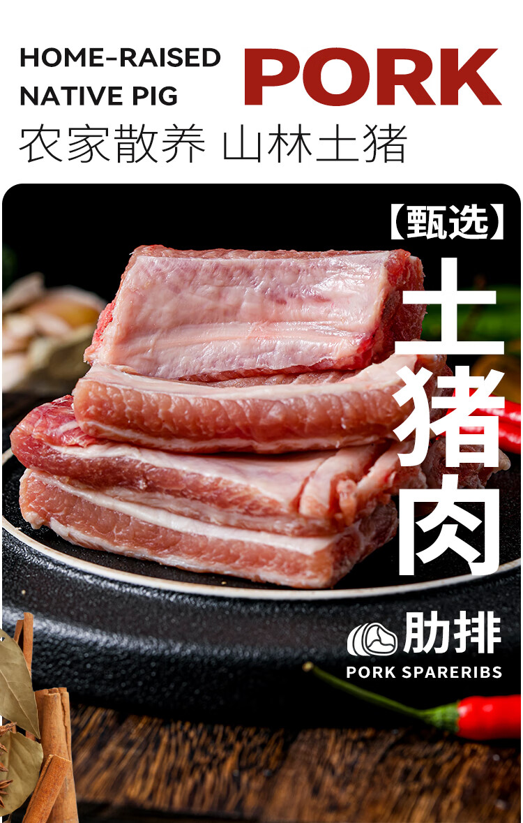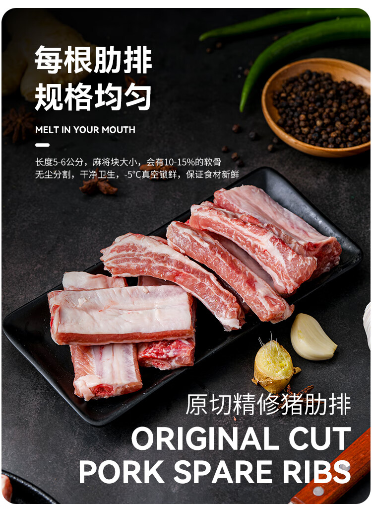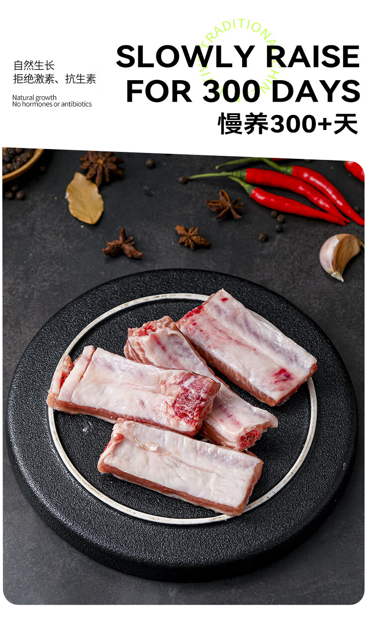 山野云陵农场 黑猪纯肋排中段无脊骨 猪脆骨肋排梅花骨肉 农家土猪300天慢养 猪脆骨肋排1kg*2盒