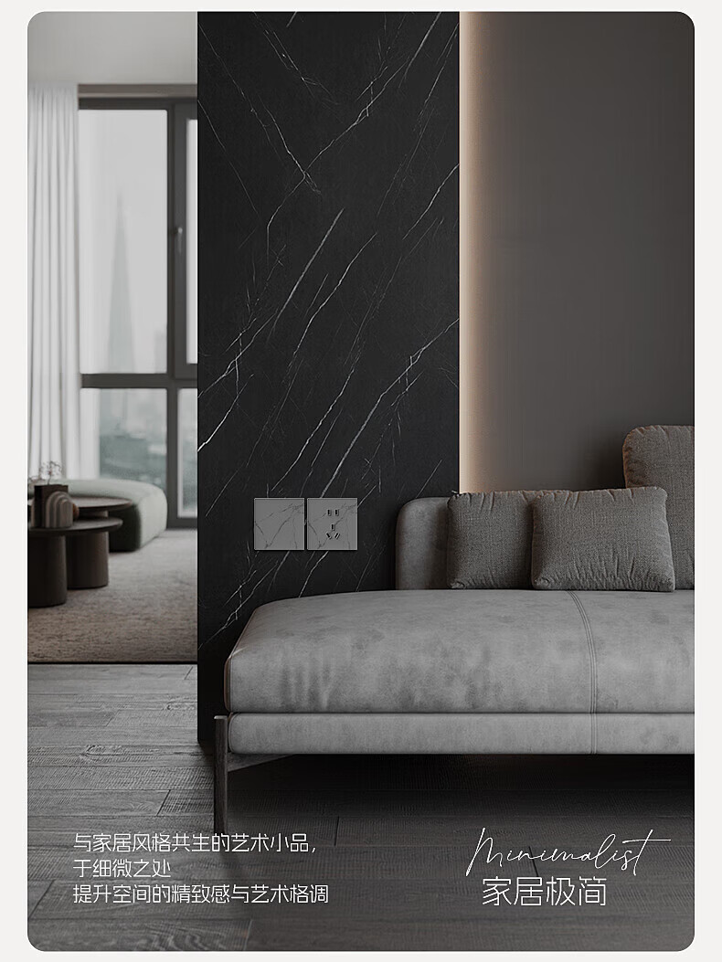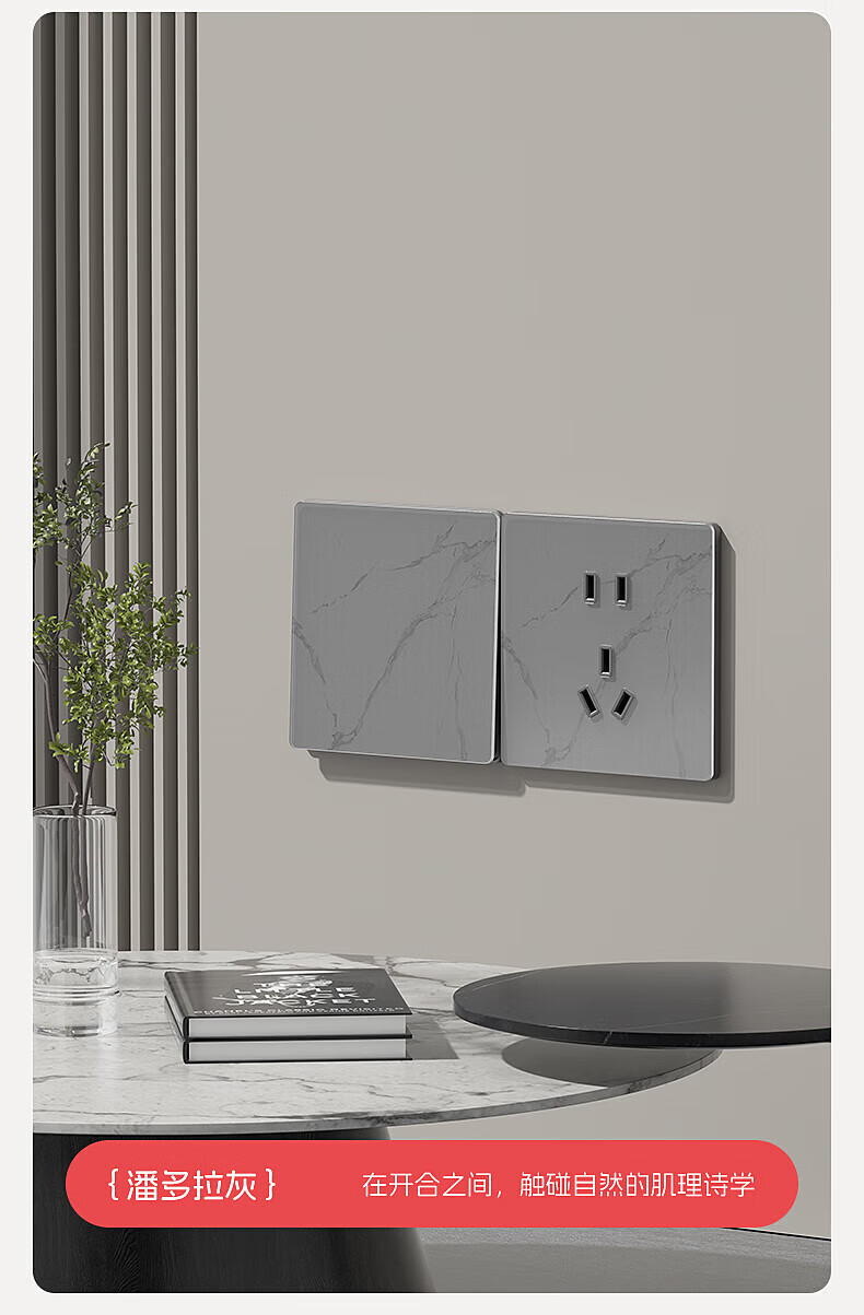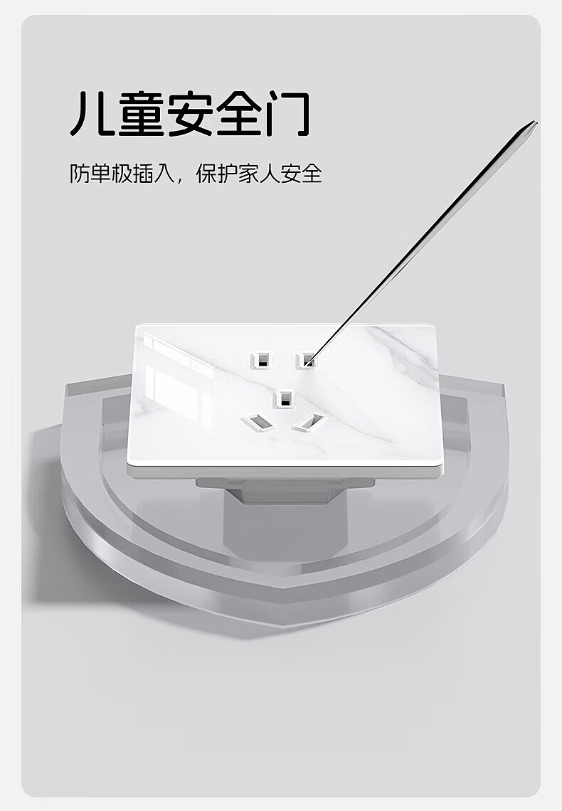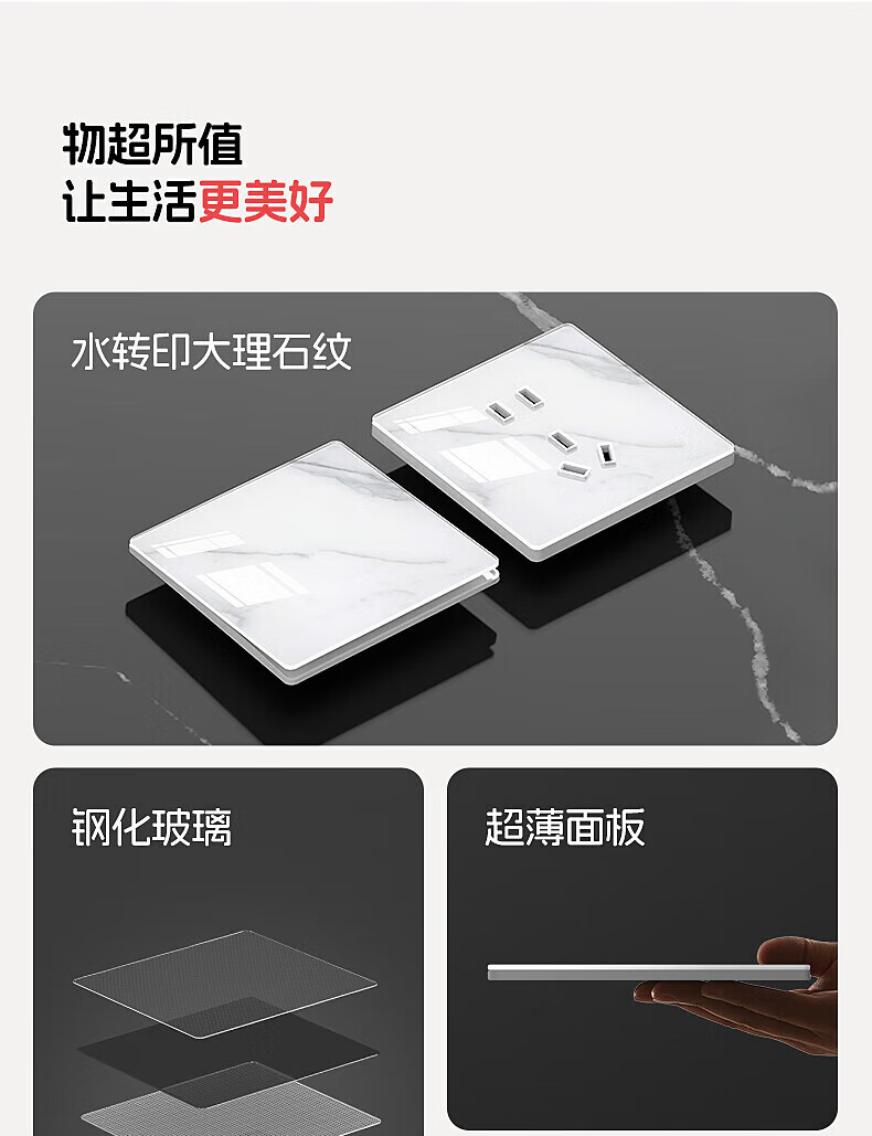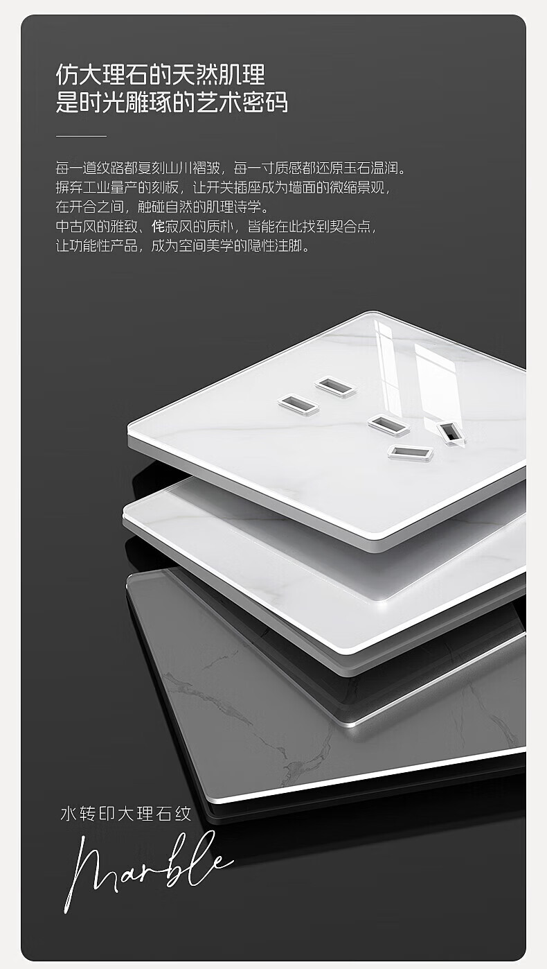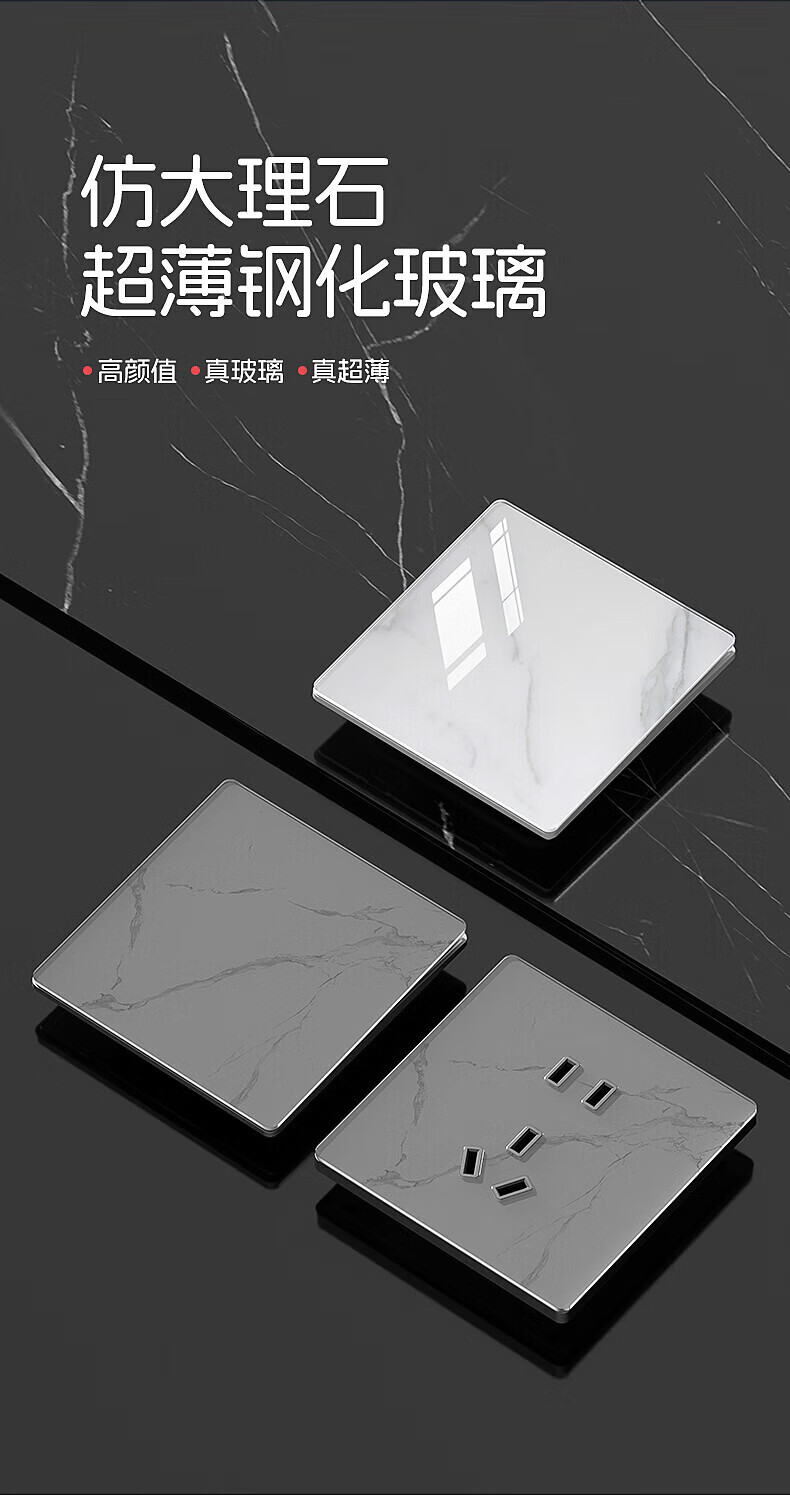 国际电工86型暗装钢化玻璃开关插座大理石纹面板家用墙壁电源一开五孔插座 一开单控