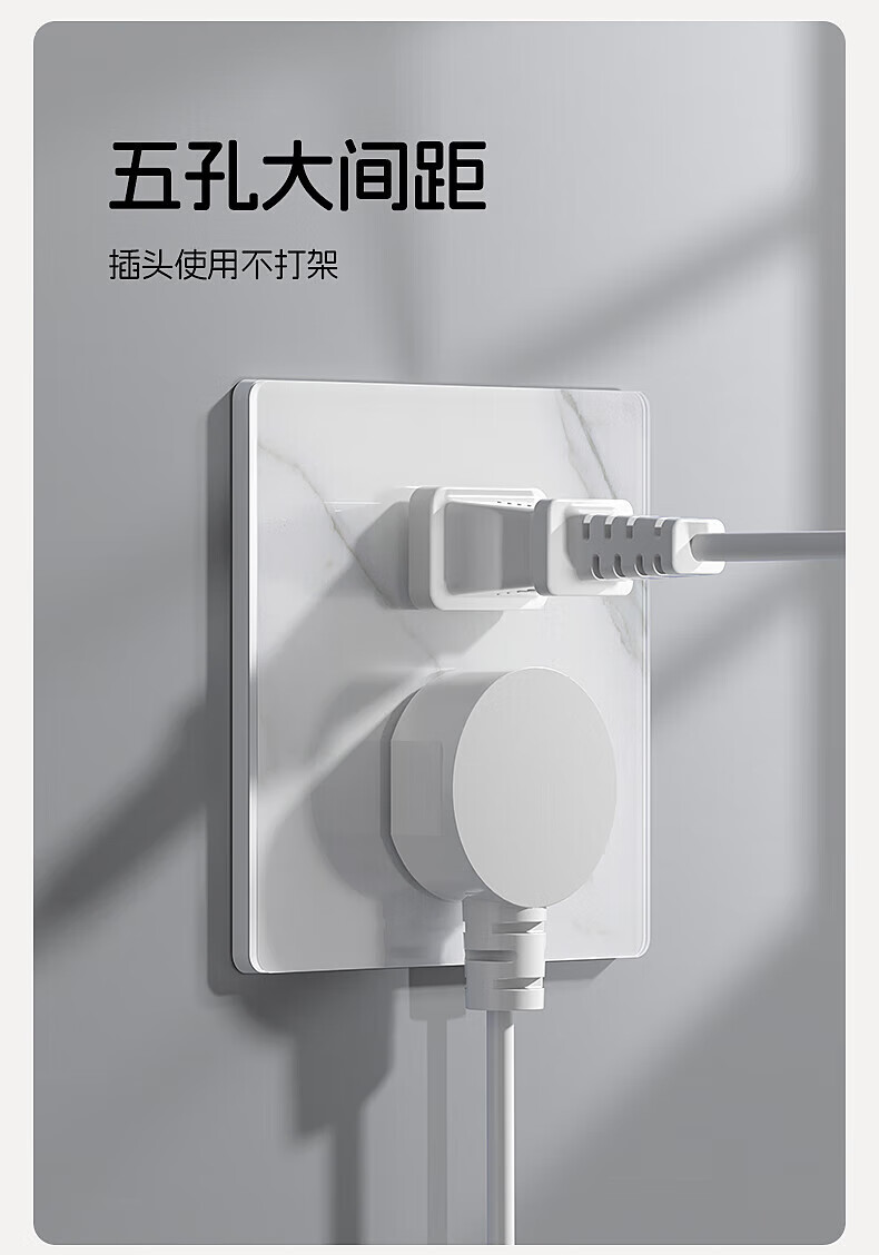国际电工大功率带线转换插座10A转16A空调热水器一转多扩展电源插口 一转四10A转10A五孔+10A五孔灰
