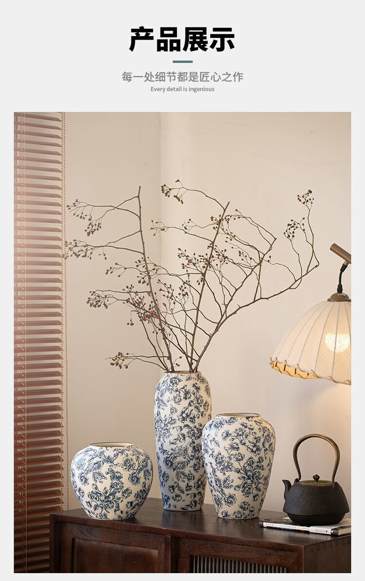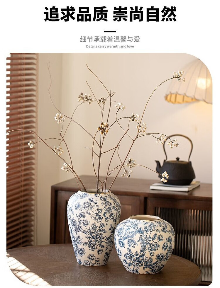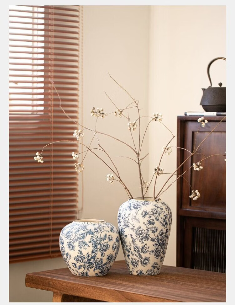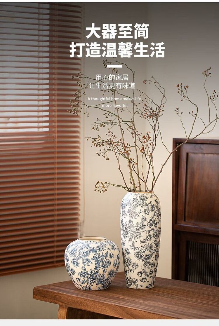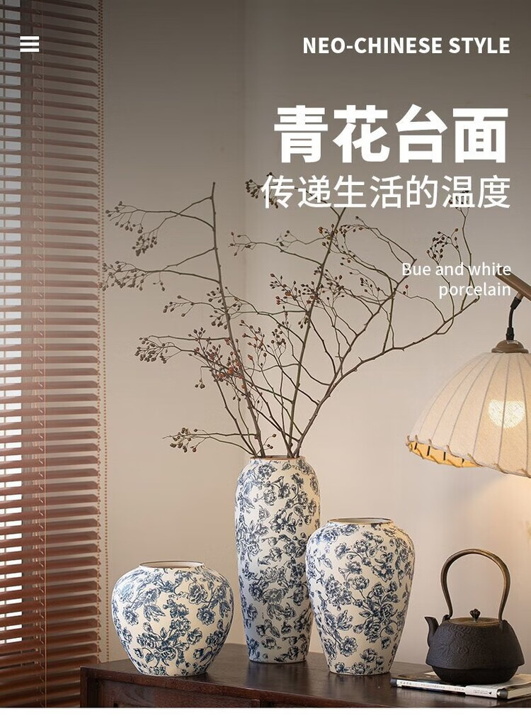 OYKTN景德镇新中式青花陶瓷花瓶家居民宿玄关复古装饰摆件插花水培花器 青花台面-F款