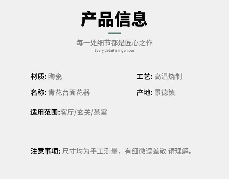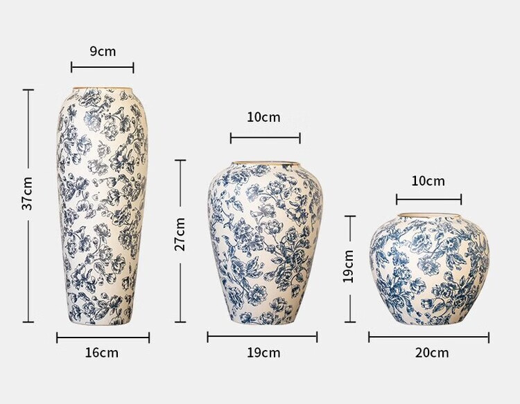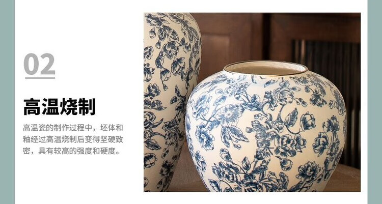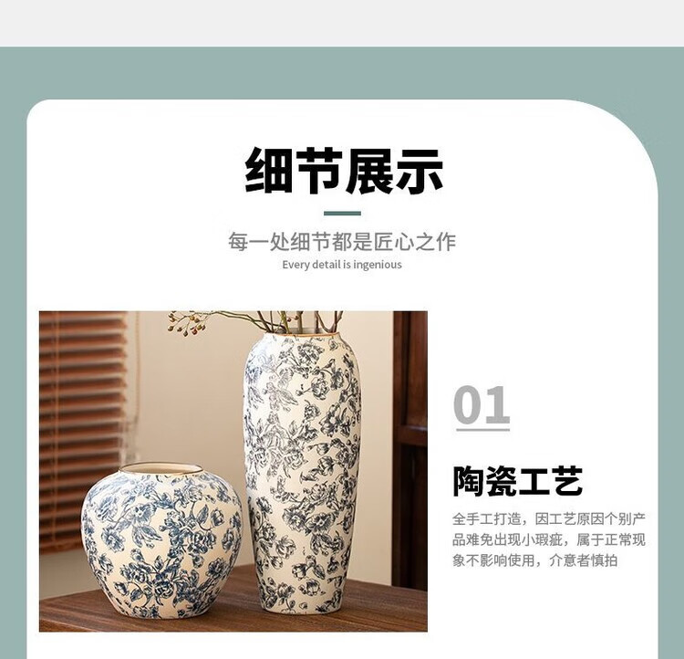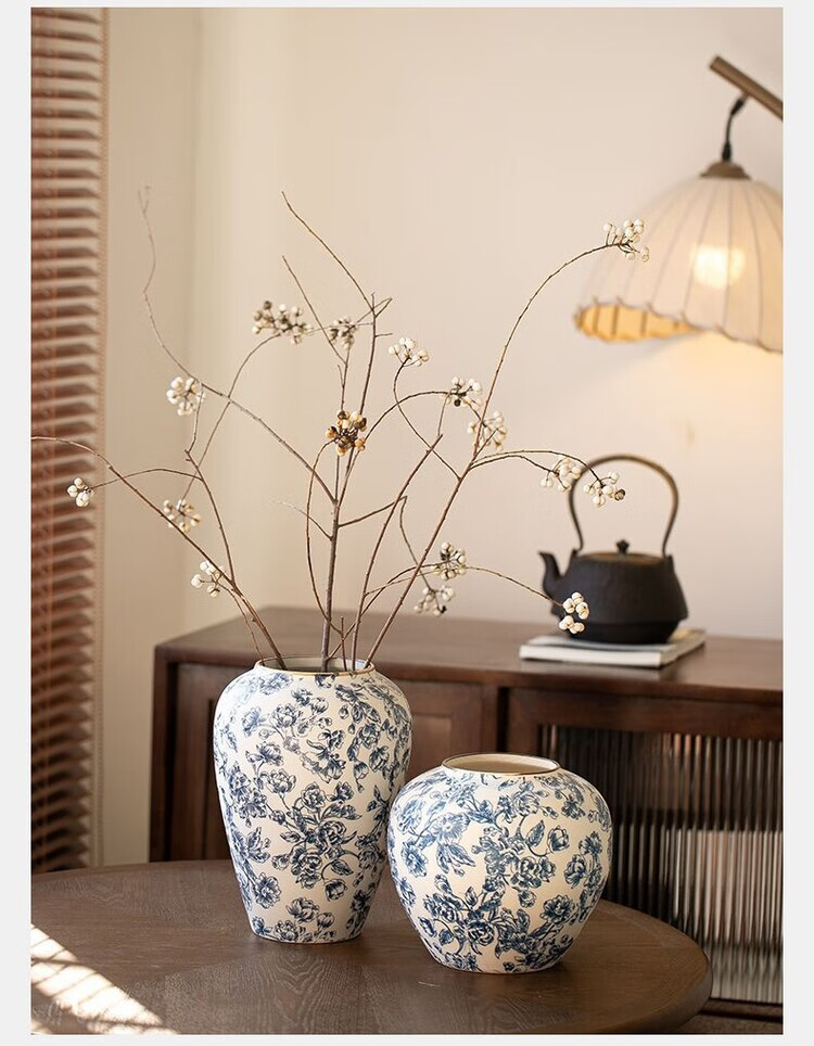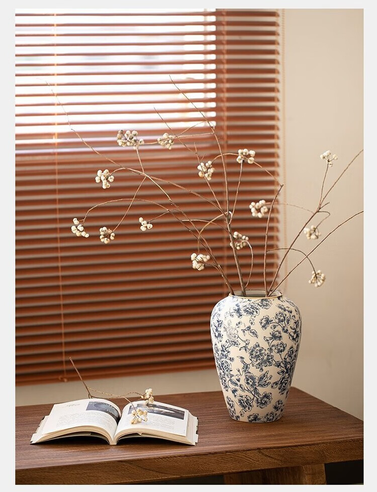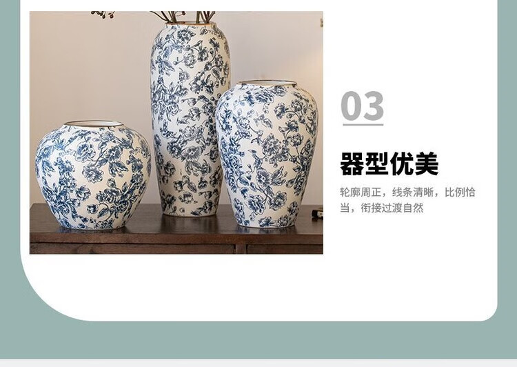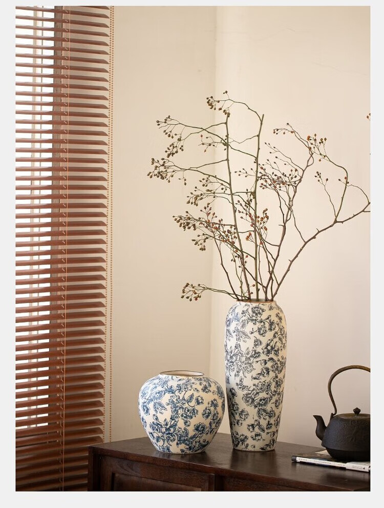 OYKTN景德镇新中式青花陶瓷花瓶家居民宿玄关复古装饰摆件插花水培花器 青花台面-F款