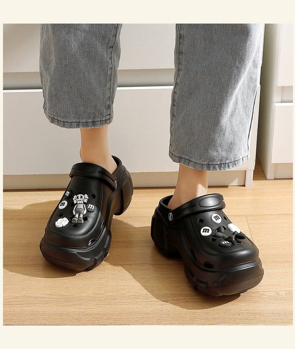 【精选】户外洞洞鞋男款夏外穿2025新款踩屎感厚底防滑防臭海边沙 黑紫 42 -43