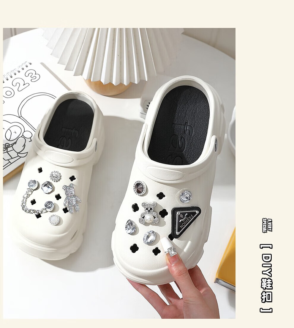 【精选】外穿男士夏季新款钓鱼洞洞鞋运动外穿耐磨厚底踩屎感包头 白色 36 -37