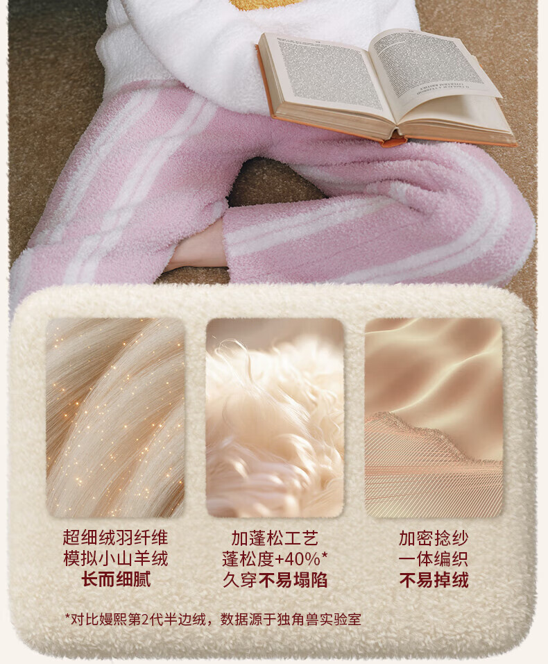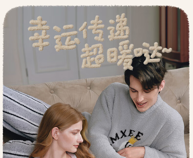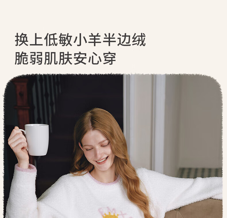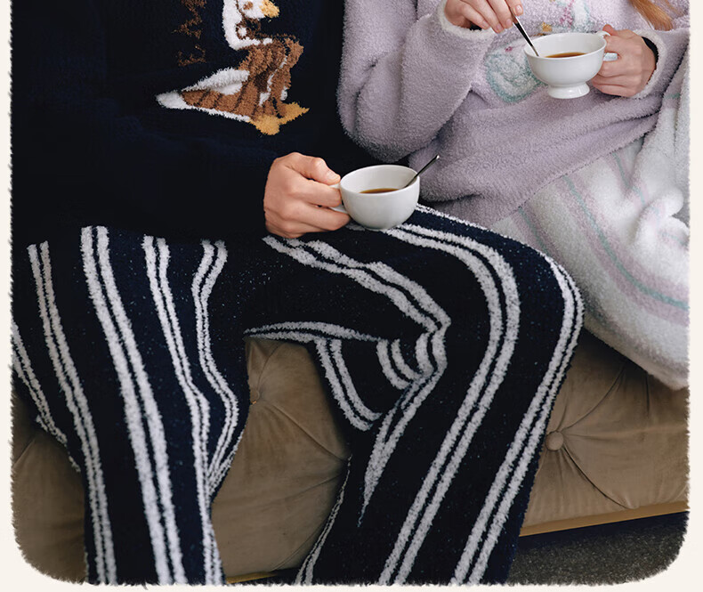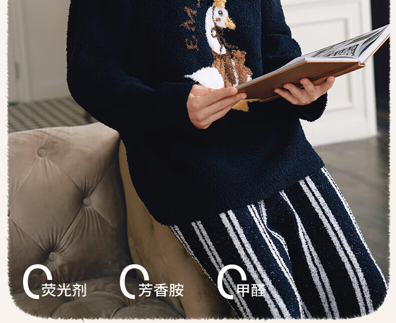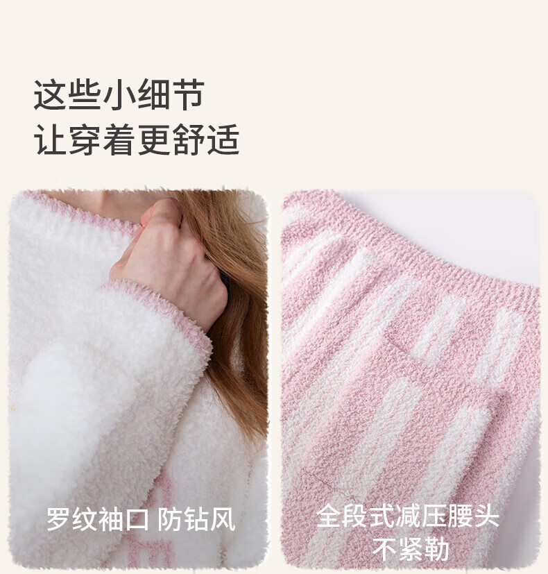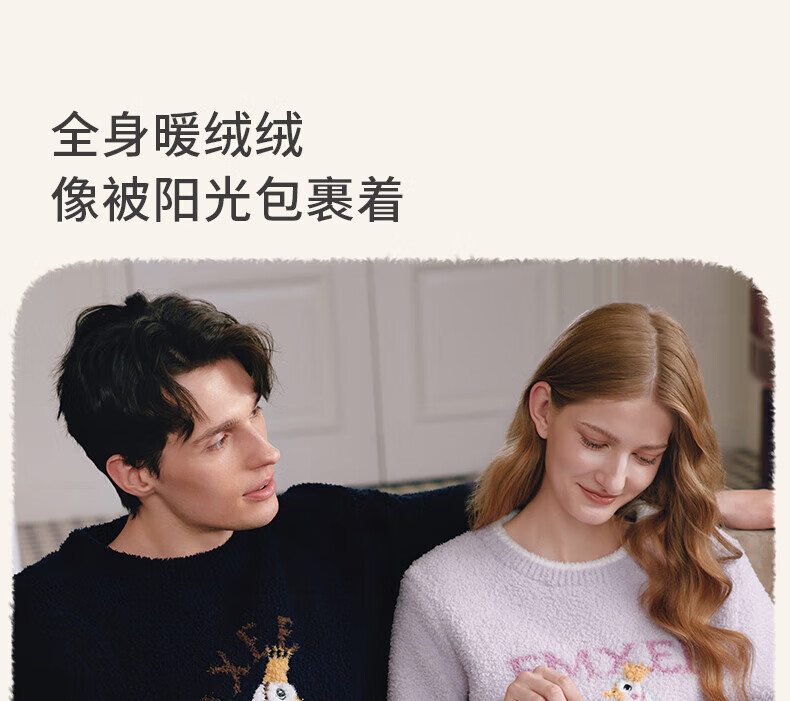 嫚熙(EMXEE)幸运鹅秋冬牛油果半边绒女士睡衣情侣加绒家居服套装2025新款 圆领-幸运鹅(奶昔白) S
