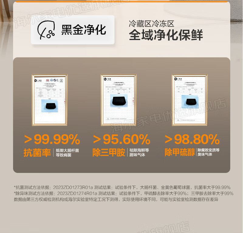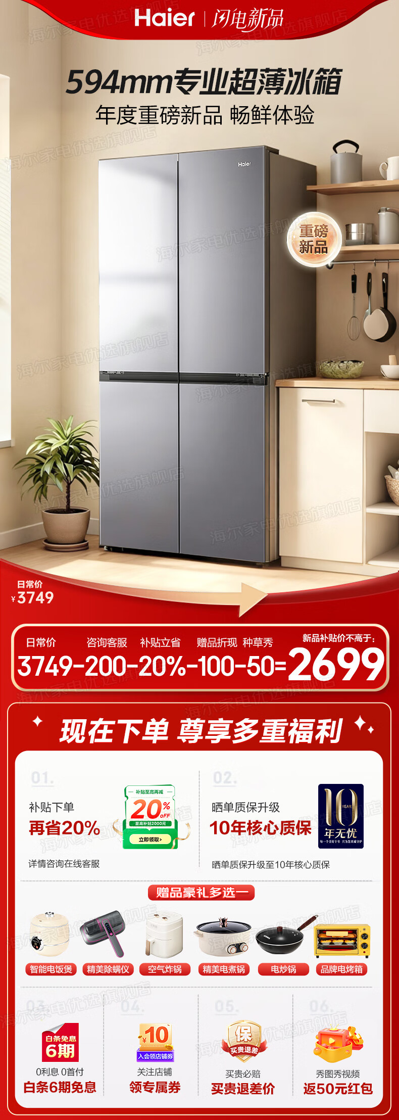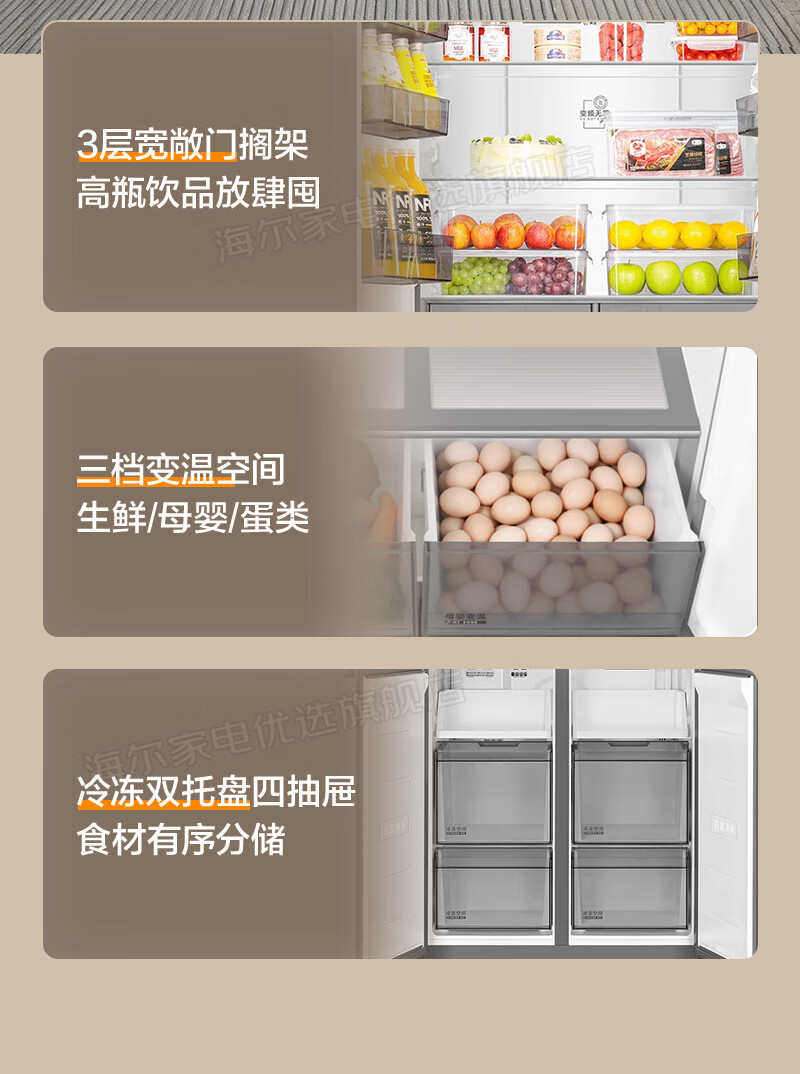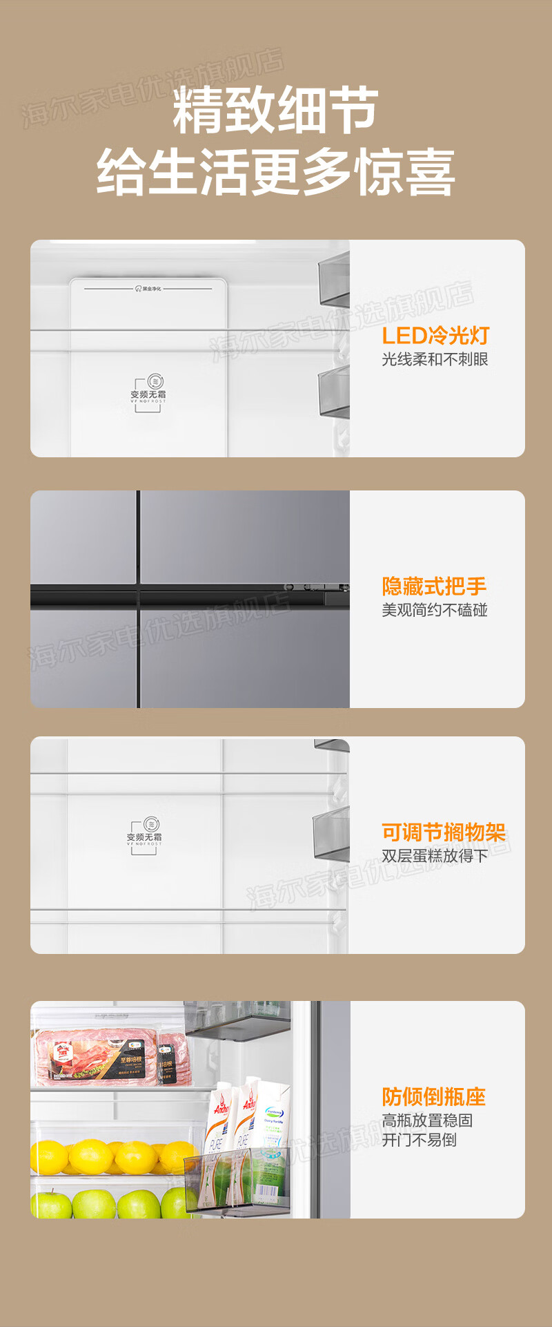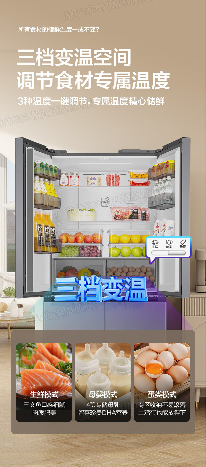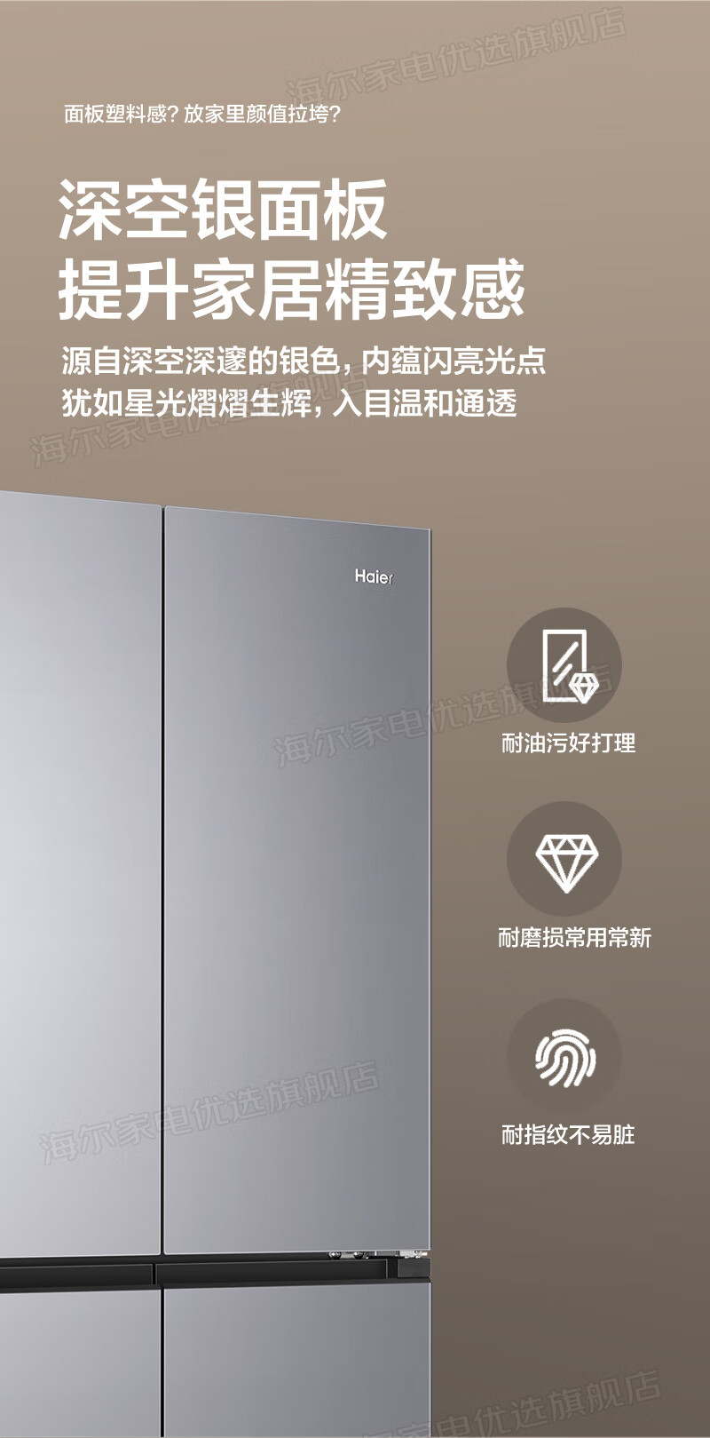 海尔冰箱十字四开门500升小红花系列 双开门深度60cm以下超薄一级能效大容量无霜电冰箱家用 以旧换新 全域黑金净化丨594mm超薄丨AI变频科技 【小红花系列】2026年新款丨500升