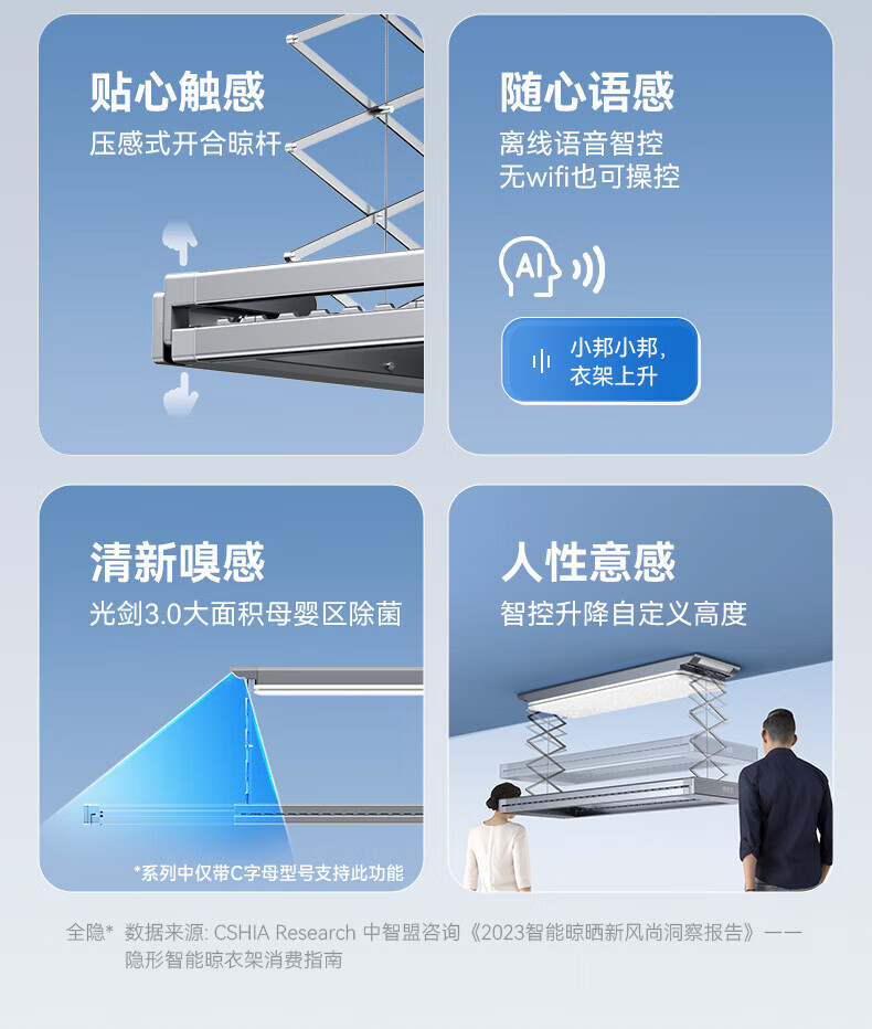 邦先生电动晾衣架隐藏式智能阳台晒衣架【M66PRO】星空灯+离线语音