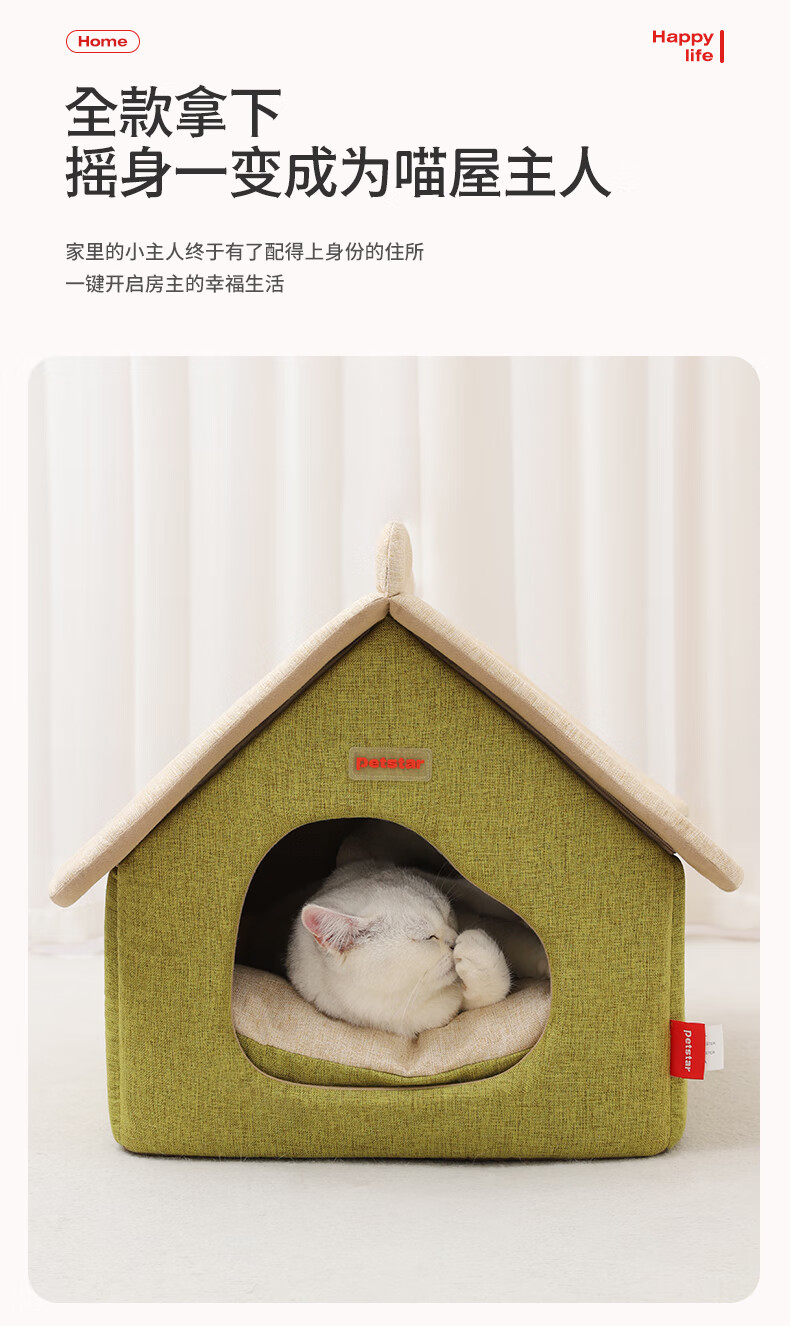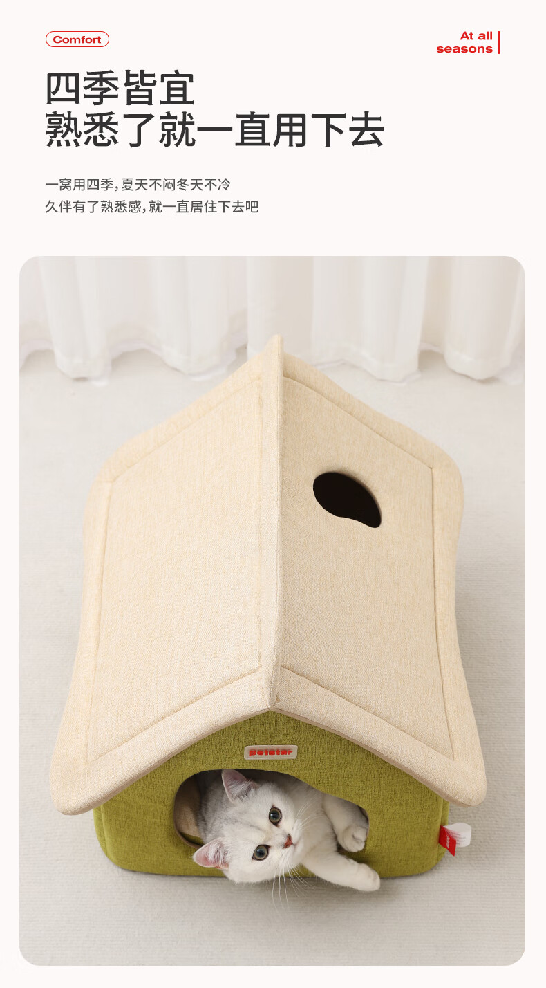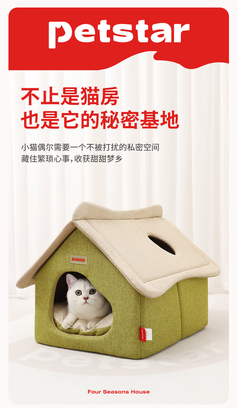 PETSTAR猫房子猫窝四季通用 封闭式猫咪屋可拆洗宠物睡觉的窝