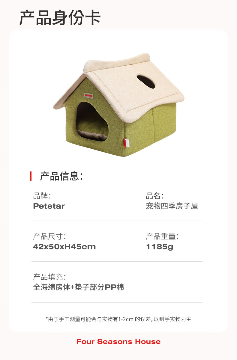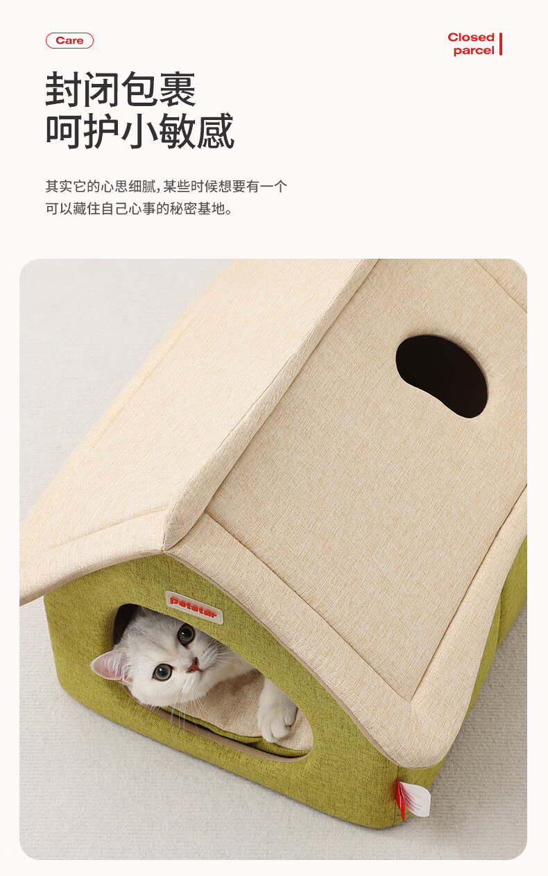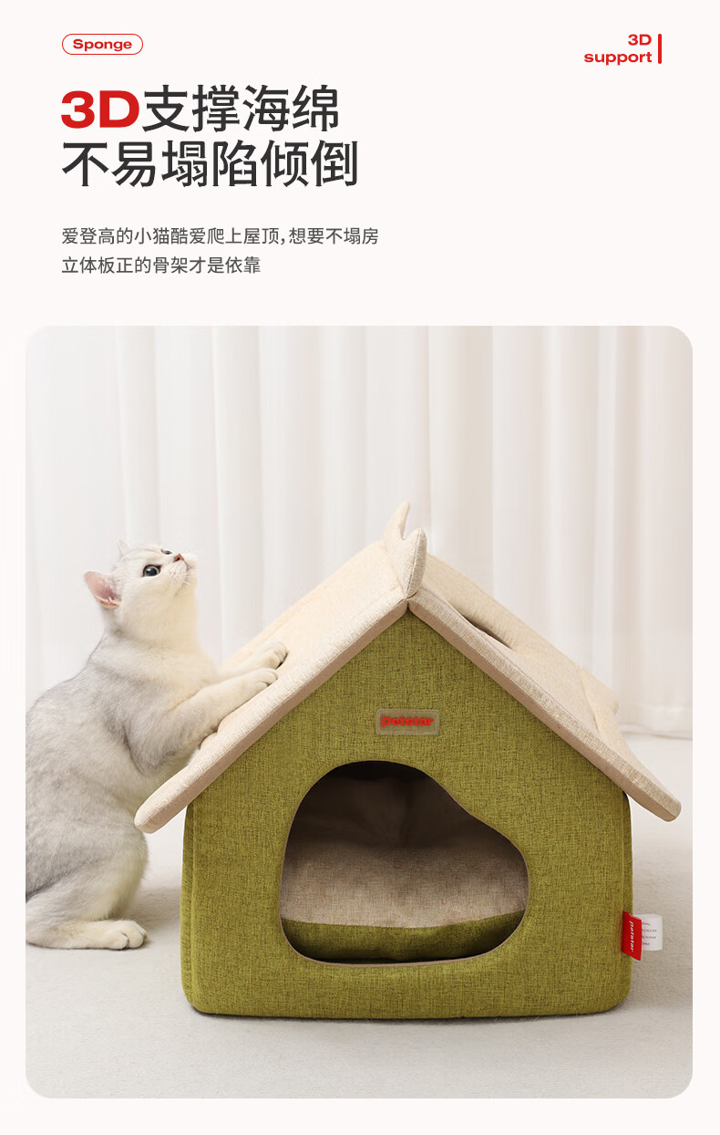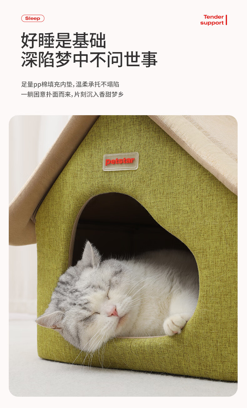 PETSTAR猫房子猫窝四季通用 封闭式猫咪屋可拆洗宠物睡觉的窝