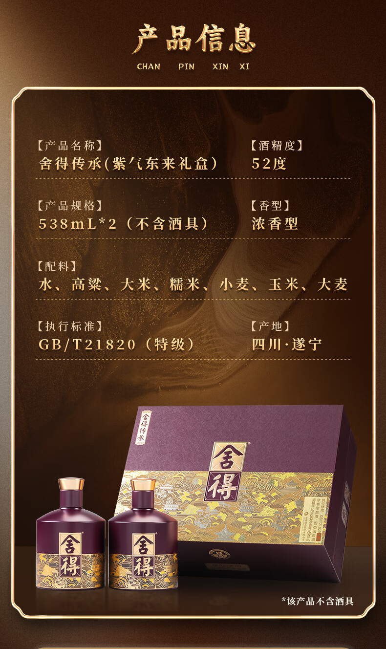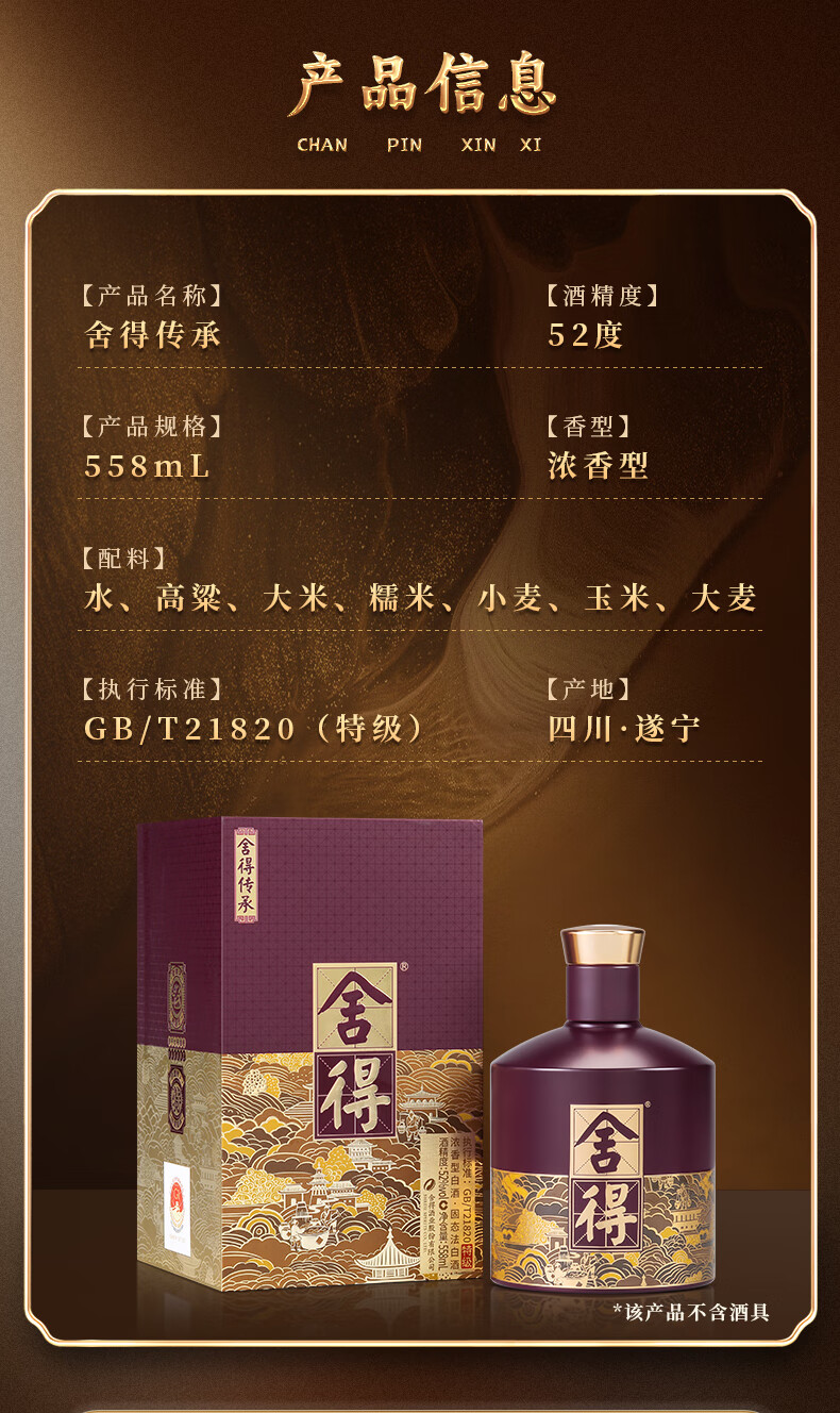 舍得【加量不加价】品味舍得 传承版 浓香型白酒 纯粮 送礼礼物 52度 558mL 1瓶