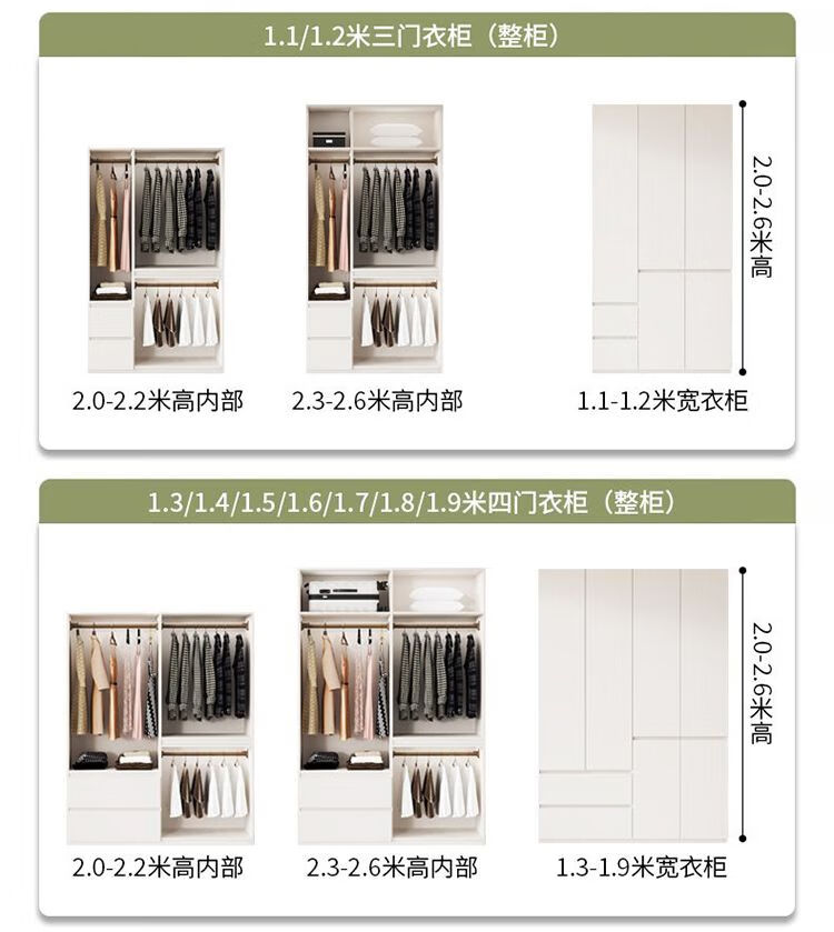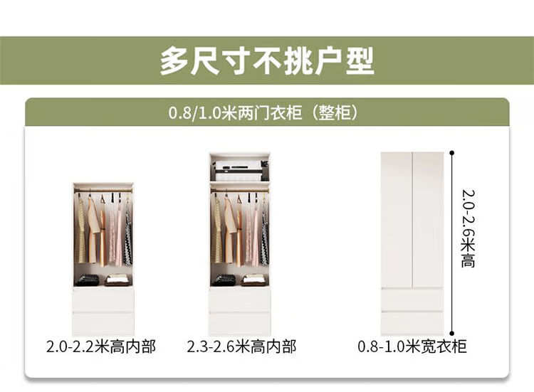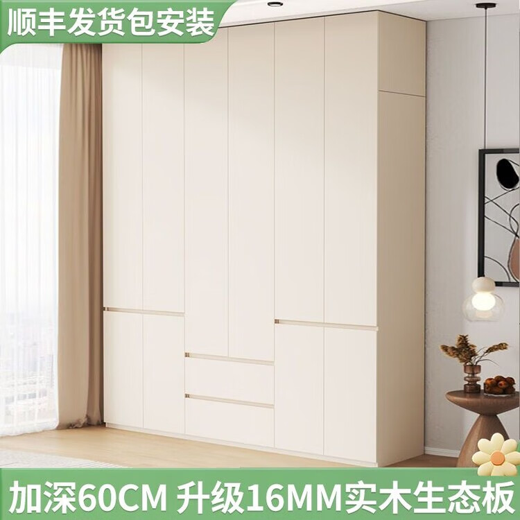 芝华士定制加厚实木多衣柜一门顶60cm深度家用卧室奶油风同款华士 2.8米高【加厚实木板全柜体】 1.0米长(顺丰送货上楼包安装)