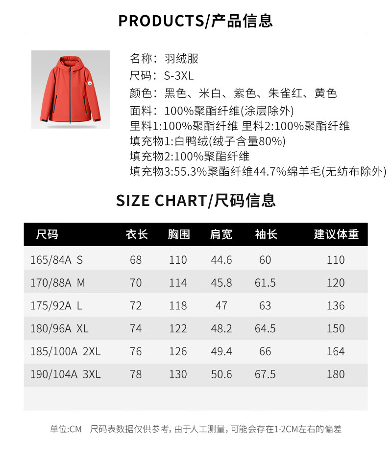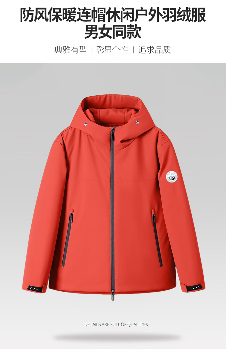 H 2000【达人专属】2025年秋冬情侣户外防风保暖连帽羽绒服外套D5W45200 朱雀红 2XL 推荐150-164斤