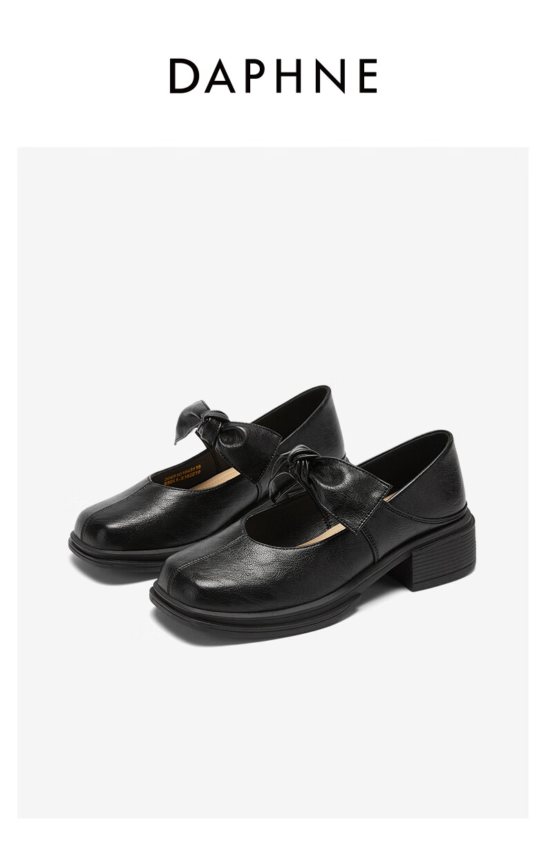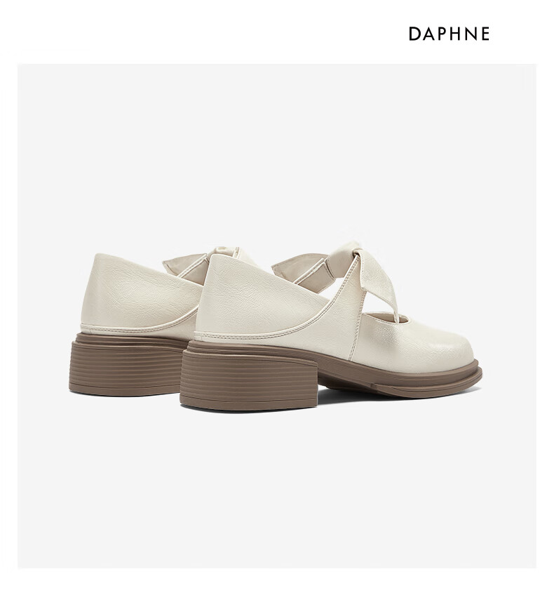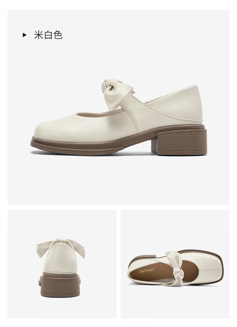 达芙妮复古玛丽珍女鞋2025新款鞋子女单鞋学院风乐福鞋厚底百搭小皮鞋JD 米白色【蝴蝶结款】 37