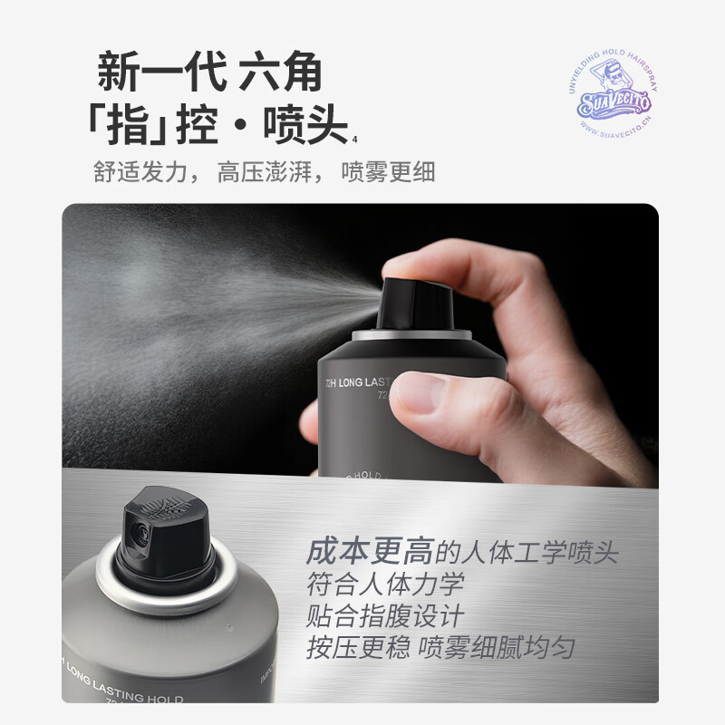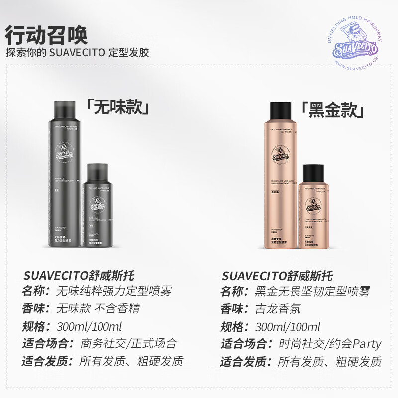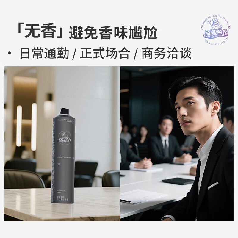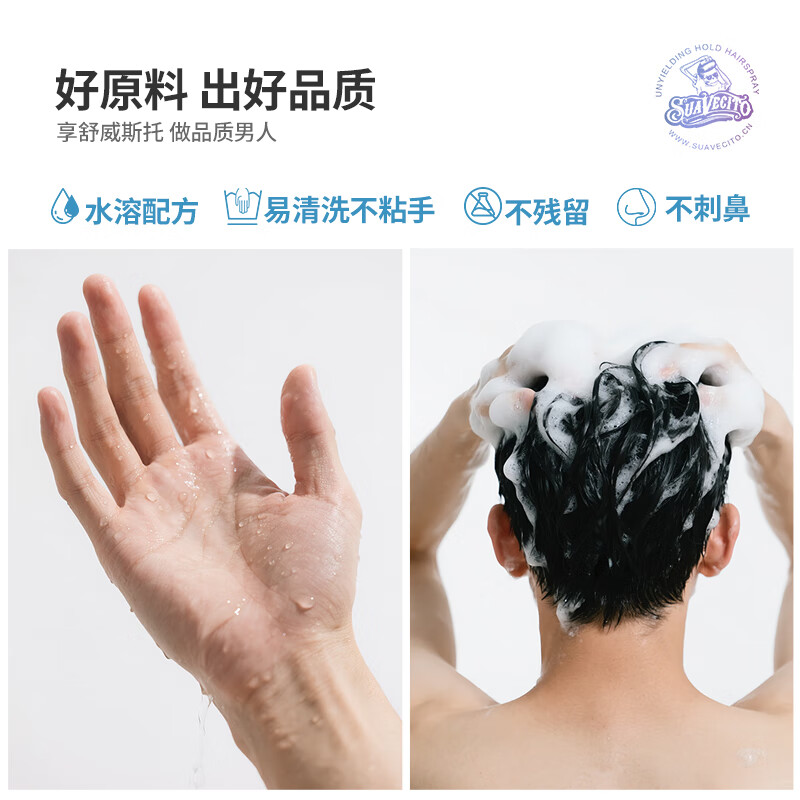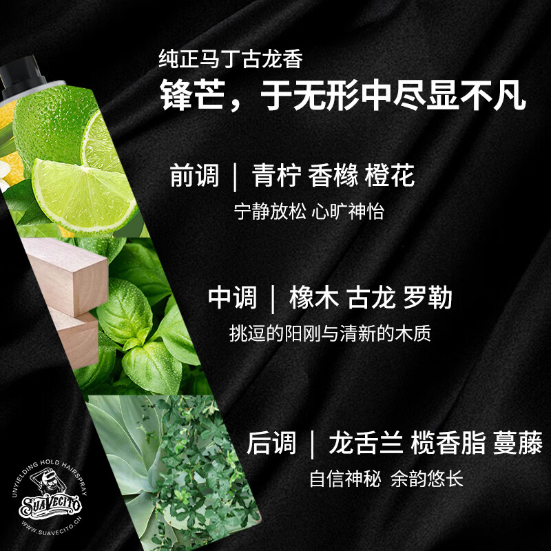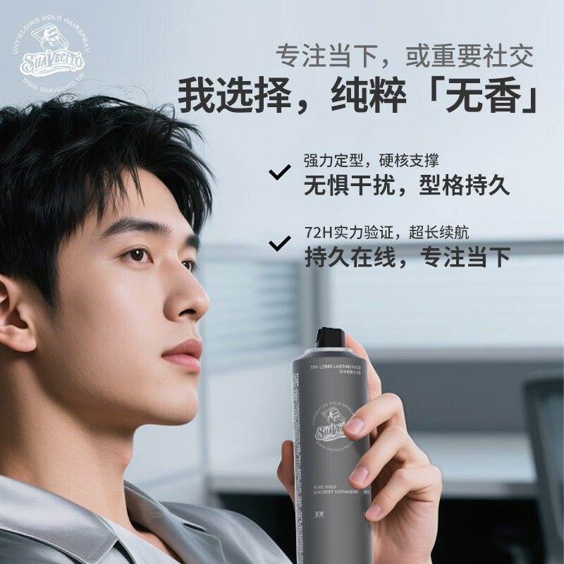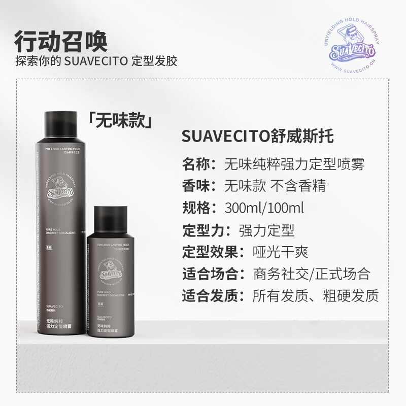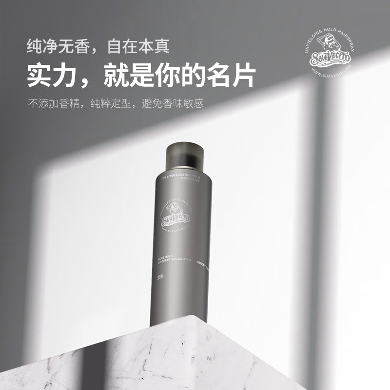 SUAVECITO舒威斯托强力定型喷雾骷髅头发胶 男士蓬松速干无味干胶持久不塌 定型喷雾【无味纯粹】300ml