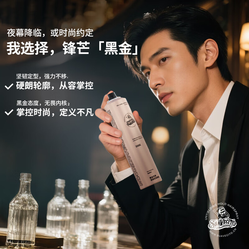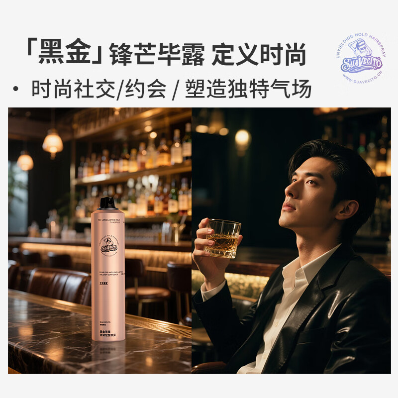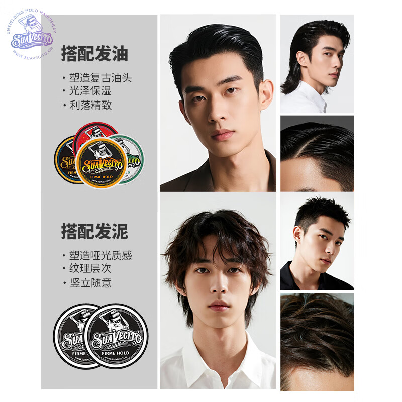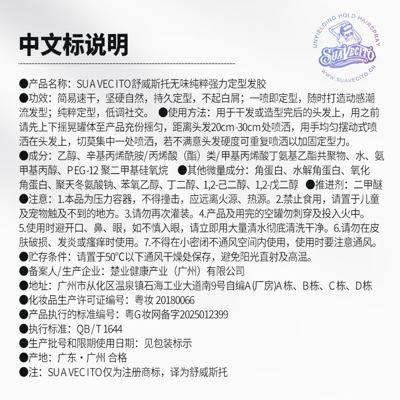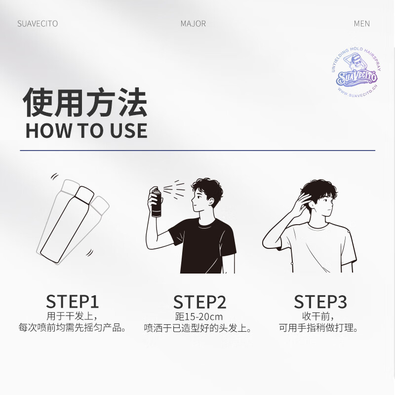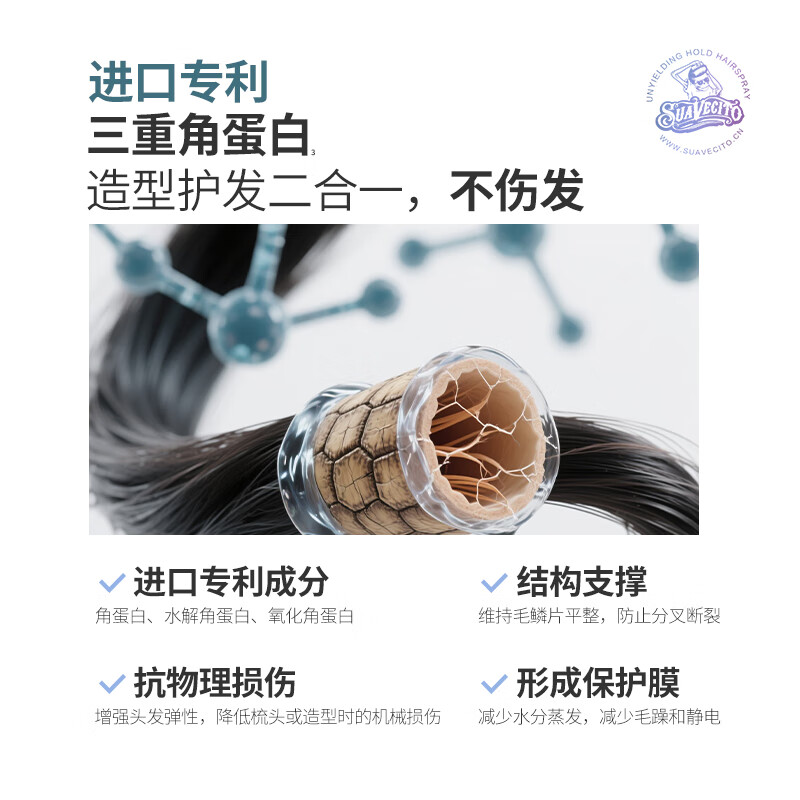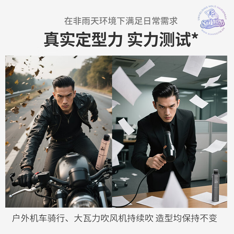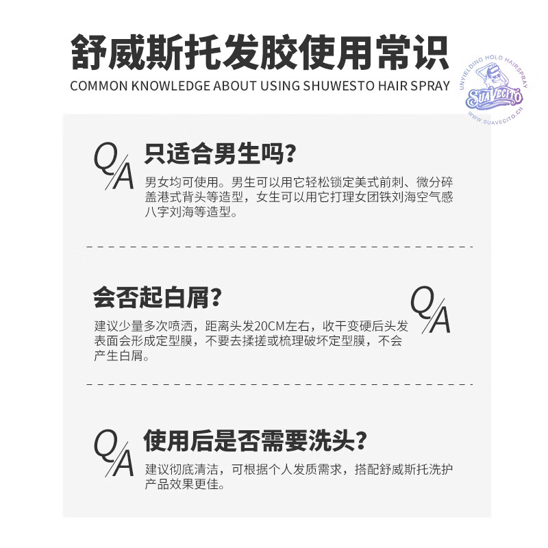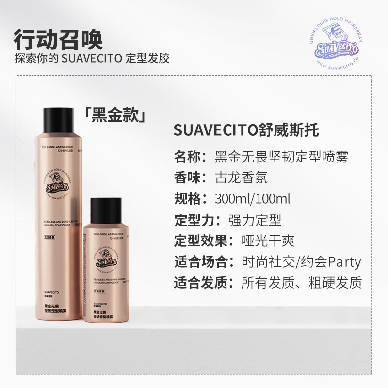 SUAVECITO舒威斯托强力定型喷雾骷髅头发胶 男士蓬松速干无味干胶持久不塌 定型喷雾【无味纯粹】300ml