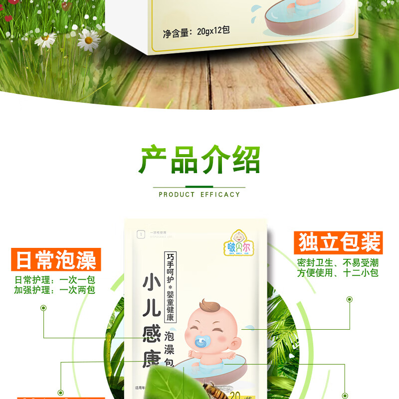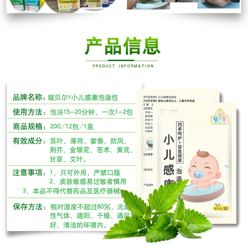 啵贝尔 儿童泡澡包 婴儿泡澡药包 小儿健体艾草药浴包草本洗澡泡浴包 感冒健体 组合套装【买2组发3组】 1盒/12包
