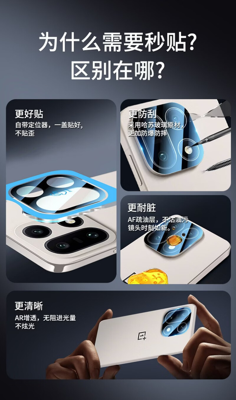 逻翼【无损像素】适用于一加15镜头膜钢化膜oppo一加15后置摄像高清防摔防刮防爆抗指纹玻璃保护贴膜 AR增透高清镜头膜【定位器 1 片装】 一加 15