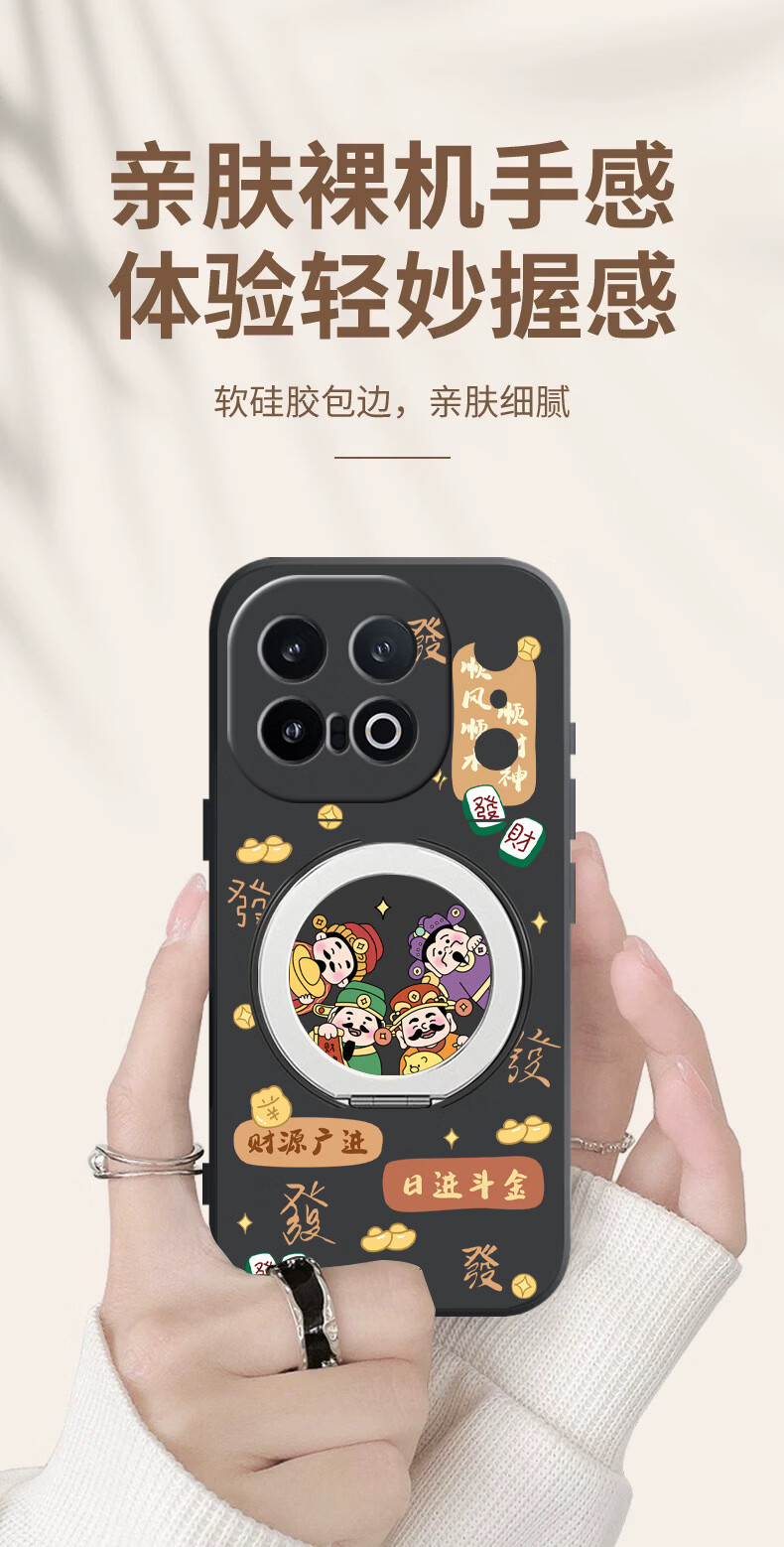 适用于iQOO15手机壳IQOO15保护套IQOO15男女款外壳支架卡通创意 【经典黑】顺财神+旋转支架 IQOO15
