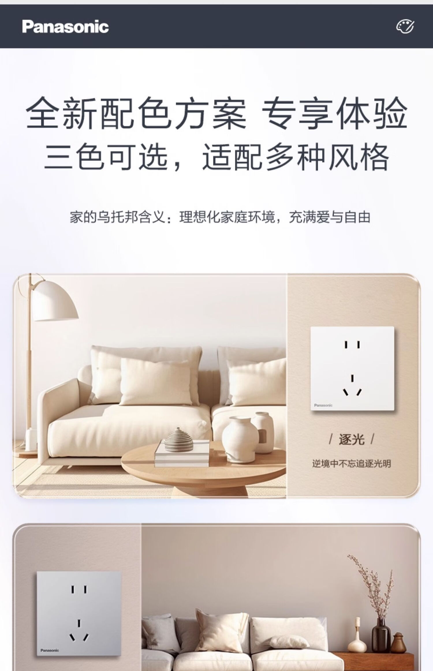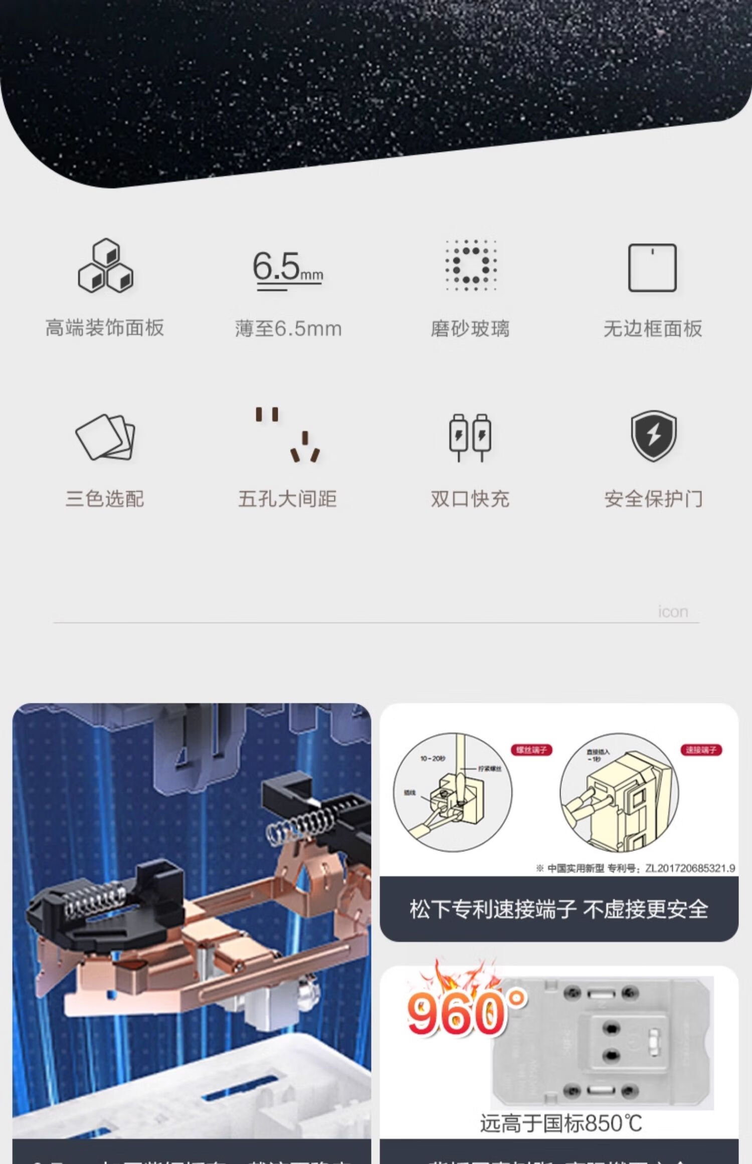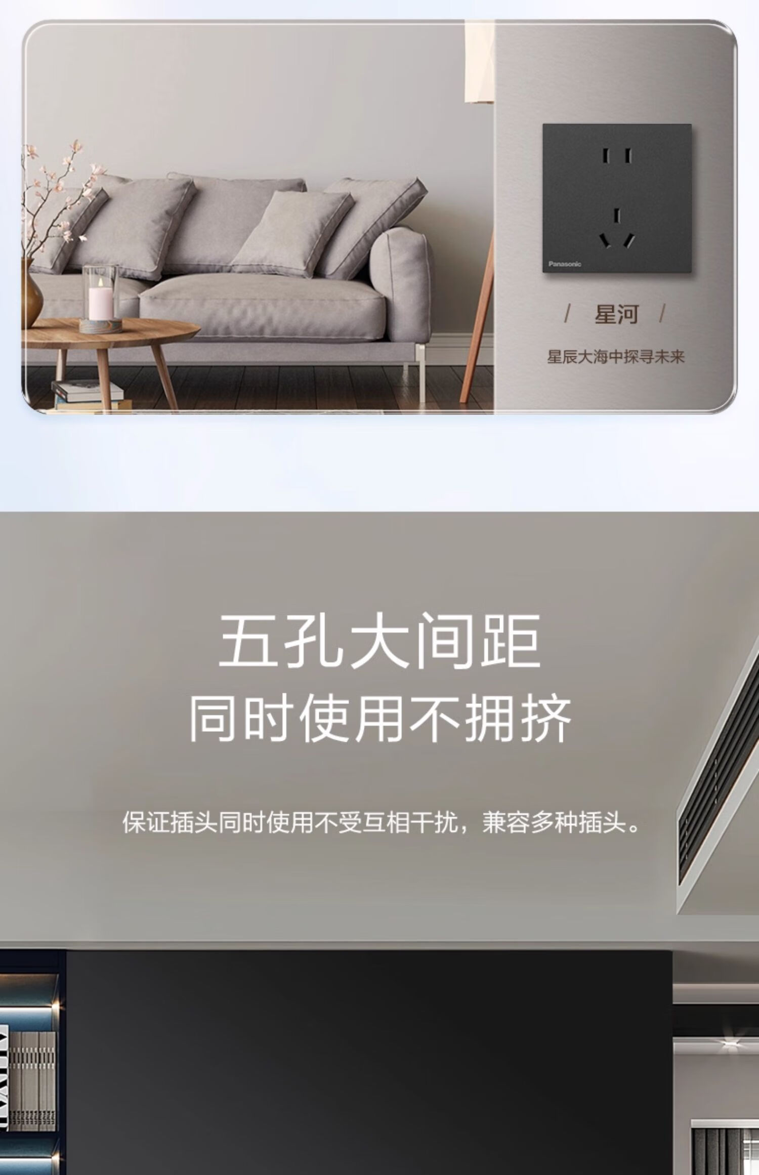 松下开关插座焕境pro逐光白色磨砂玻璃面板6.5mm纤薄 正五孔插座WMSA122 插座