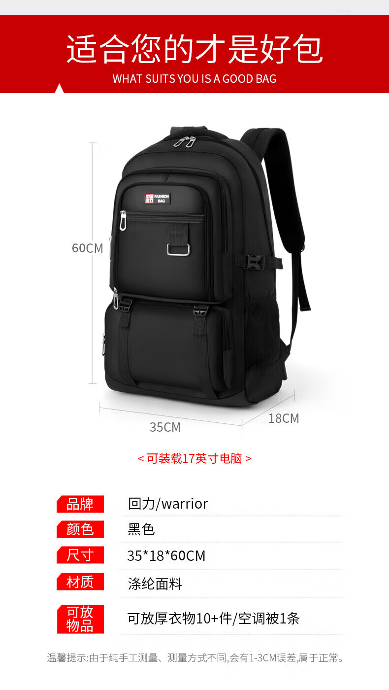 回力背包男大容量双肩包户外登山包时尚旅行包商务短途出差行李包书包