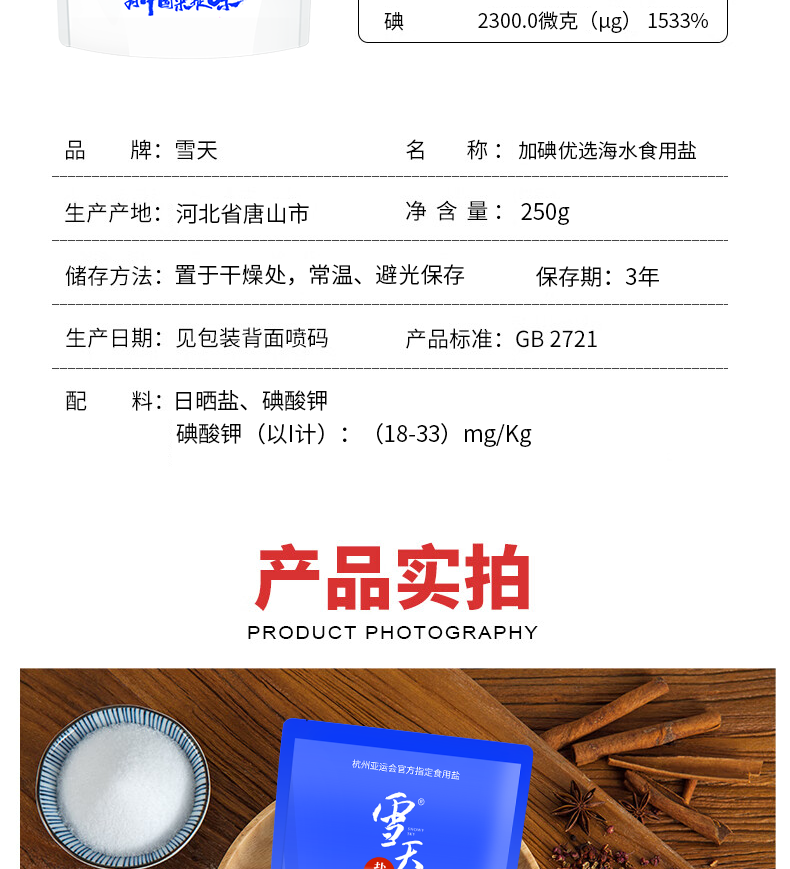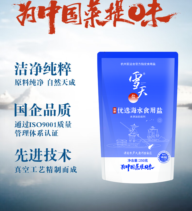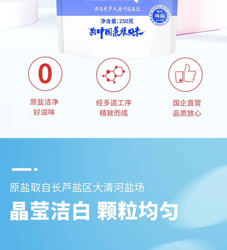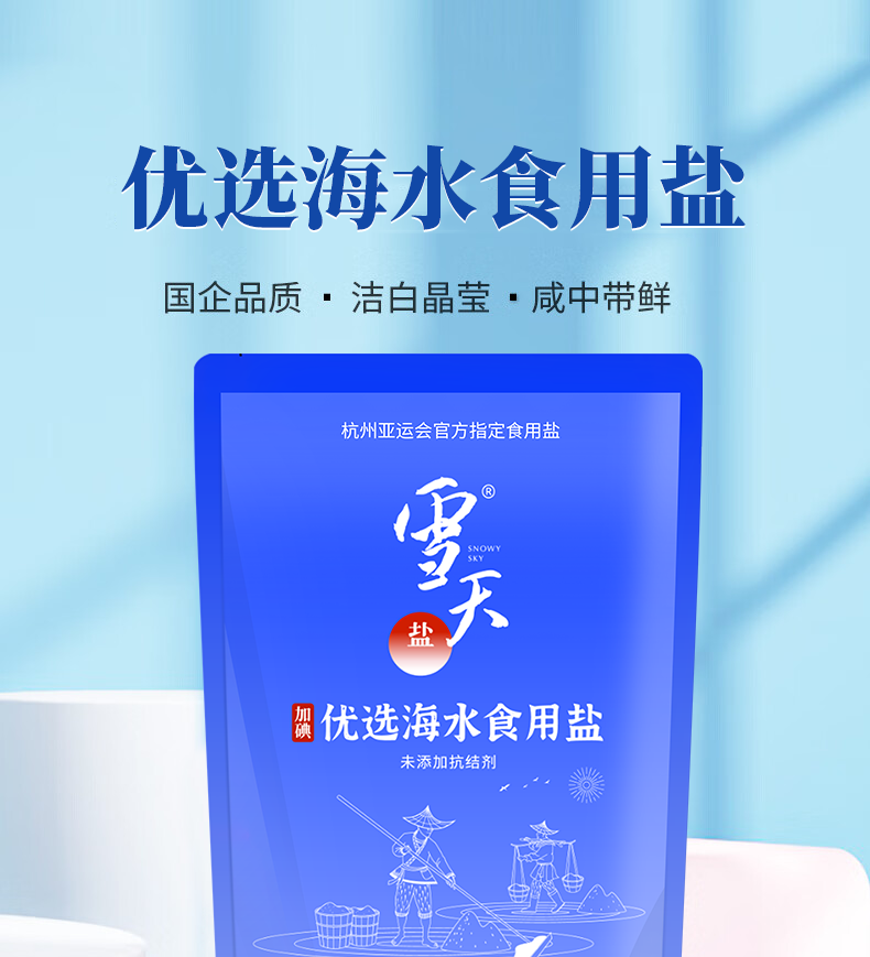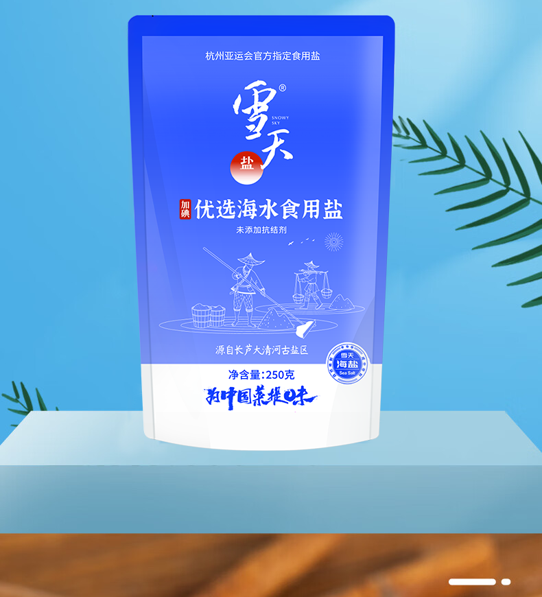 雪天盐雪天优选海水食用盐250g*10袋食用盐炒菜调料盐调味品 优选海水食用盐250g*10袋【加碘】