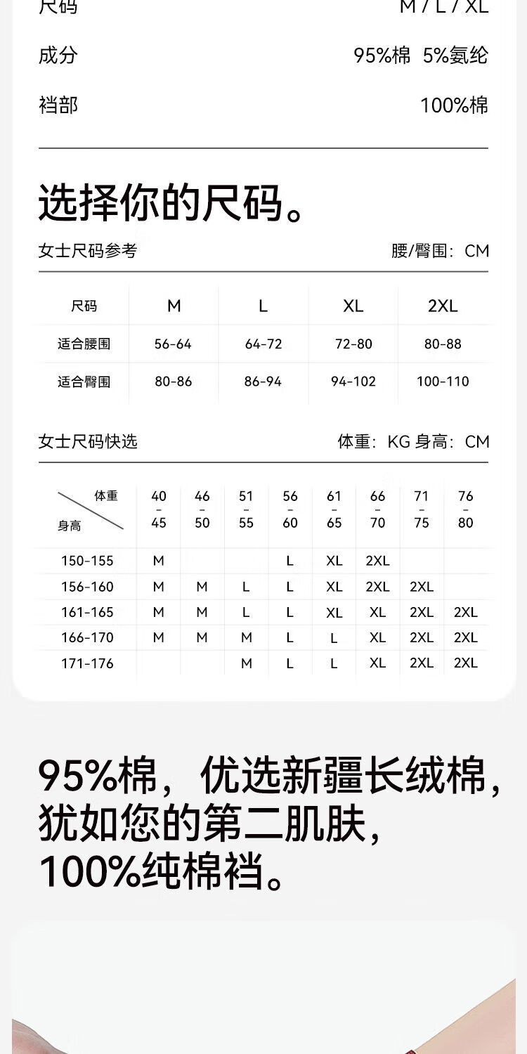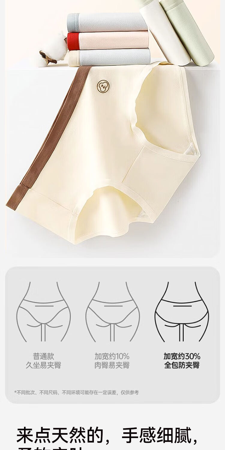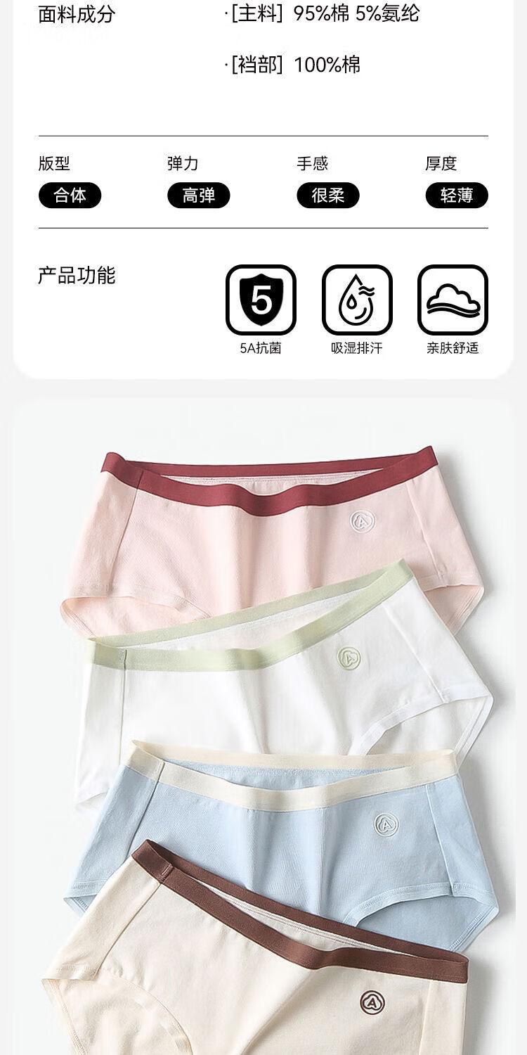 宜而爽女士内裤女精梳棉柔软舒适透气无痕中腰抑菌底裆三角裤头 立体滴胶6条 6条 XL