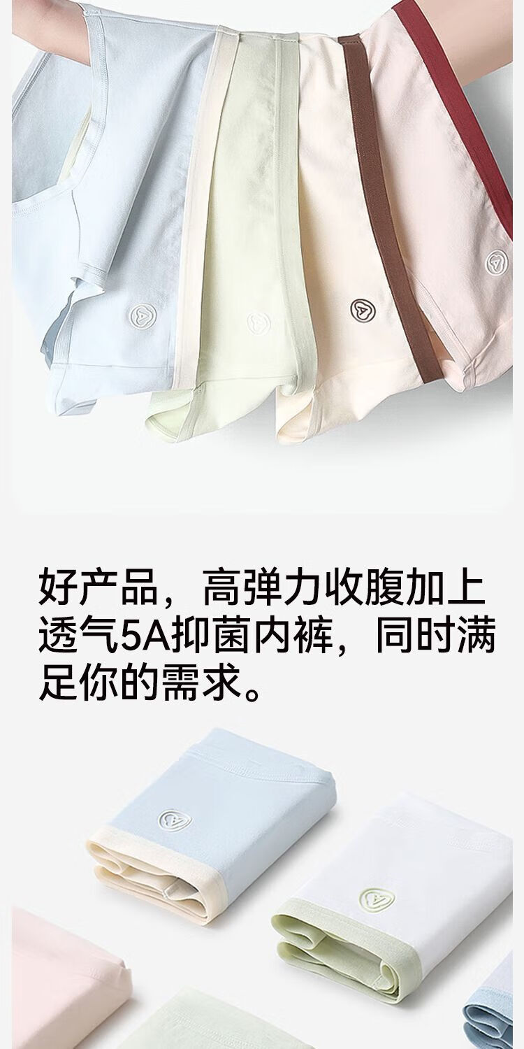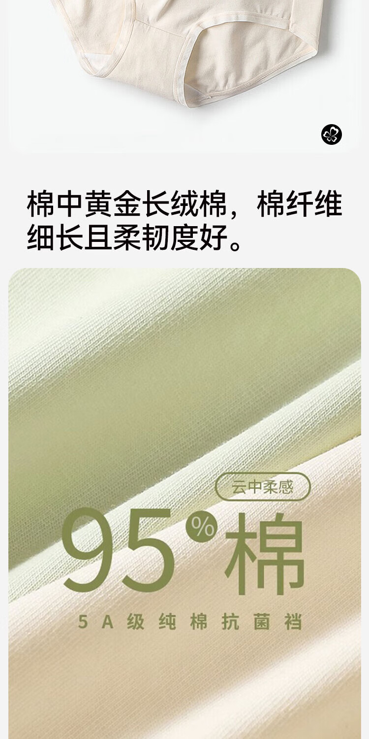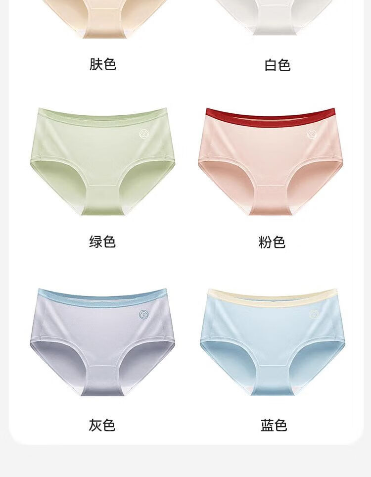 宜而爽纯棉女士内裤新款透气少女三角提臀式抗菌底裤头女生 2绿色+2蓝色+2灰色+1白色 7条 L (95-120斤)