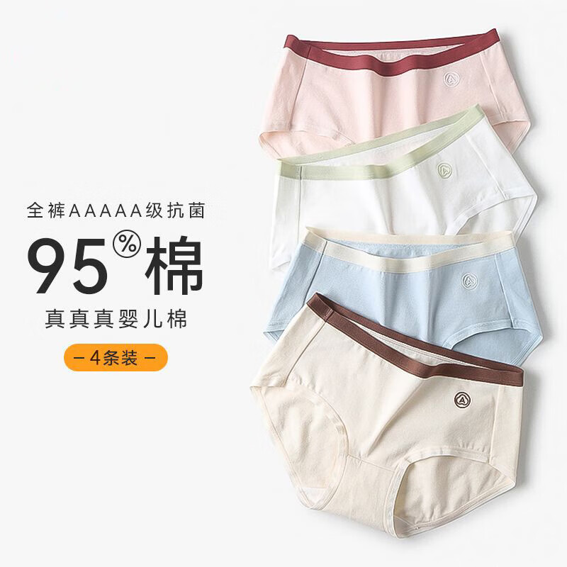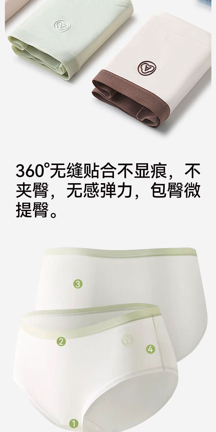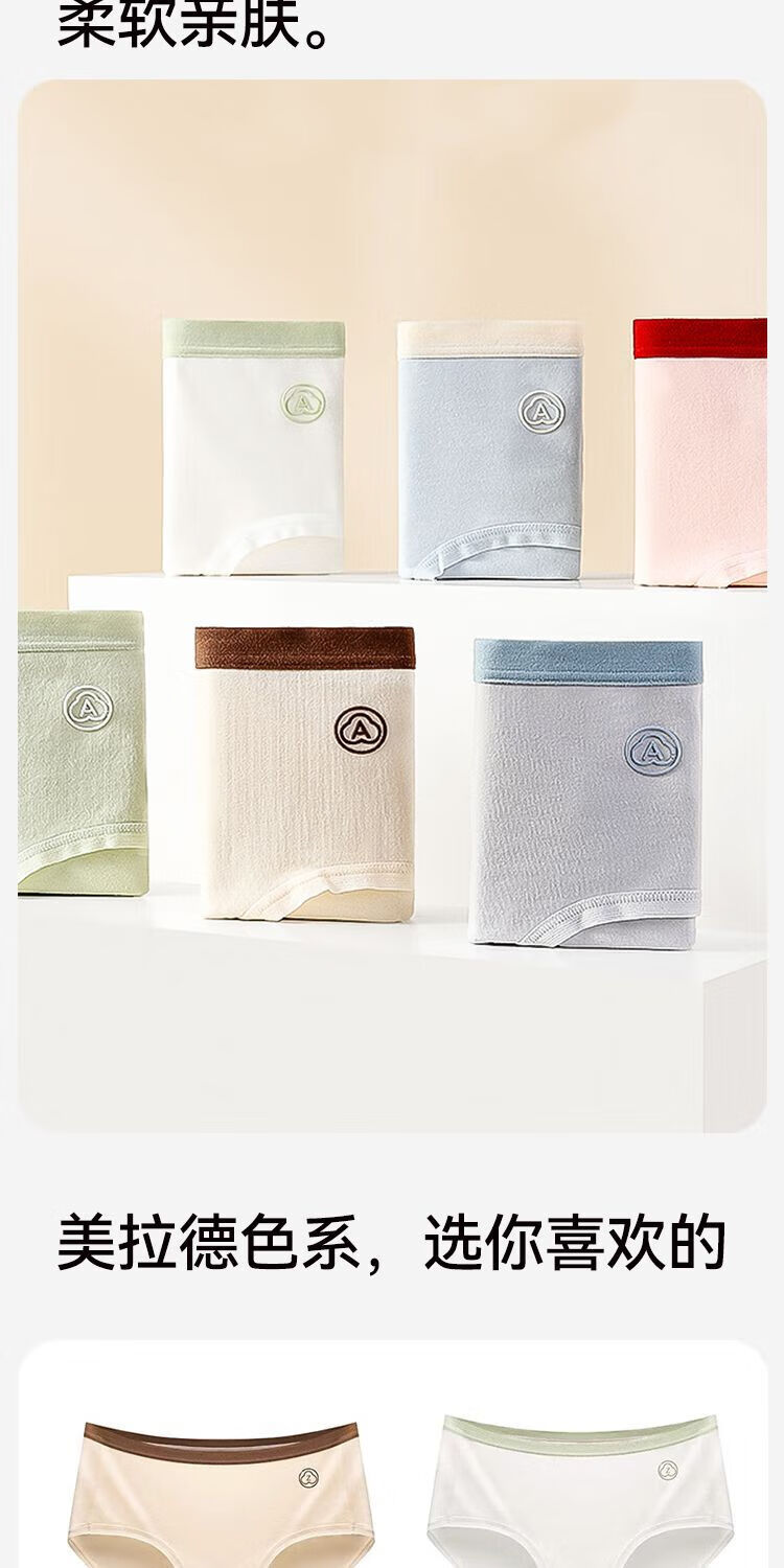 都市丽人女士内裤女全纯棉A类抗菌女士内裤无痕内裤女生三角裤头少女裤衩 奶咖+绿色+蓝色 均码 (建议70-115斤)