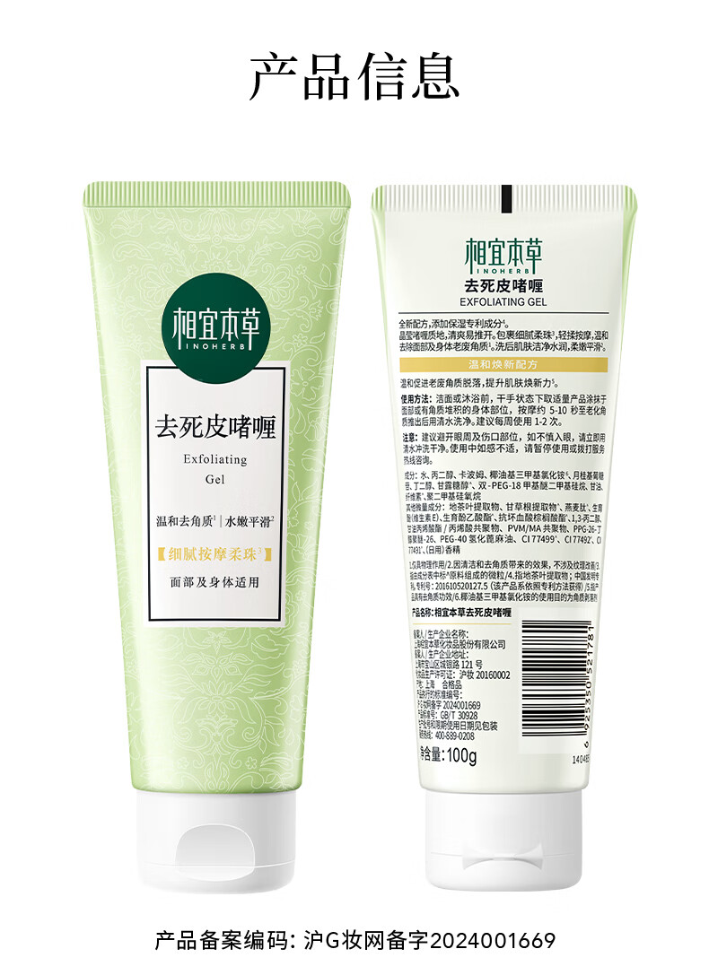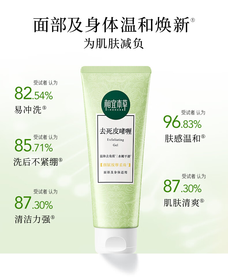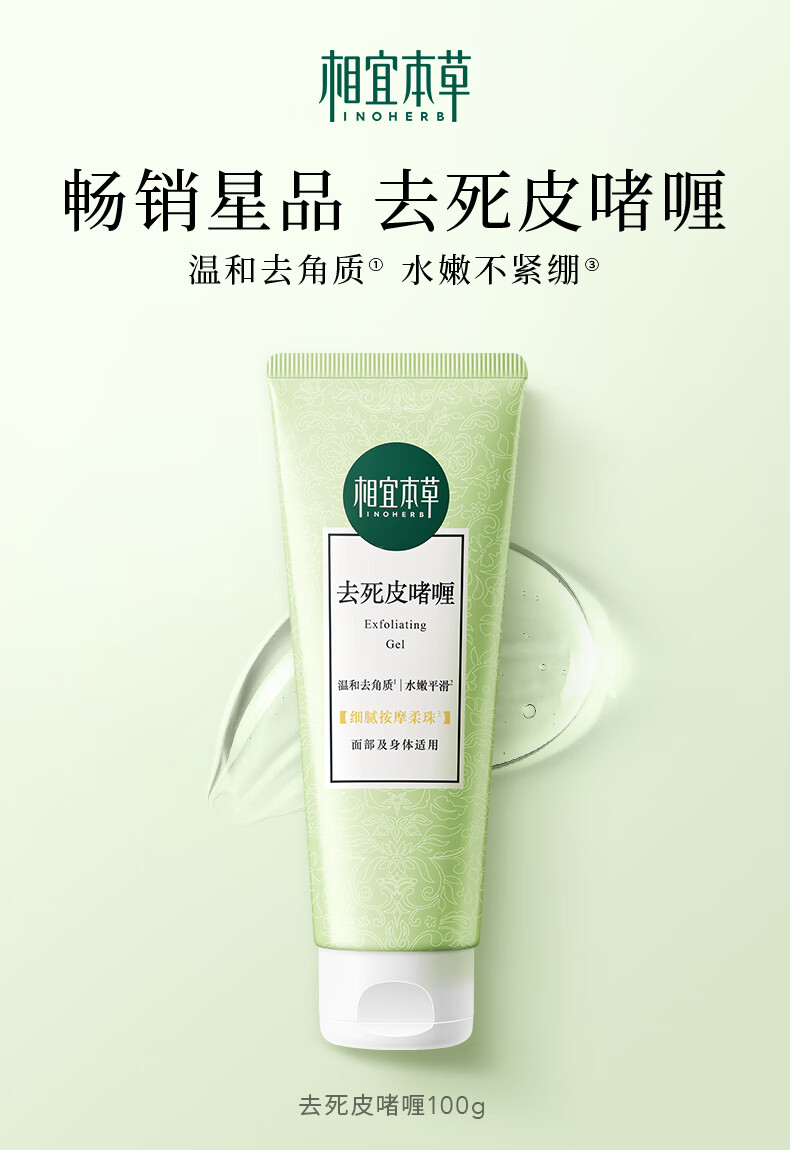 相宜本草去死皮啫喱100g大规格 去角质不紧绷洗面奶身体适用