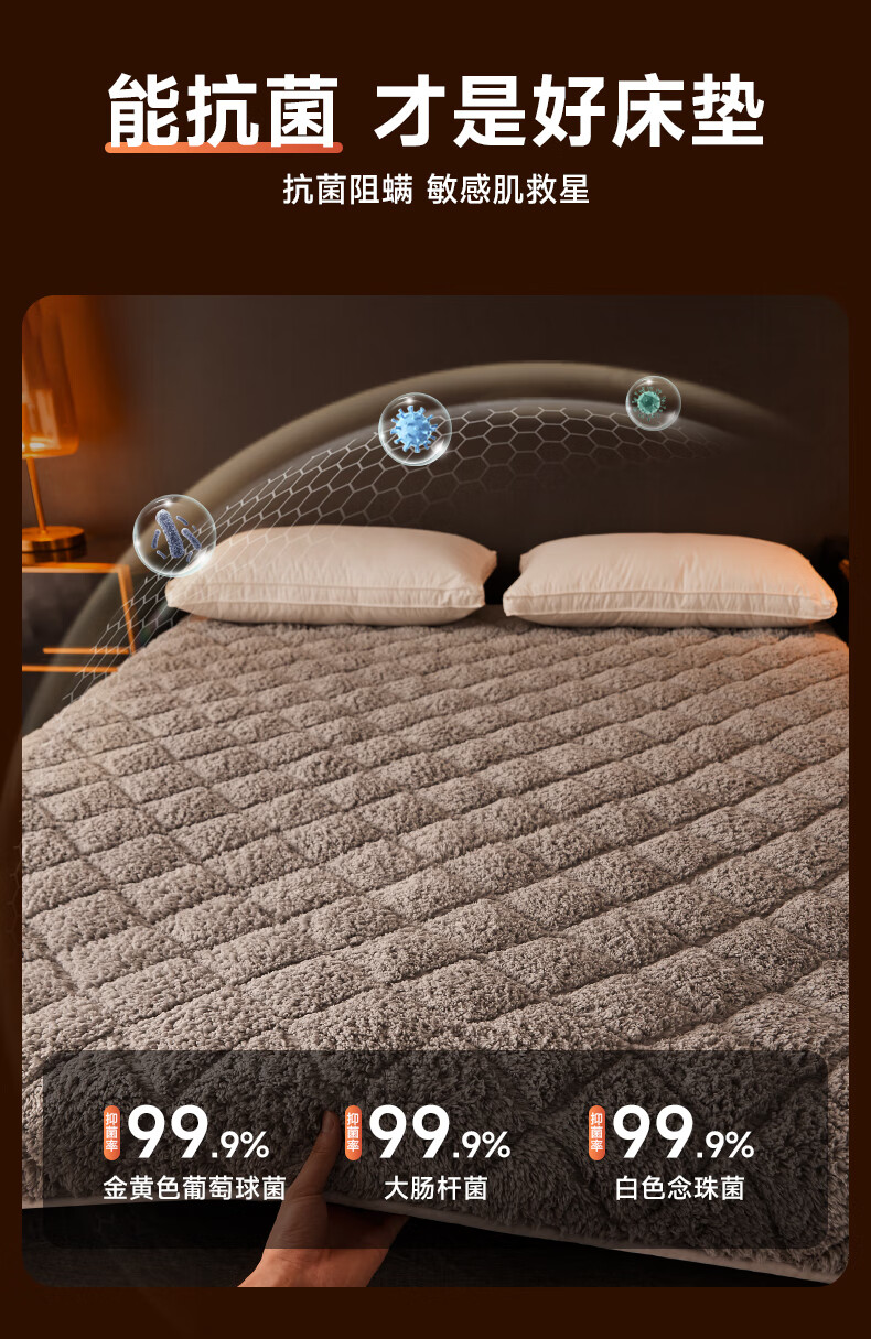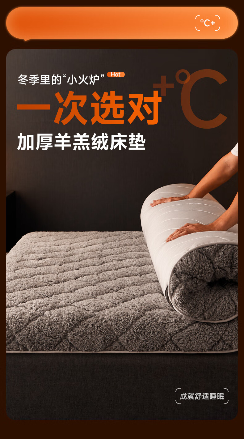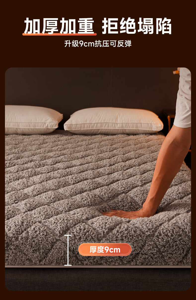 朵亚之星冬季羊羔绒床褥垫床垫家用加厚保暖褥子垫被1.5x1.8x2米 灰色【厚约6cm】 90x190cm