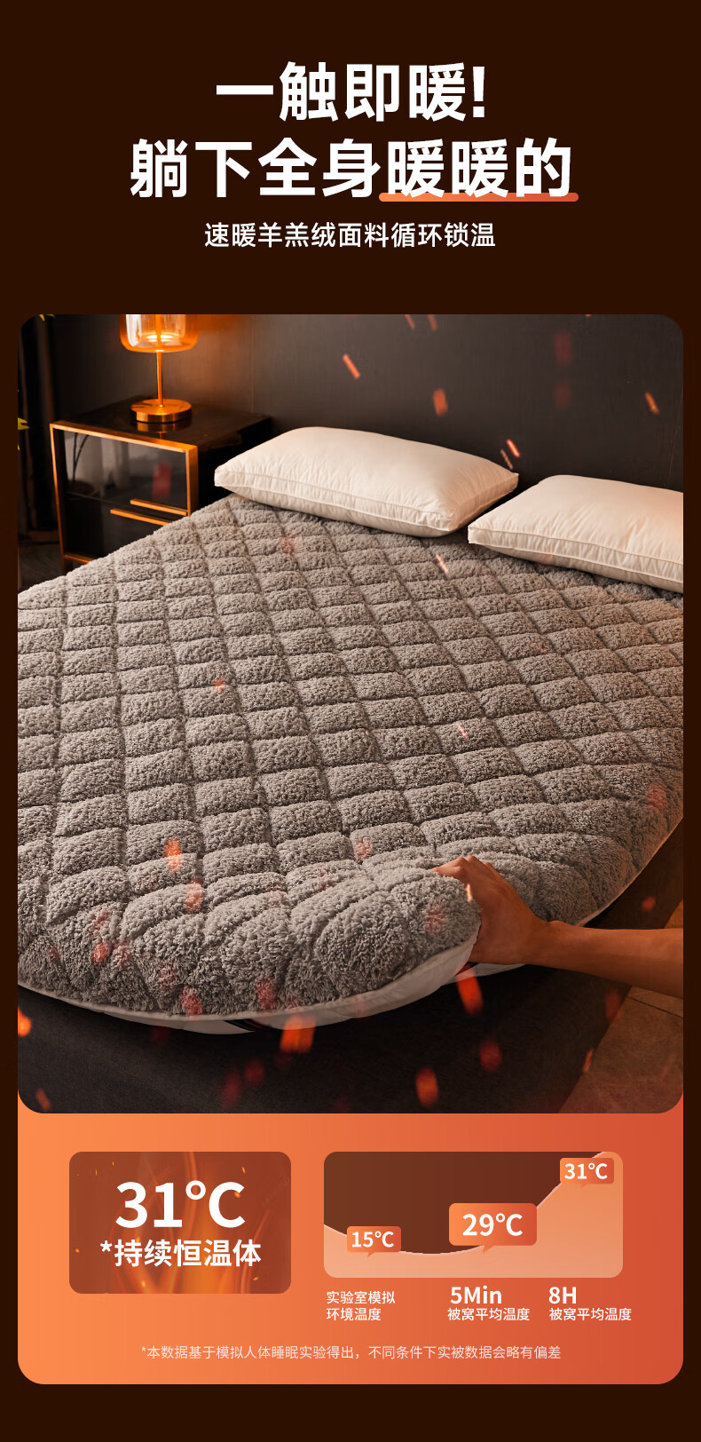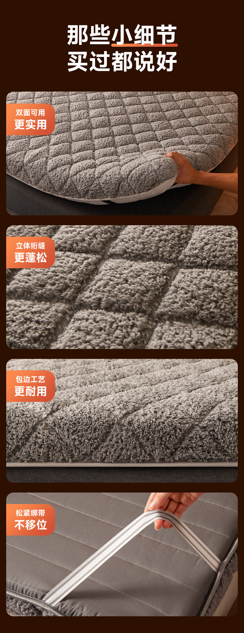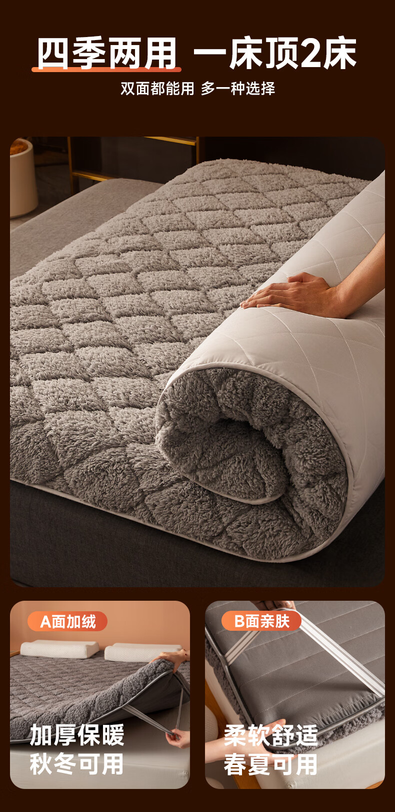 朵亚之星冬季羊羔绒床褥垫床垫家用加厚保暖褥子垫被1.5x1.8x2米 灰色【厚约6cm】 90x190cm