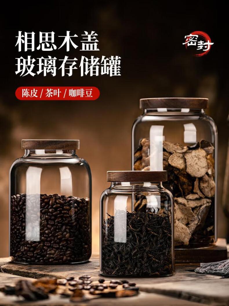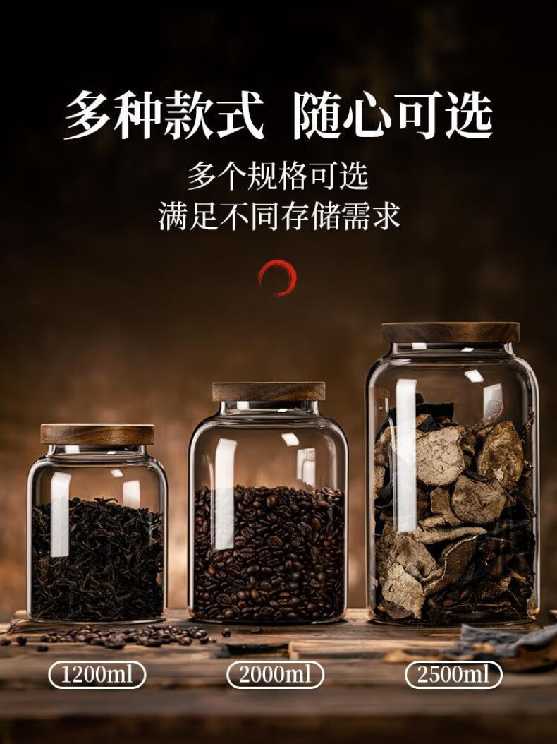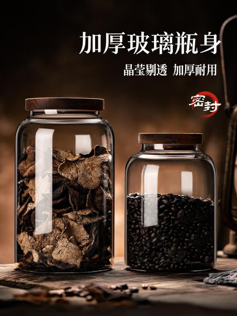 DEATKN德国玻璃茶叶罐密封防潮储存罐精品茶罐收纳盒大号感储物罐子 【强化加厚】密封罐(大口径) 1200ml