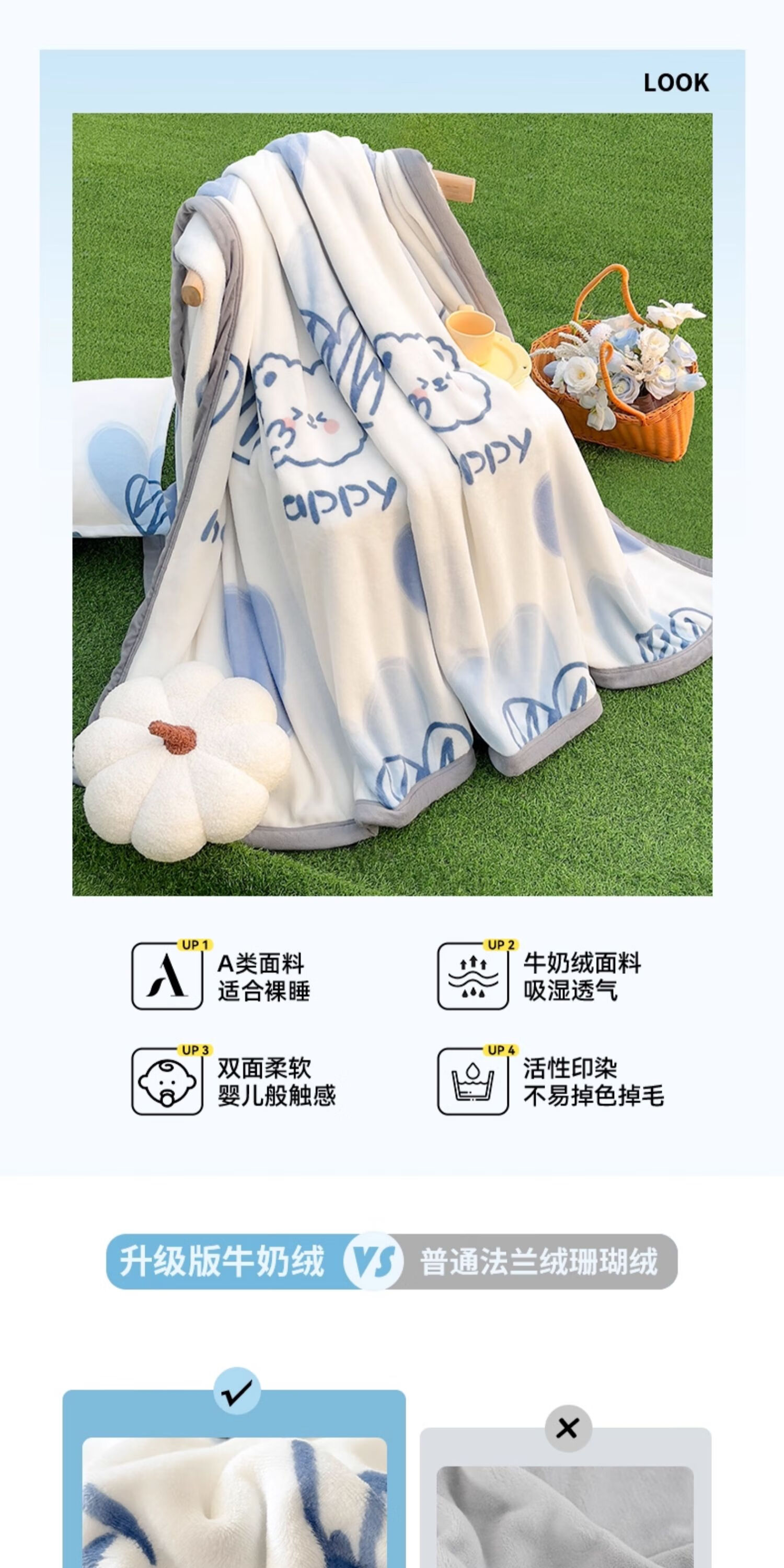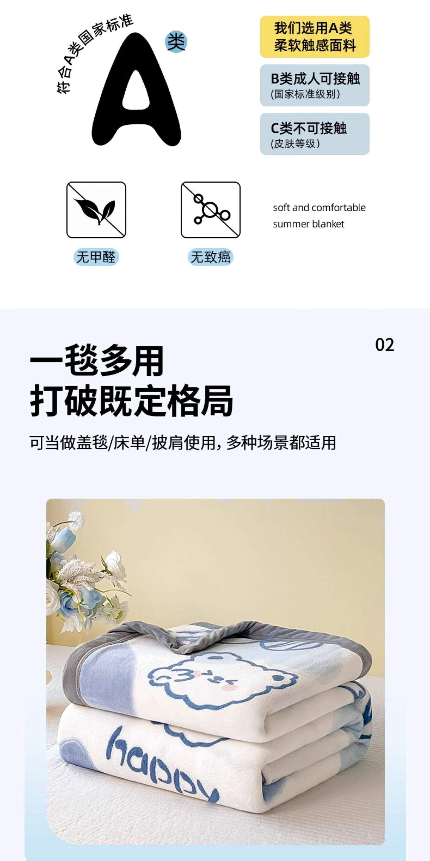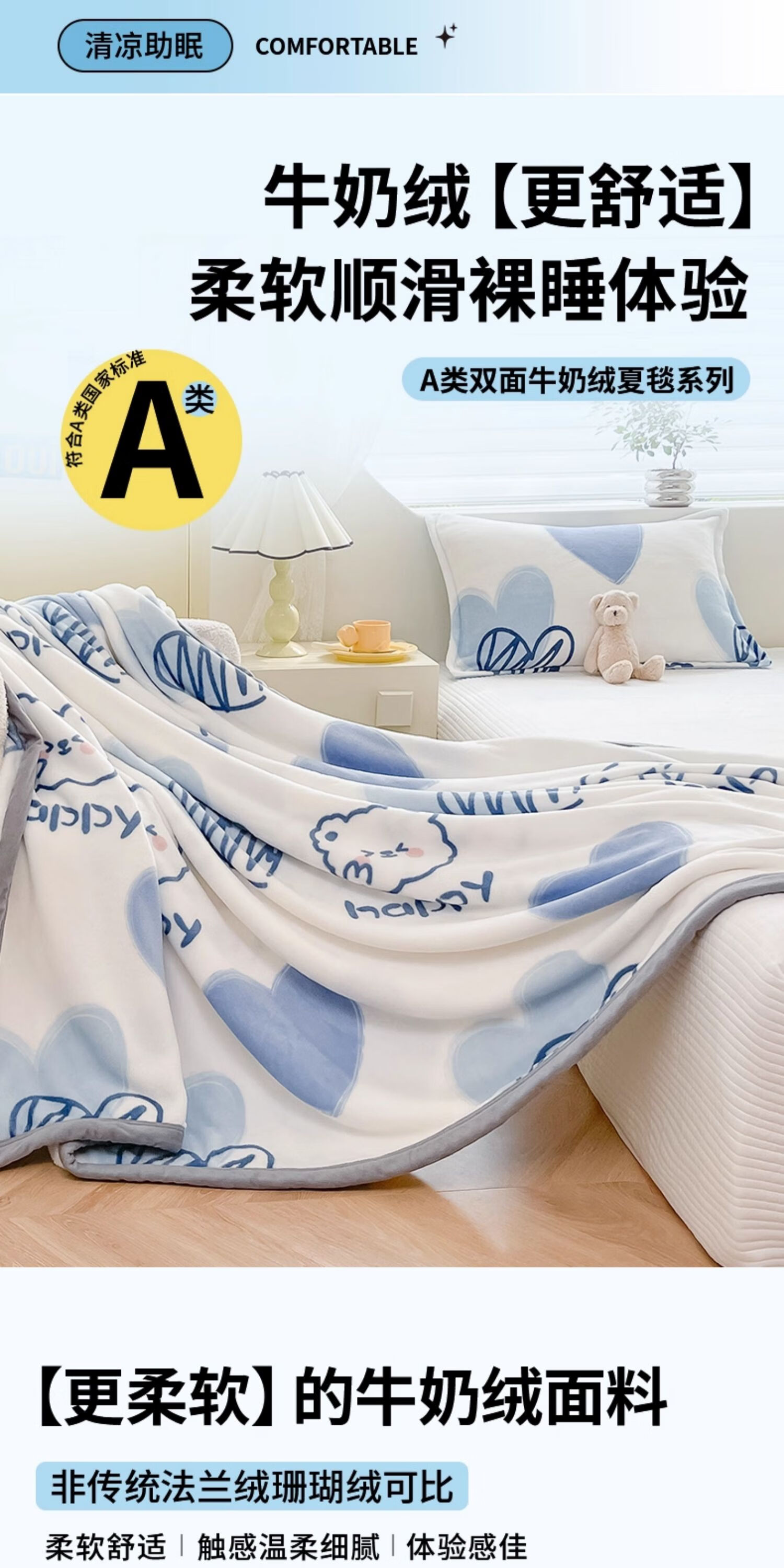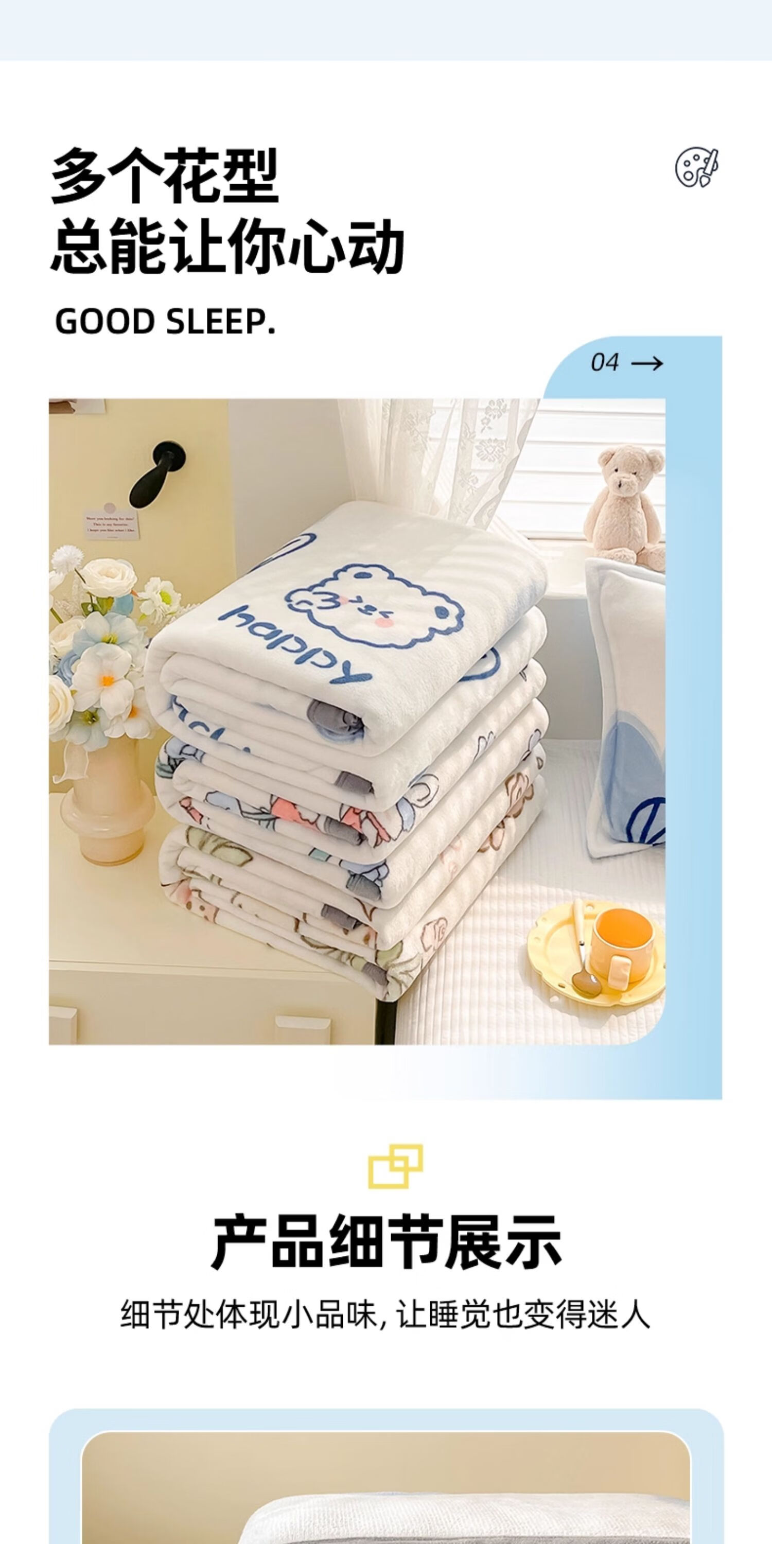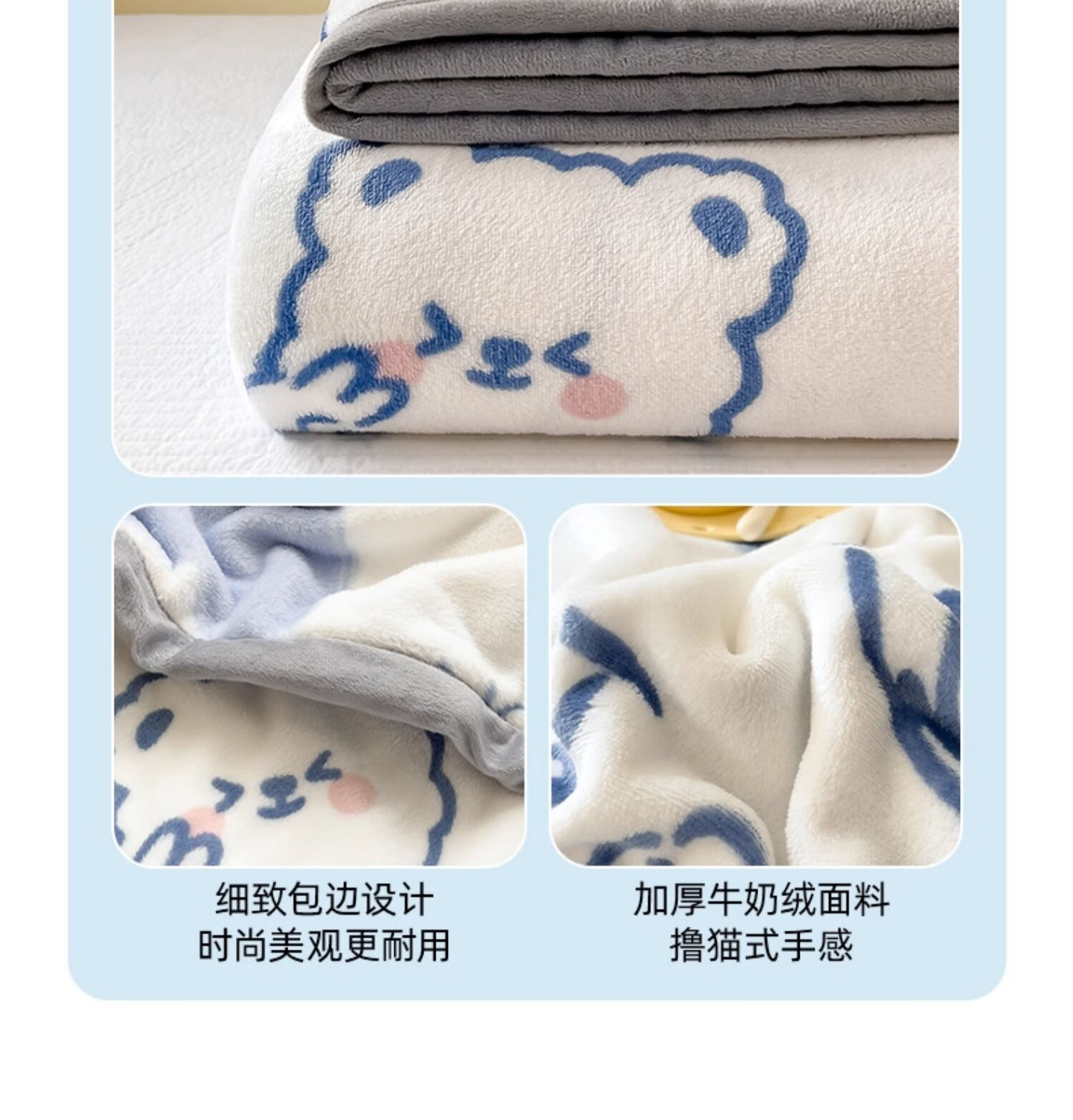 高睿牛奶绒双面毛毯办公室披肩小毯子儿童午睡毯珊瑚绒空调沙发毯盖毯 比耶爱心熊 1.0x1.5m/加大单人毯