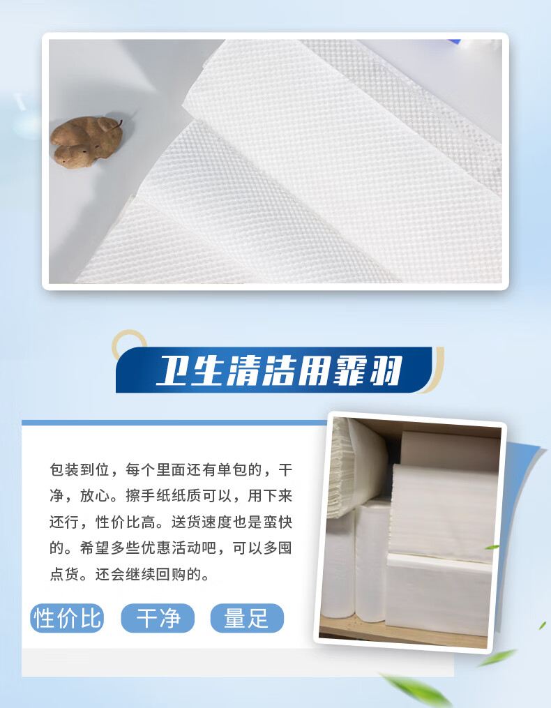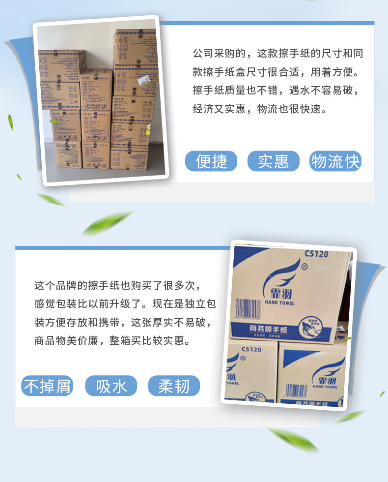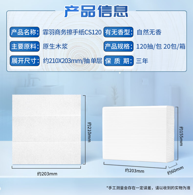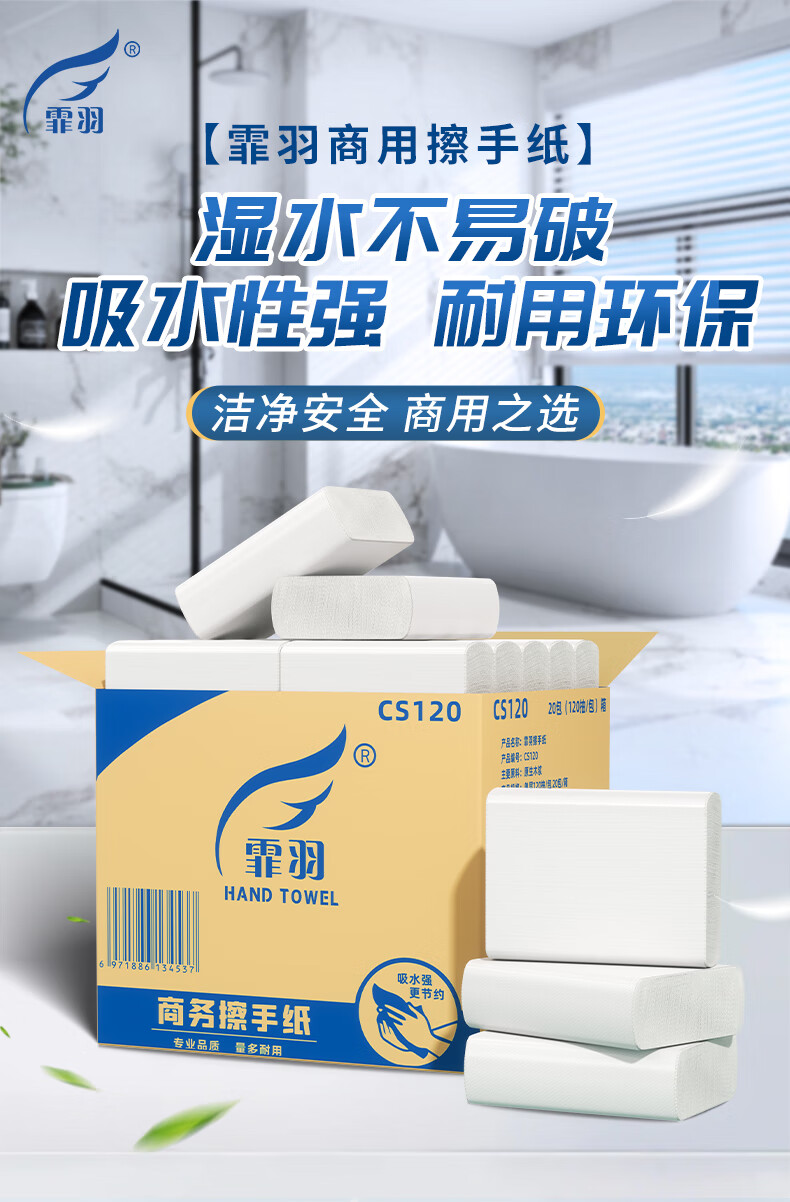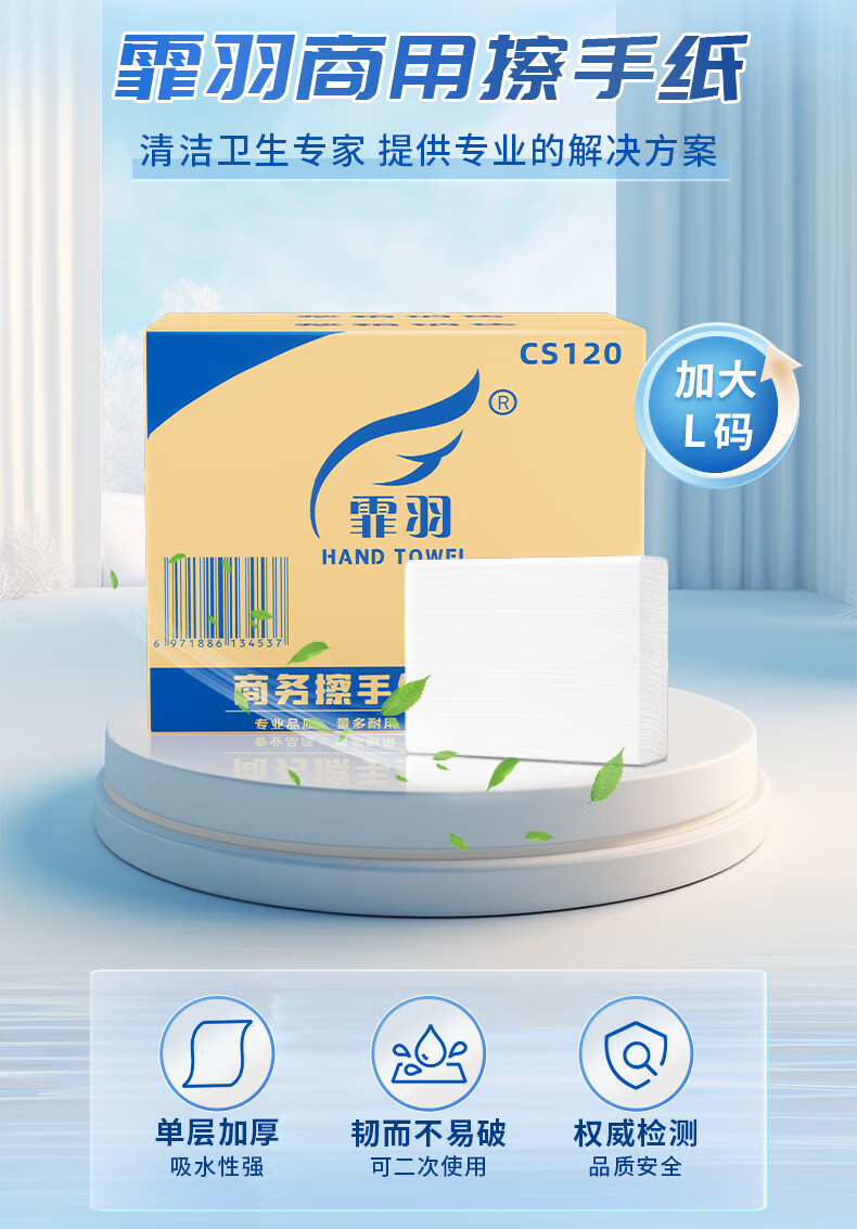 霏羽商用商务擦手纸 1层120抽*20包L码吸水吸油整箱干手抹手纸CS120