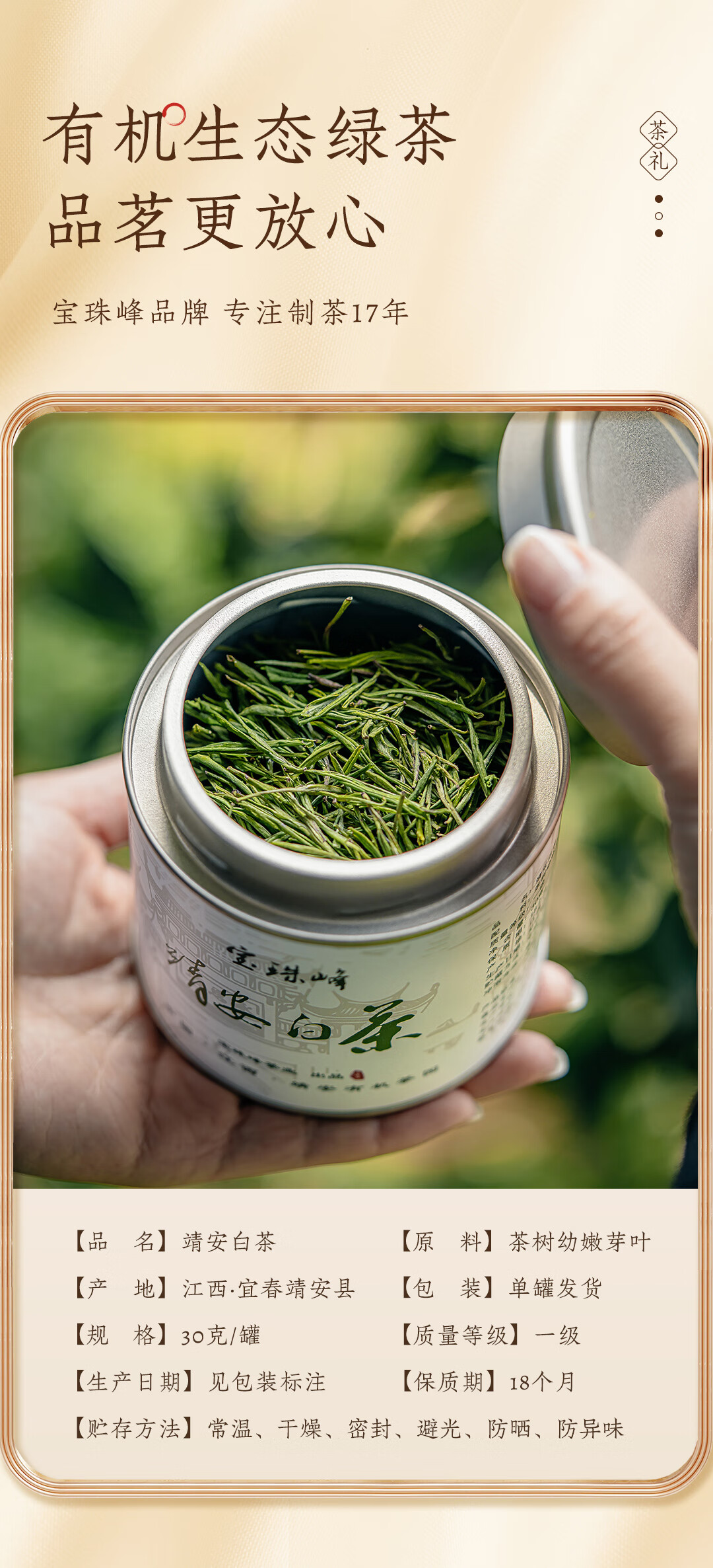 宝珠峰白茶茶叶明前绿茶自饮小罐装茶2025新茶精选嫩芽京东自营小包装自己喝