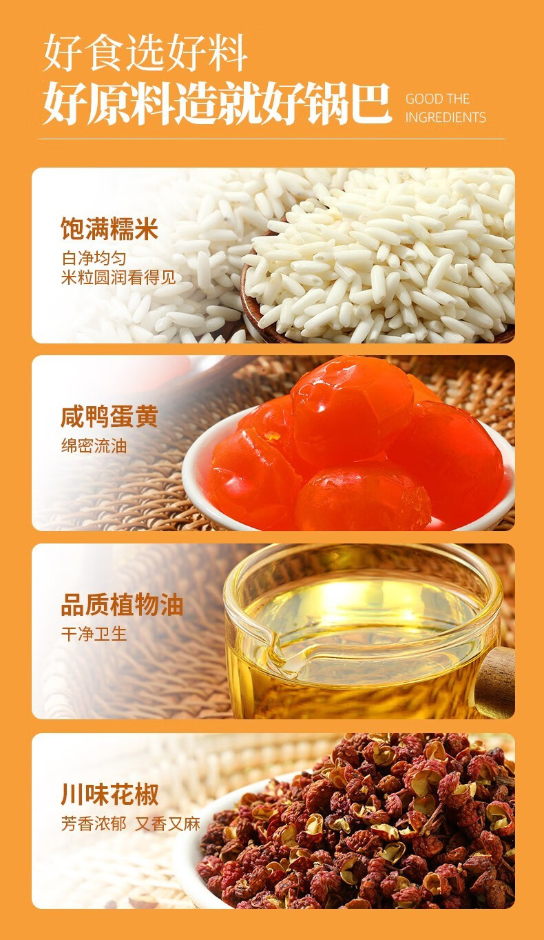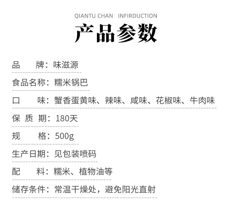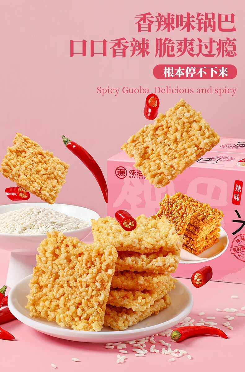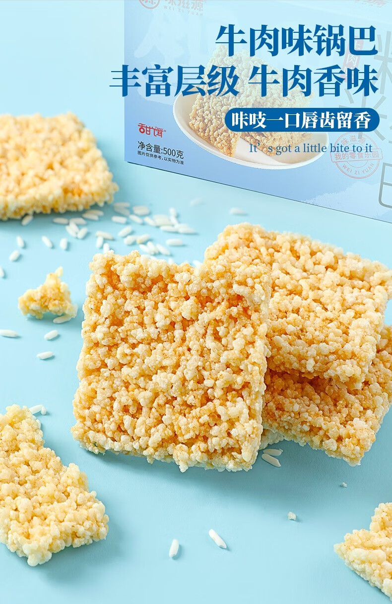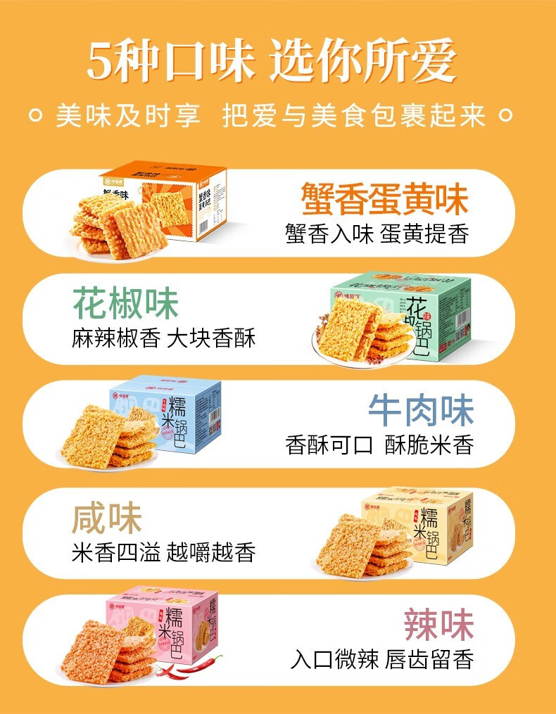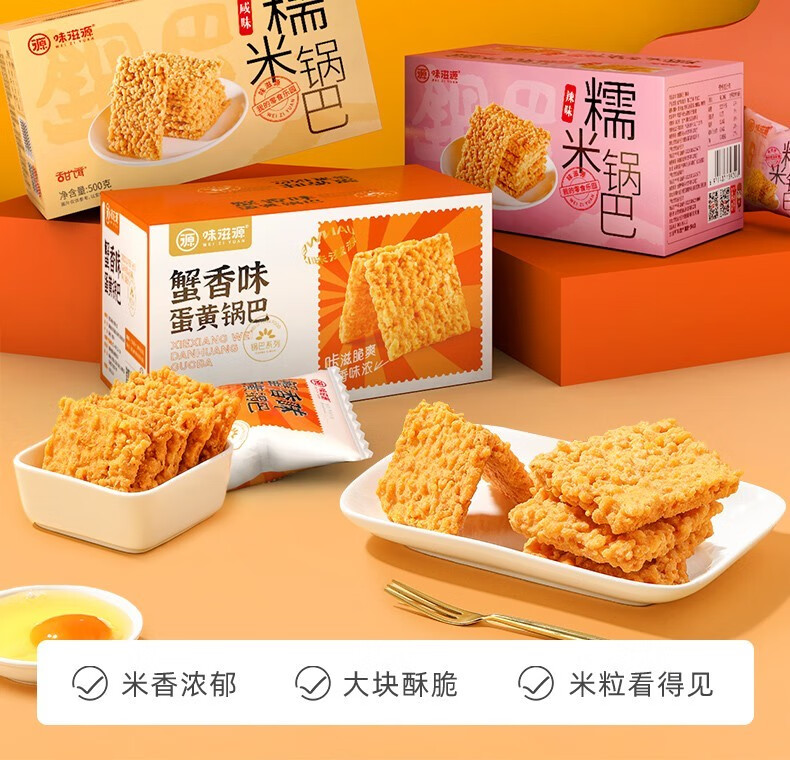 味滋源糯米锅巴 香辣蟹香味糯米手工烘烤膨化休闲零食品 糯米锅巴 咸香味500g 1件