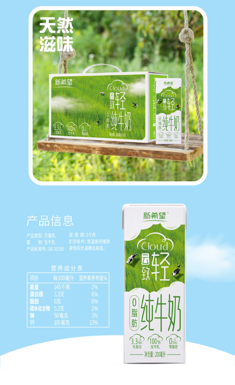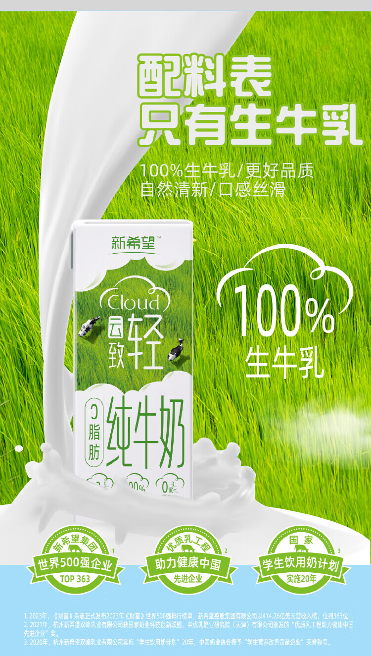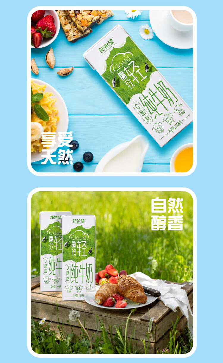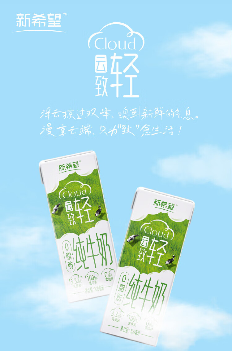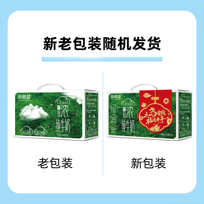 新希望云致浓高钙/云致轻0脂纯牛奶200ml/10盒12月中产生牛乳学生早餐奶 云致浓高钙纯牛奶10盒*5提