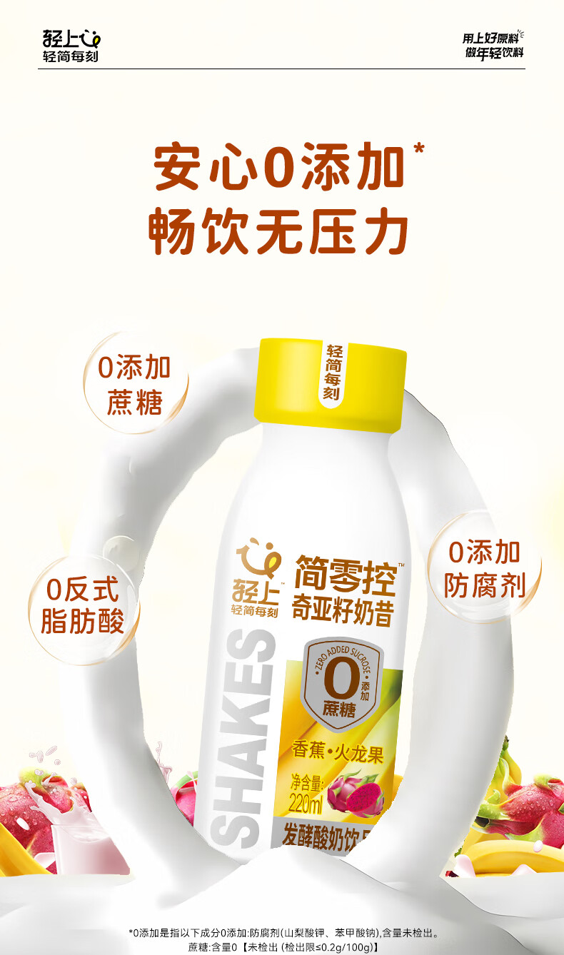 轻上饱腹代餐香蕉火龙果奶昔牛油果酸奶饮品早餐饮料饮品年货送礼 【原味】0糖生椰220ml*10瓶 【支持单瓶试喝】