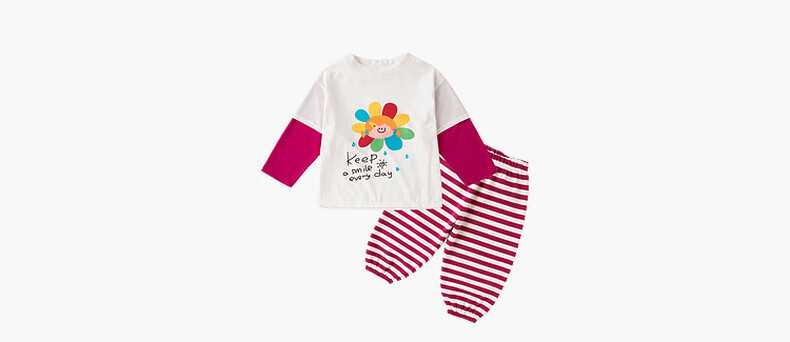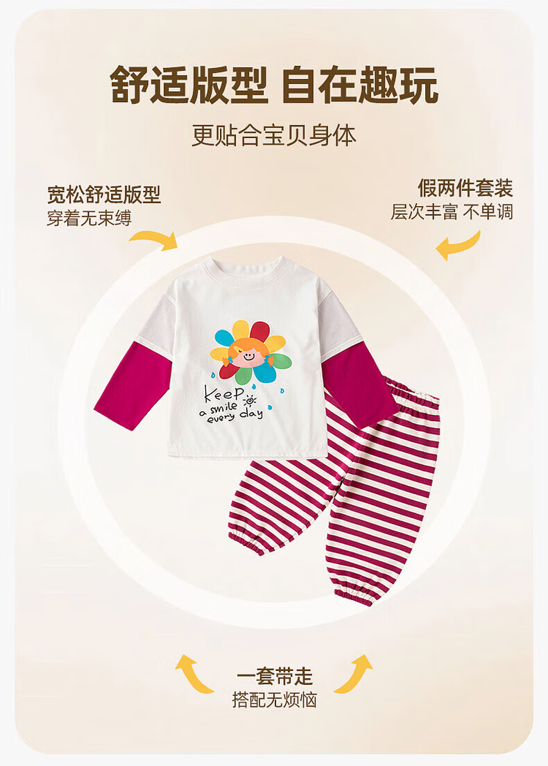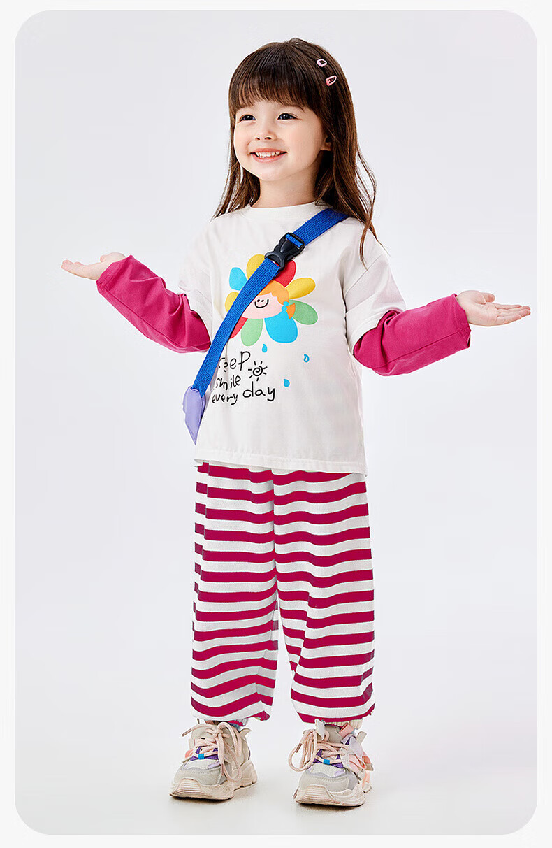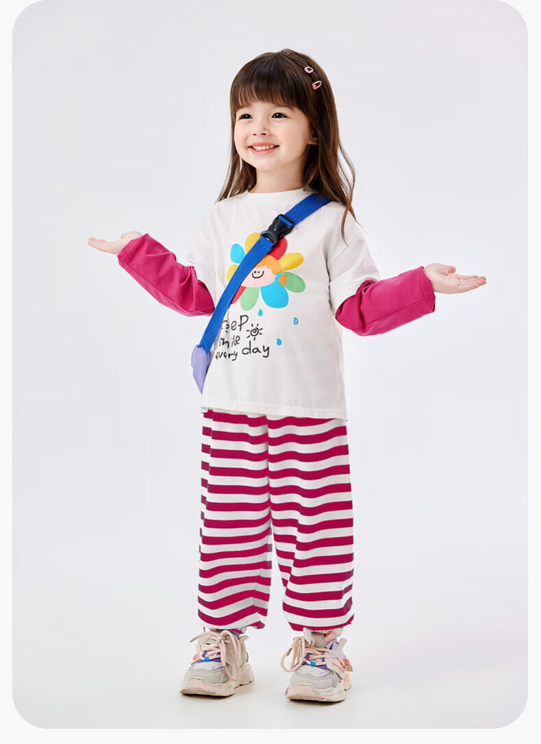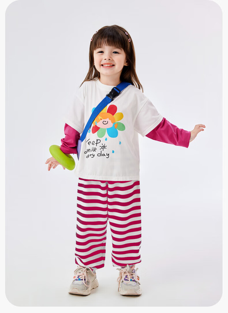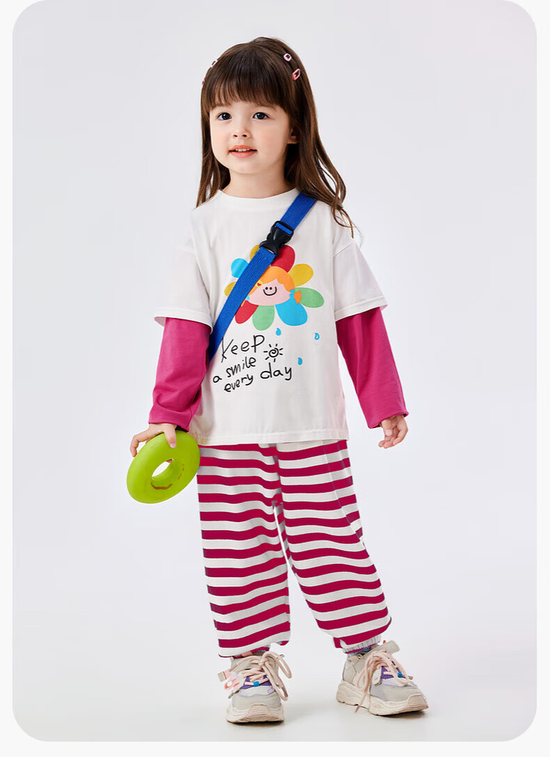 嘟嘟家女童长袖套装春装女小童秋款可爱假两件T恤女宝宝休闲条纹裤子潮 藏青色 90