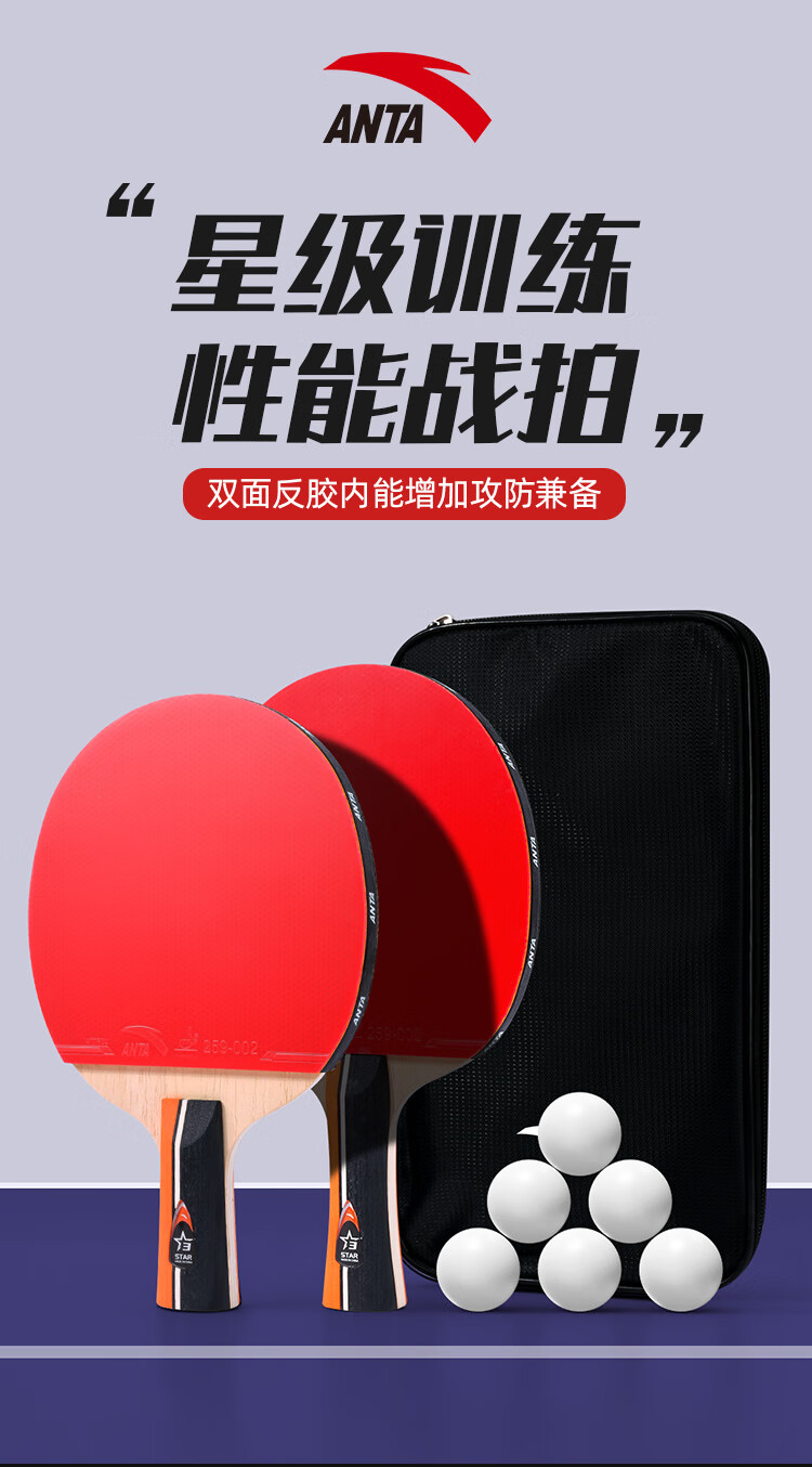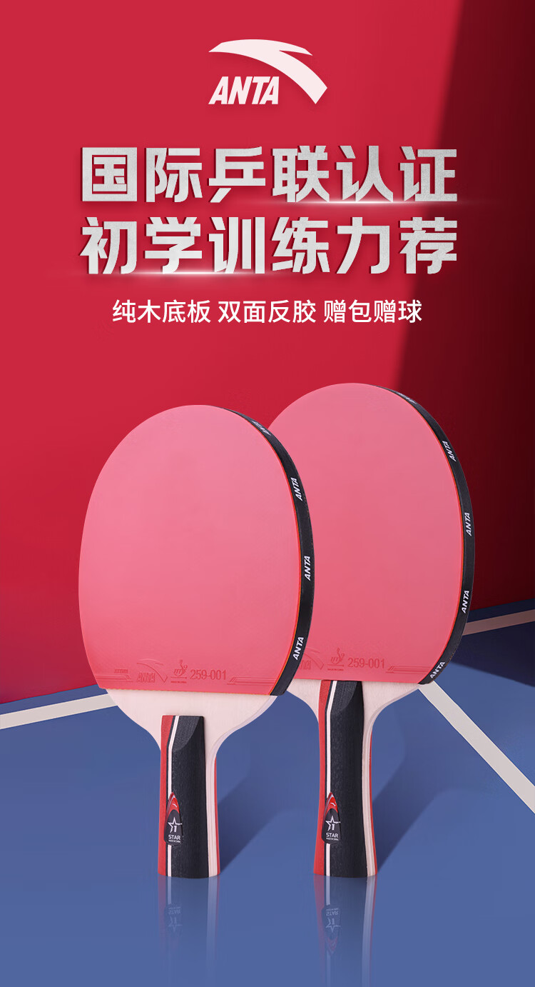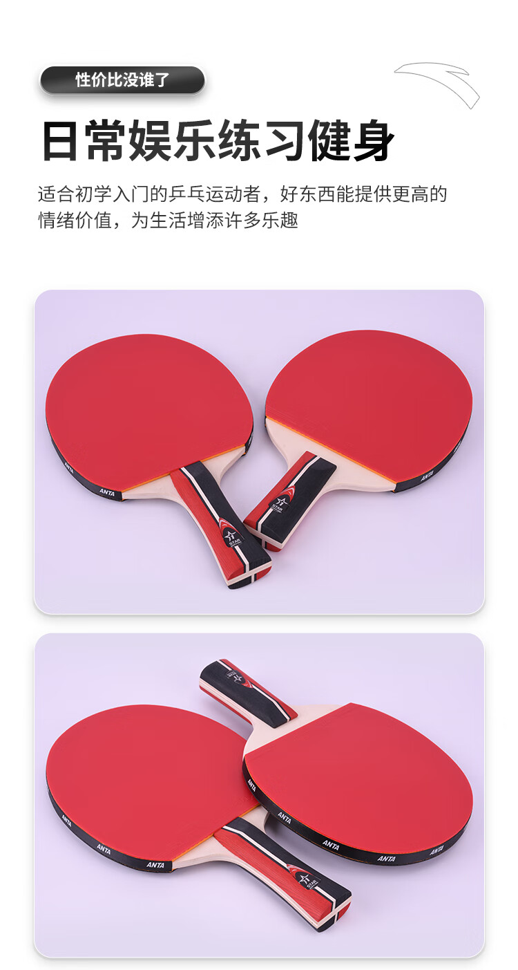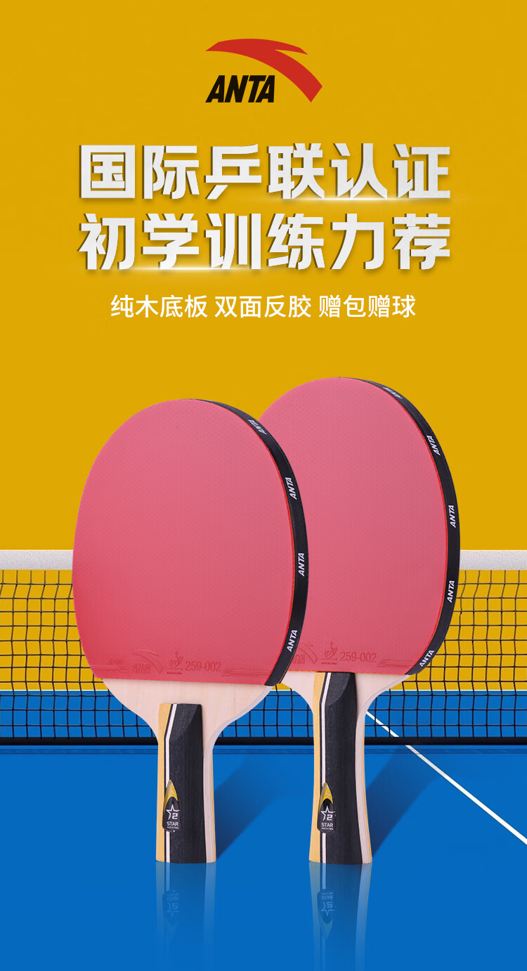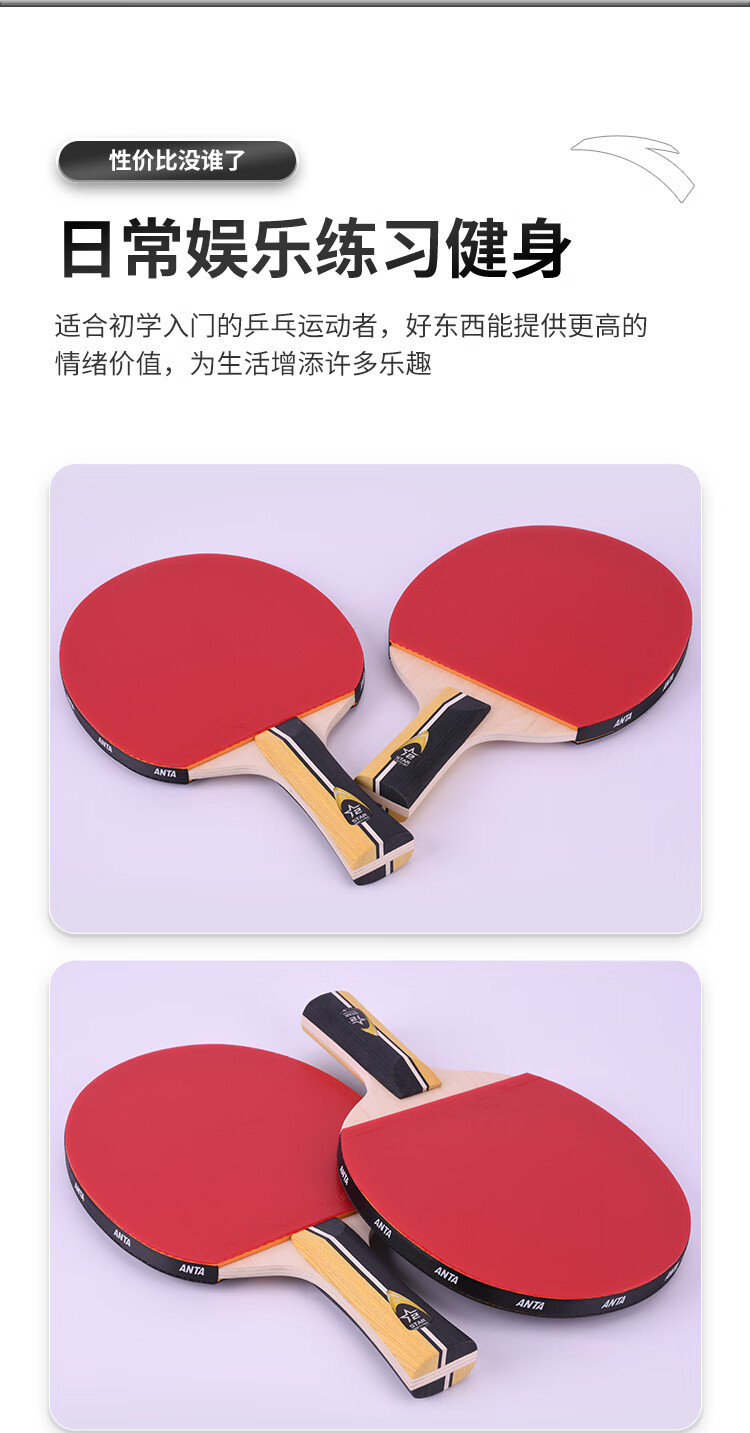ANTA安踏乒乓球拍儿童小学生新手一星二星三星横拍直拍训练娱乐单拍 2星 直拍 送6只训练乒乓球
